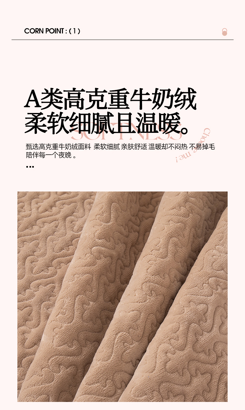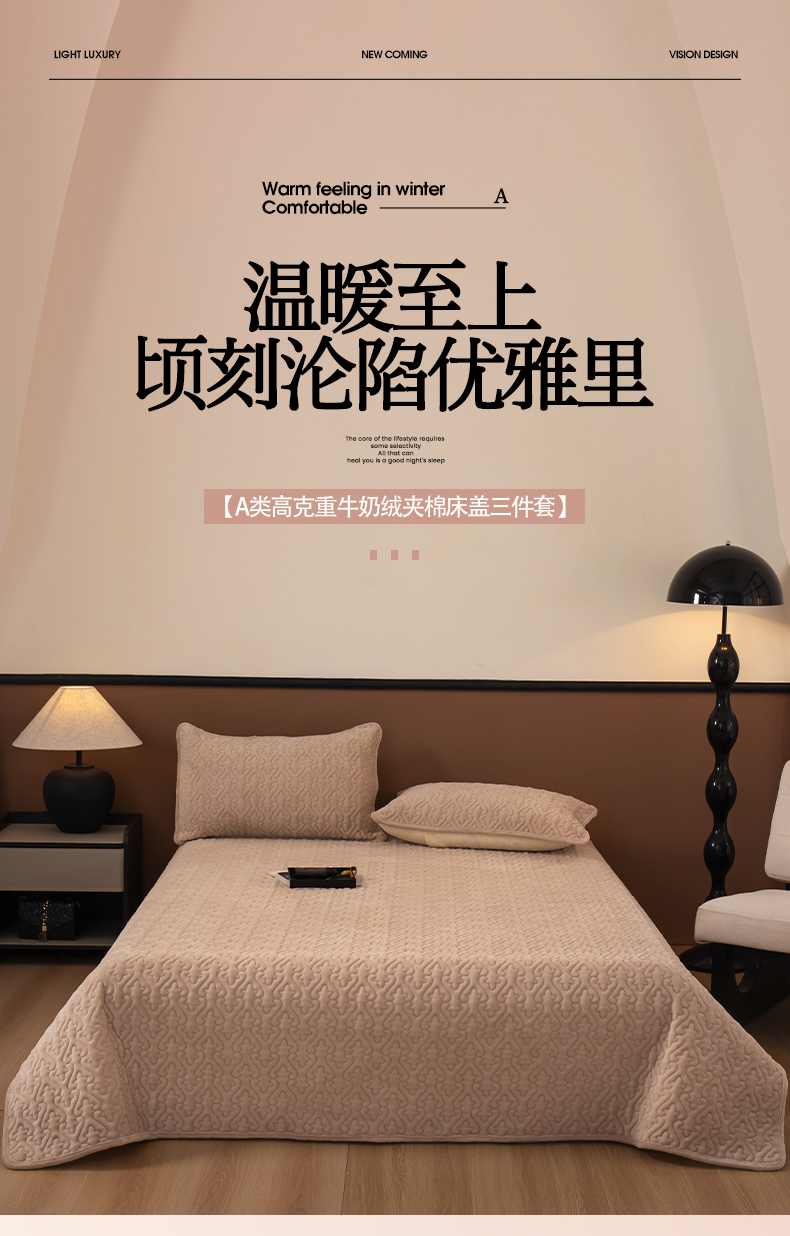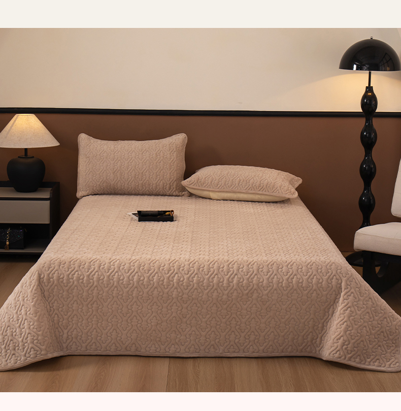 商品名称:2025新款230克牛奶绒加厚床盖 包边款-深卡其