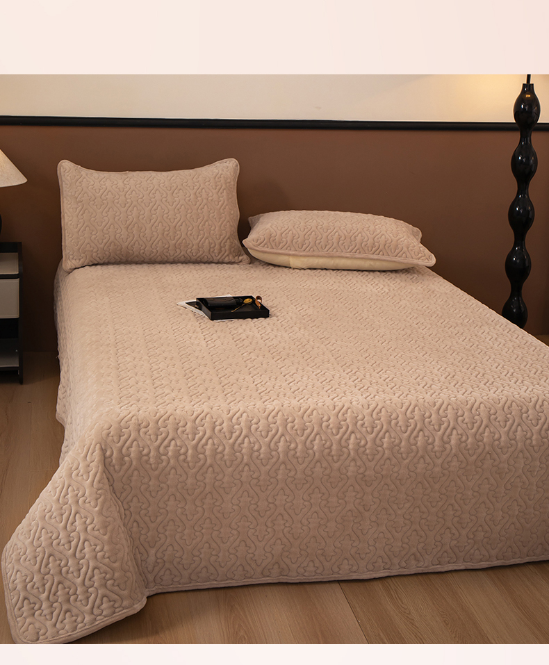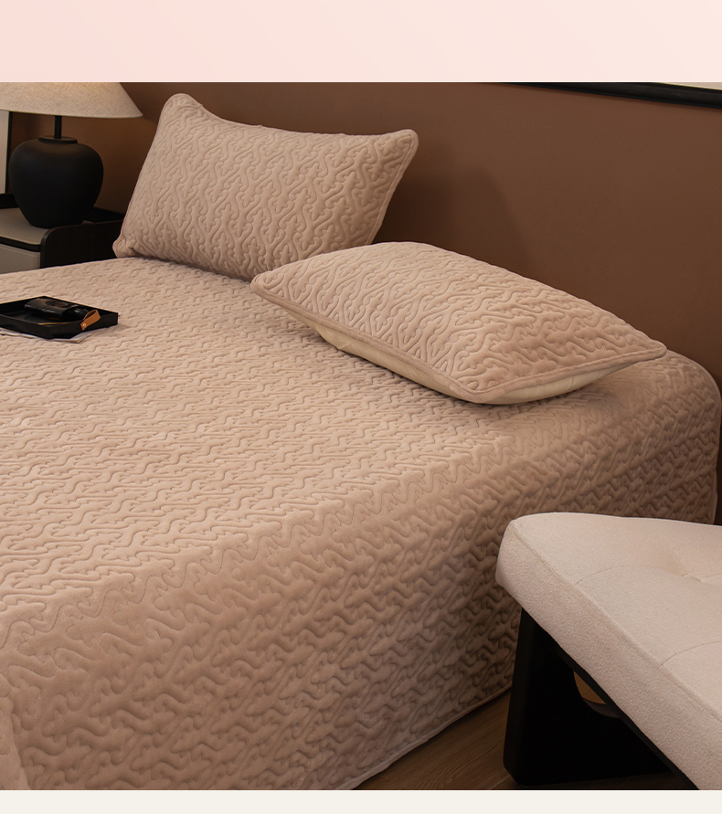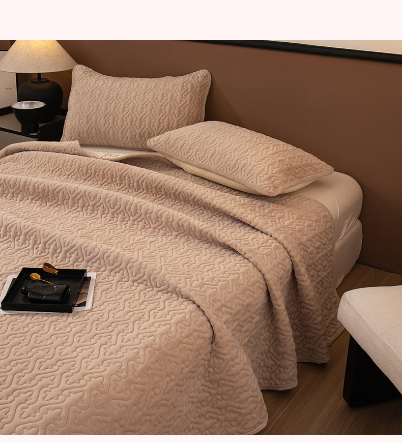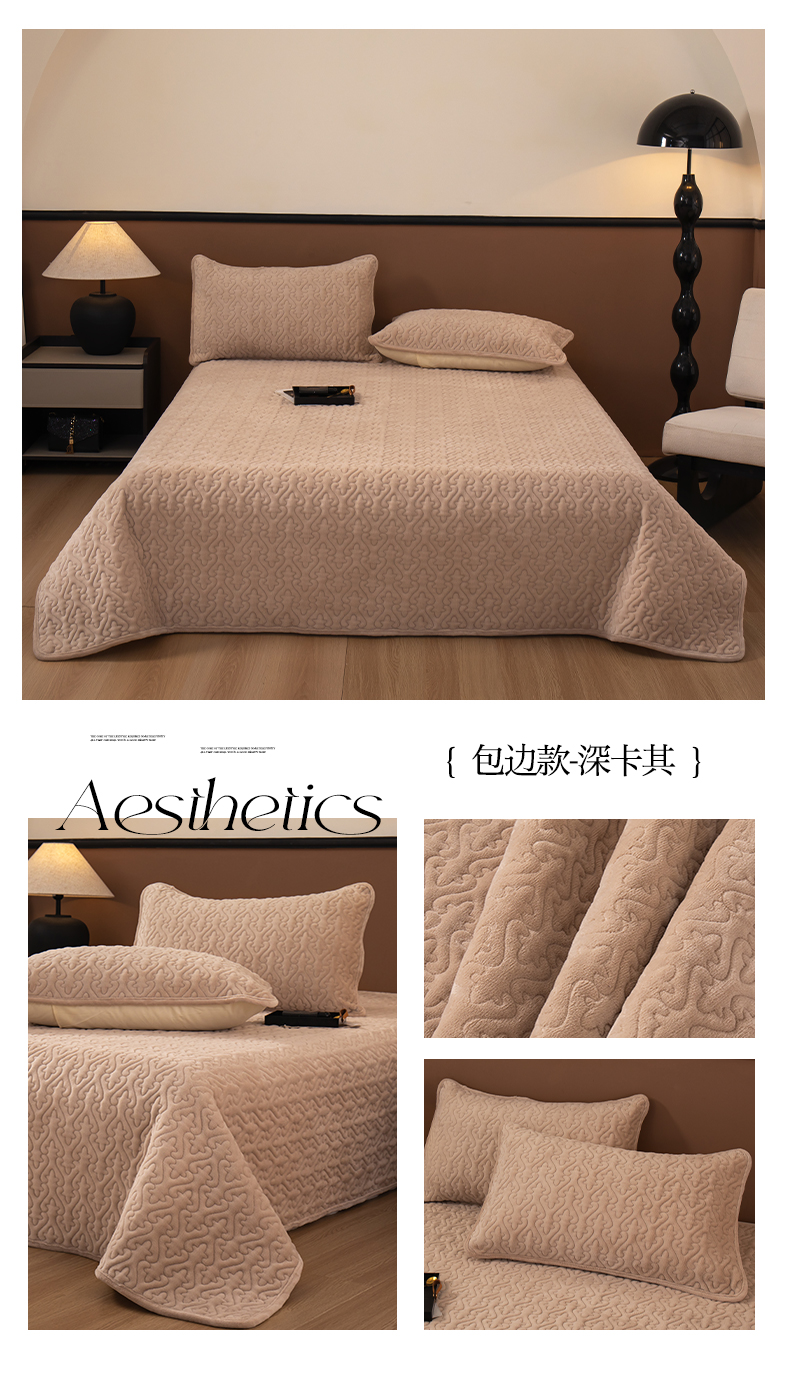 2025新款230克牛奶绒加厚床盖 包边款-深卡其