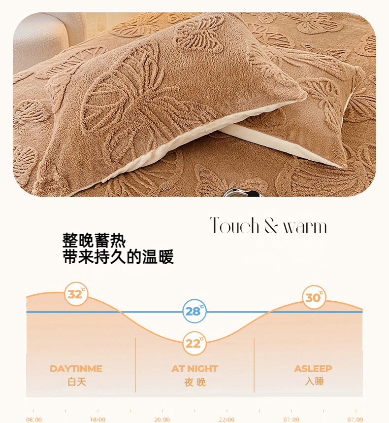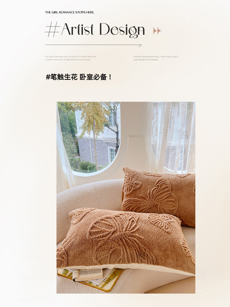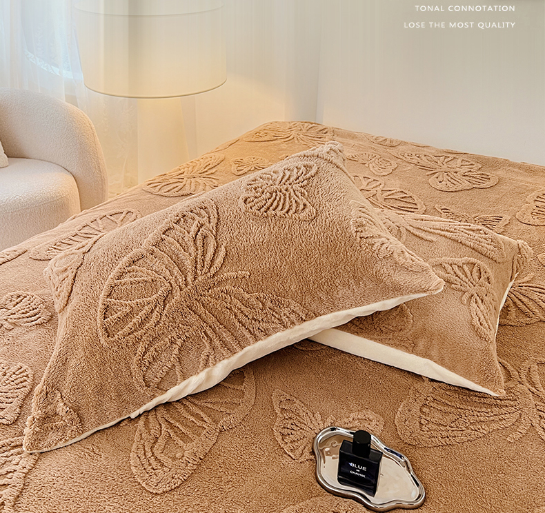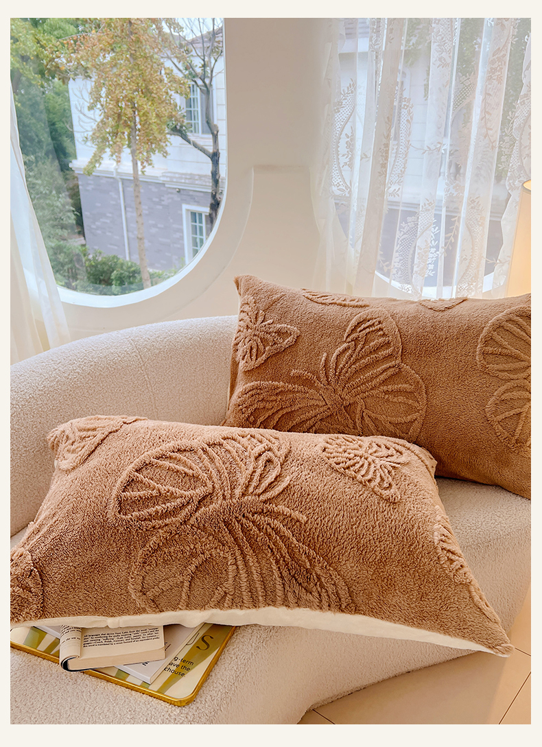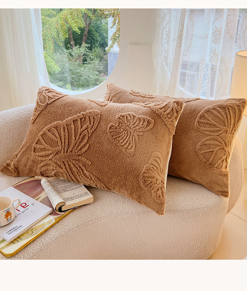 锦润家纺 2024新款双面塔芙绒枕套一对 塔芙绒-深咖