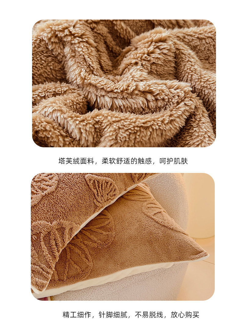 商品名称:锦润家纺 2024新款双面塔芙绒枕套一对 塔芙绒-深咖