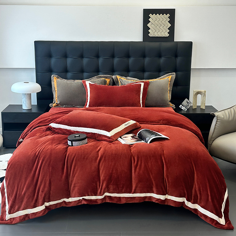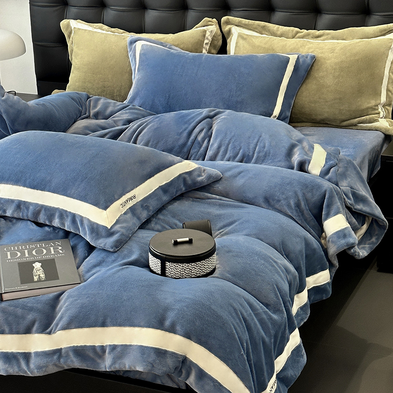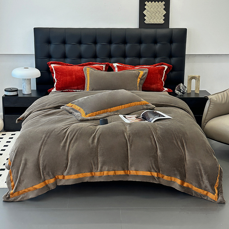 JUICY 橘滋家纺 2024新款顶奢280克全消光牛奶绒四件套--柏林邂逅 柏林邂逅-褐绿