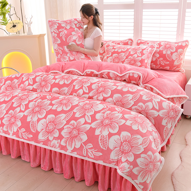 商品名称:梦莱情 2024新款190克7斤半牛奶绒四件套 花溪-粉