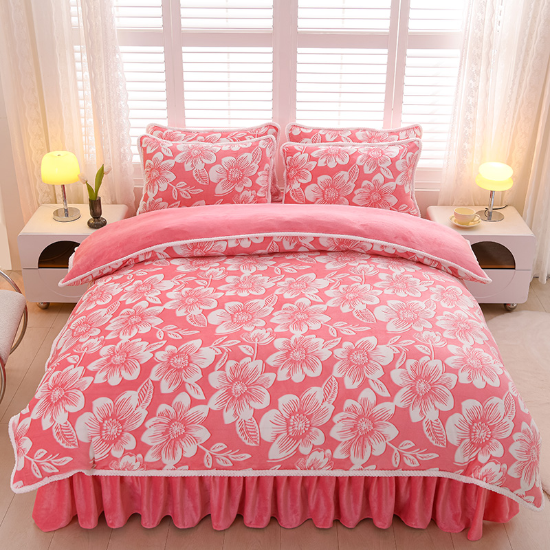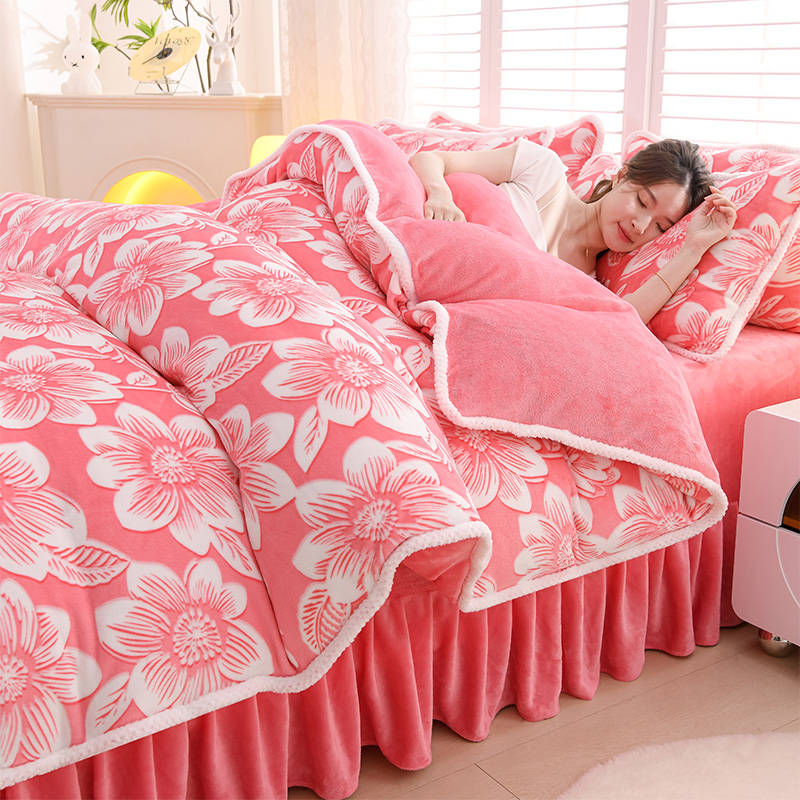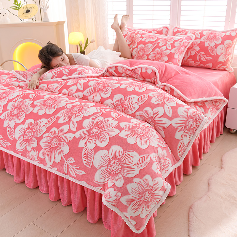 梦莱情 2024新款190克7斤半牛奶绒四件套 花溪-粉
