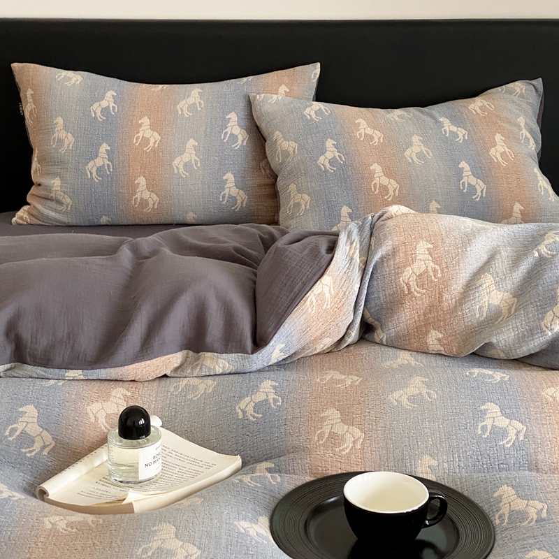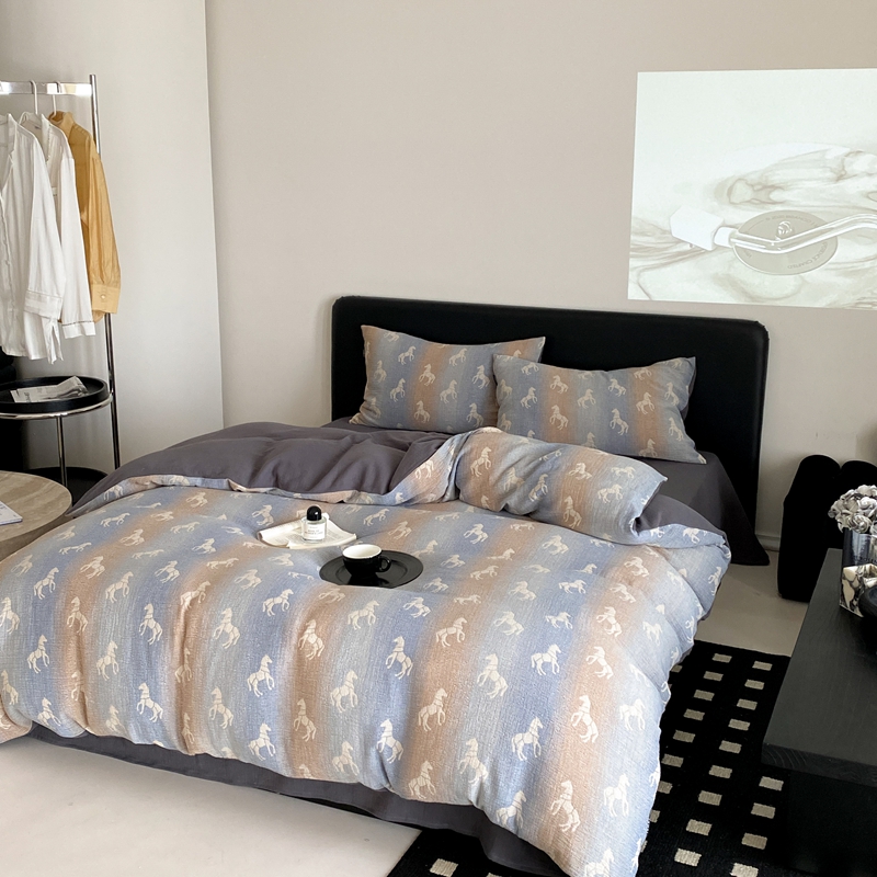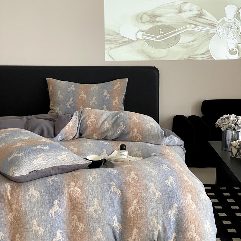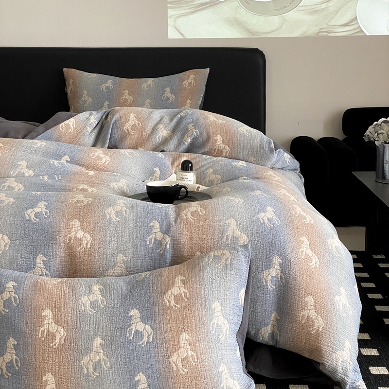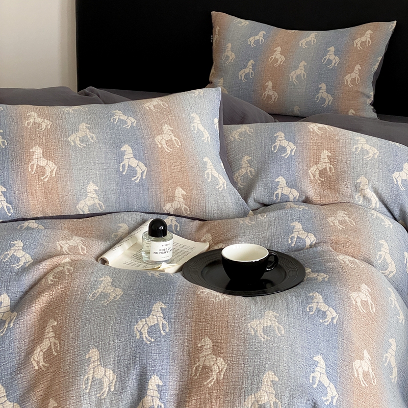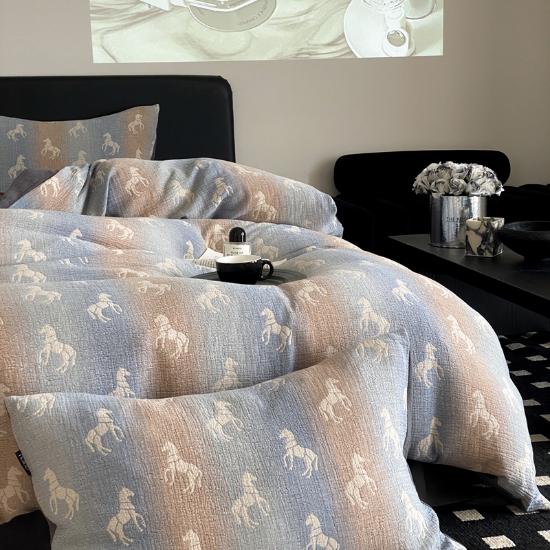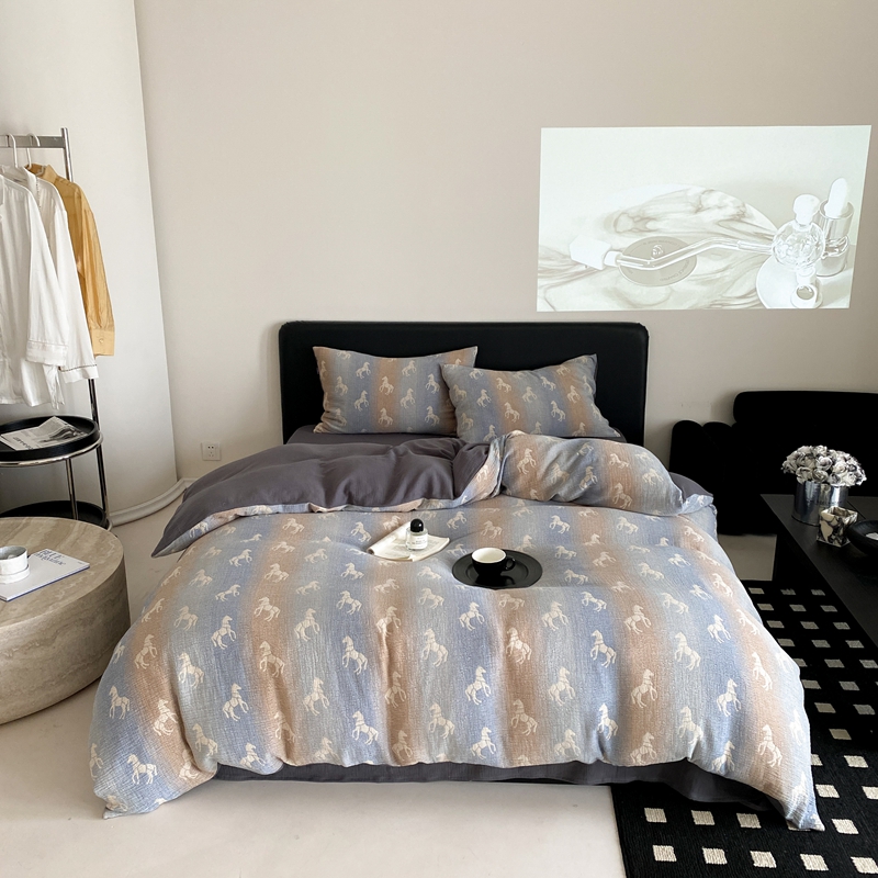 赫帛 2024新款A类全棉色织三层纱水洗棉四件套-渐变马 渐变马-蓝灰