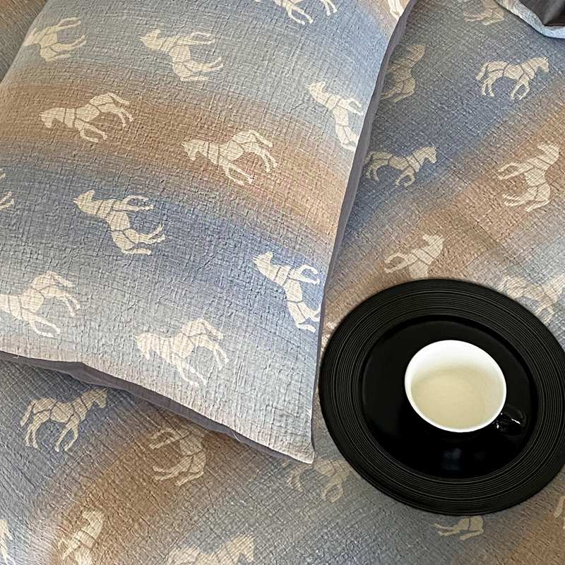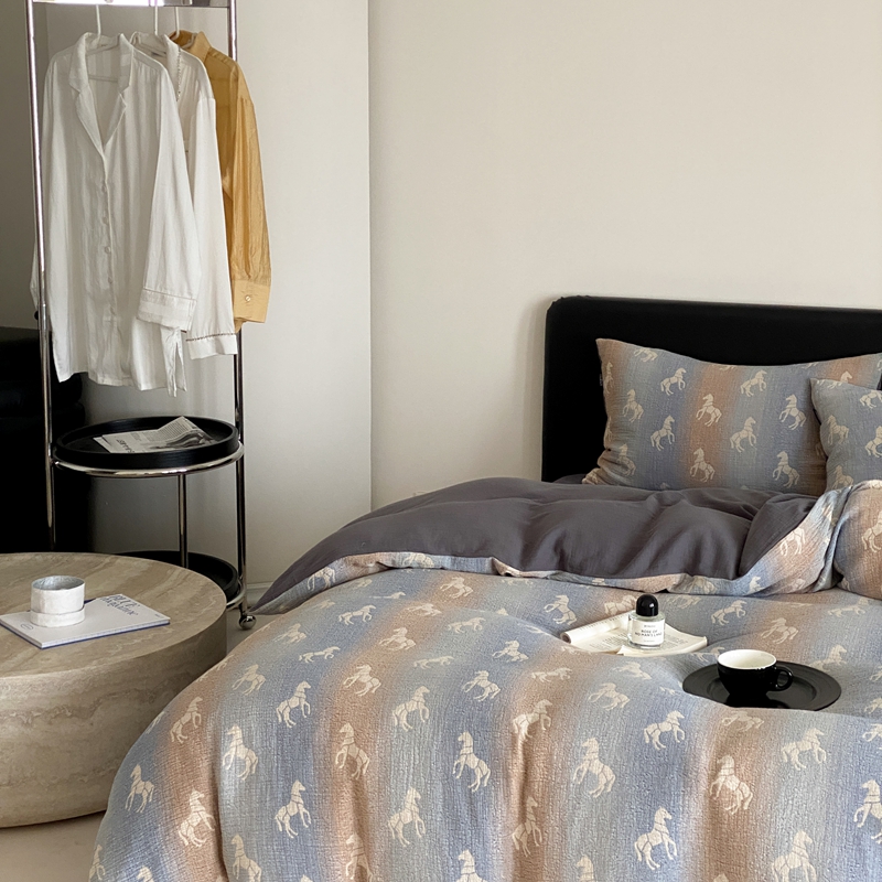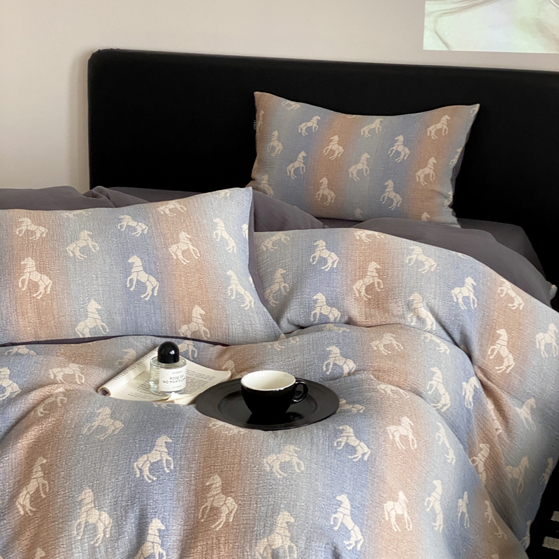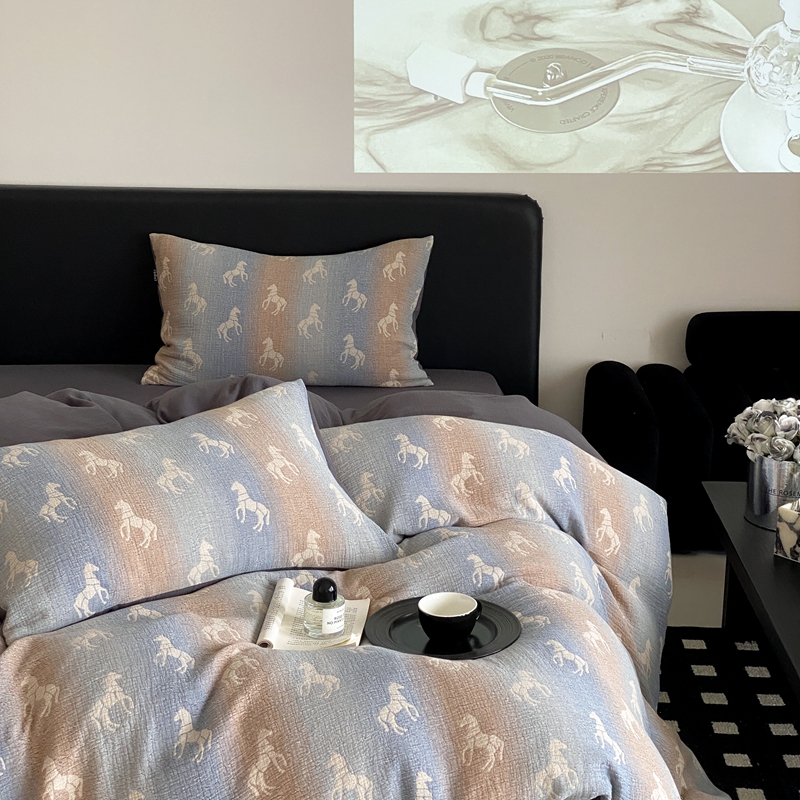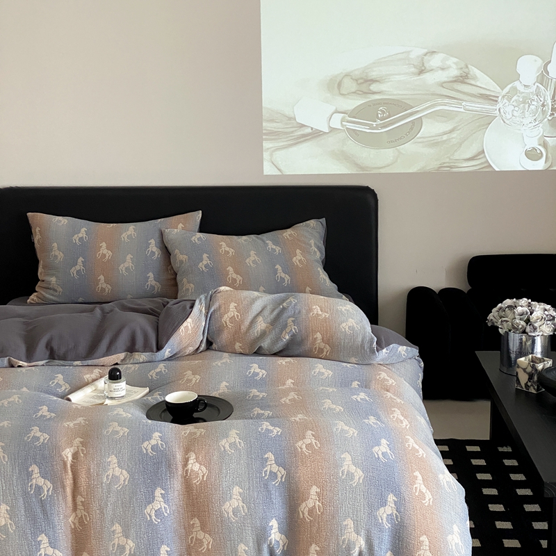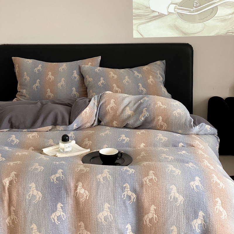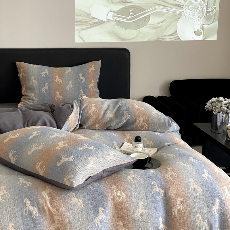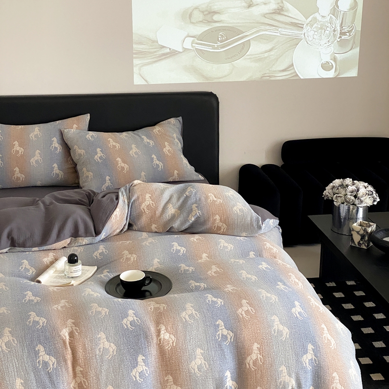 赫帛 2024新款A类全棉色织三层纱水洗棉四件套-渐变马 渐变马-蓝灰