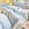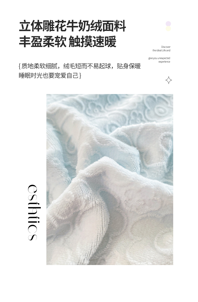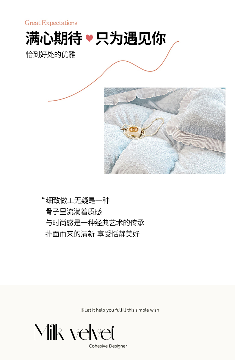 畅畅家纺 2024直播爆款8斤230克雕花牛奶绒韩版花边法莱绒烂花四件套 公主风-浅蓝