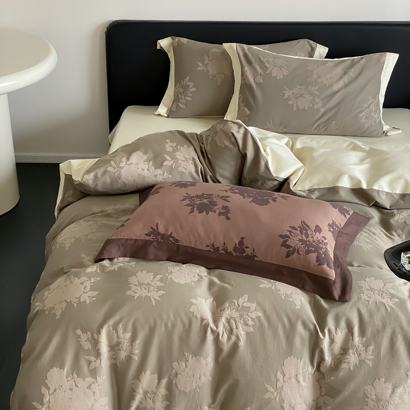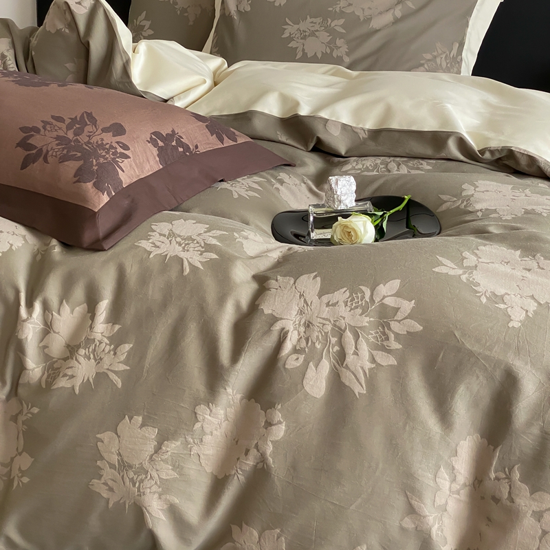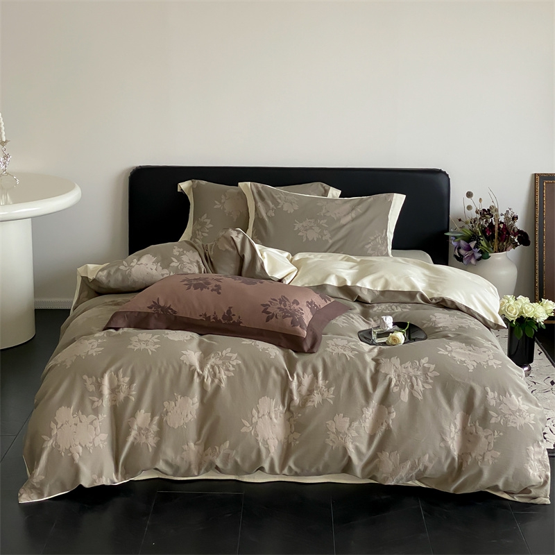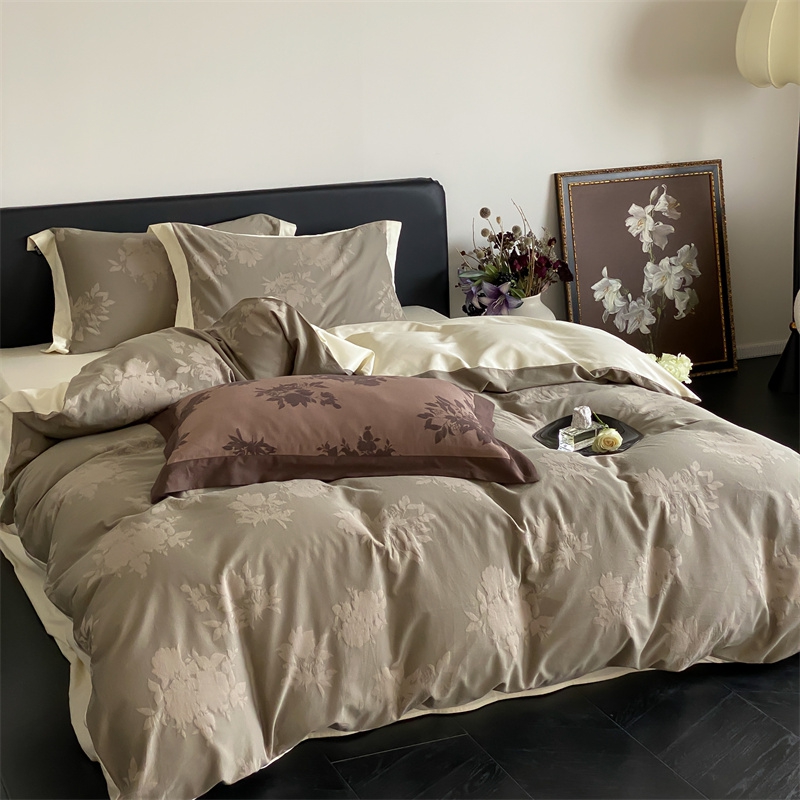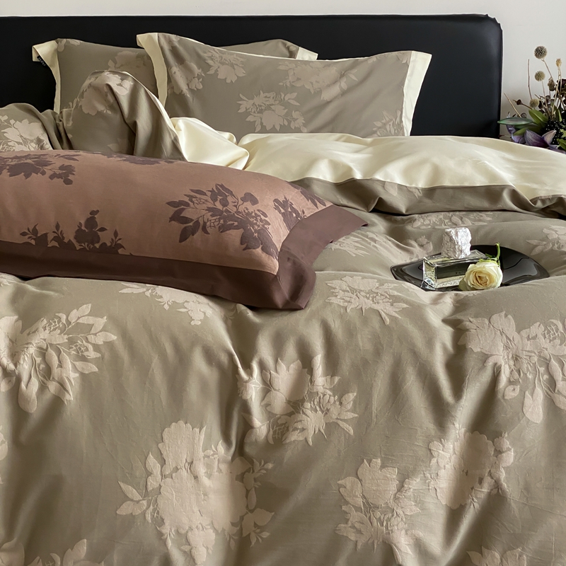 (总)赫帛 2025新款60支全棉色织提花磨毛四件套-腰果花,腰果花-灰咖色,腰果花-绿米色,腰果花-奶咖色