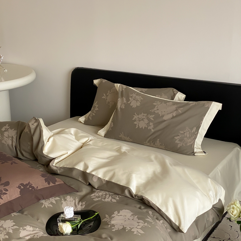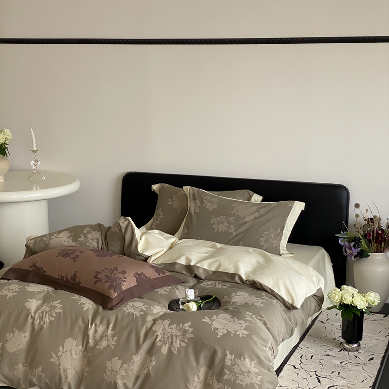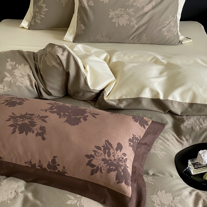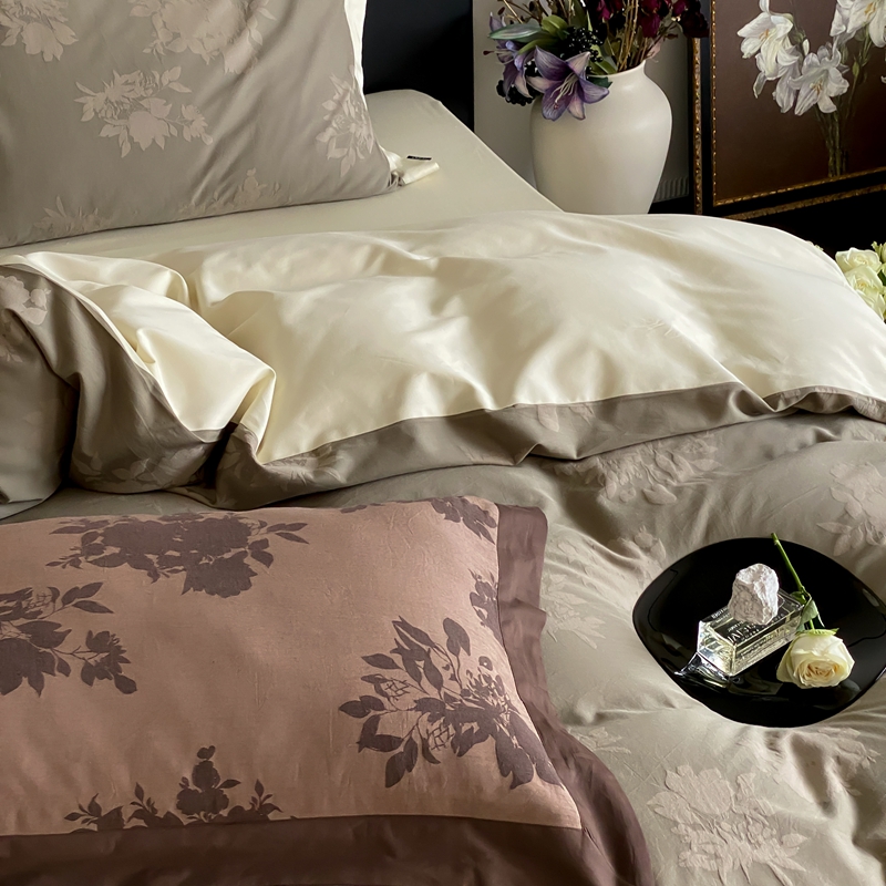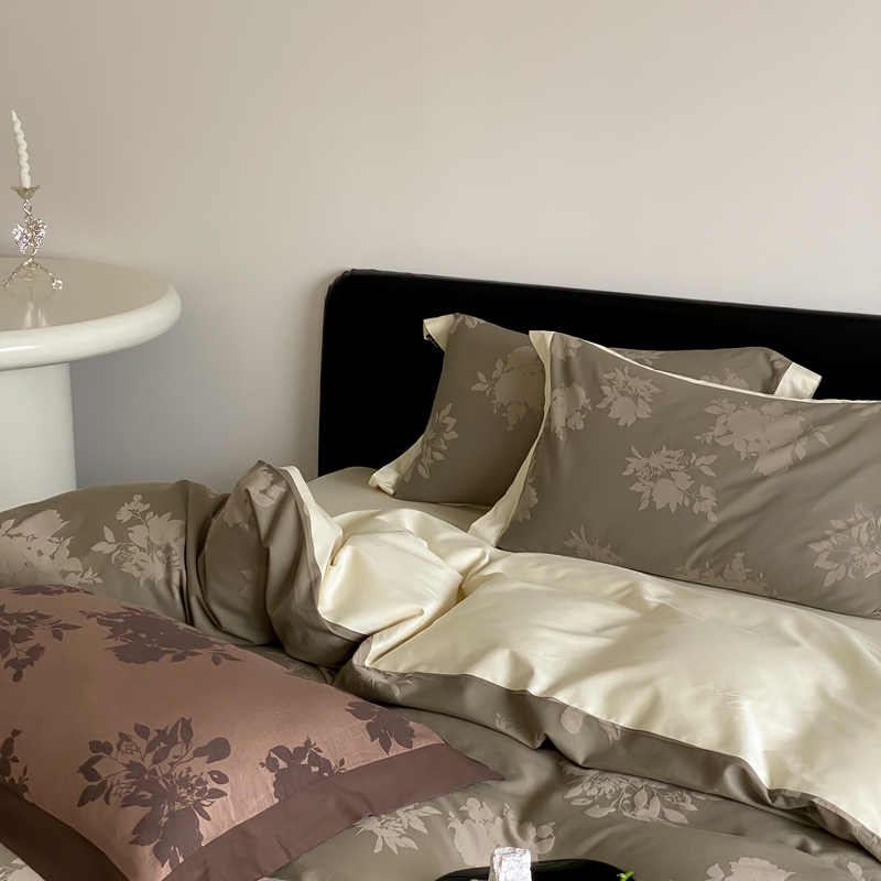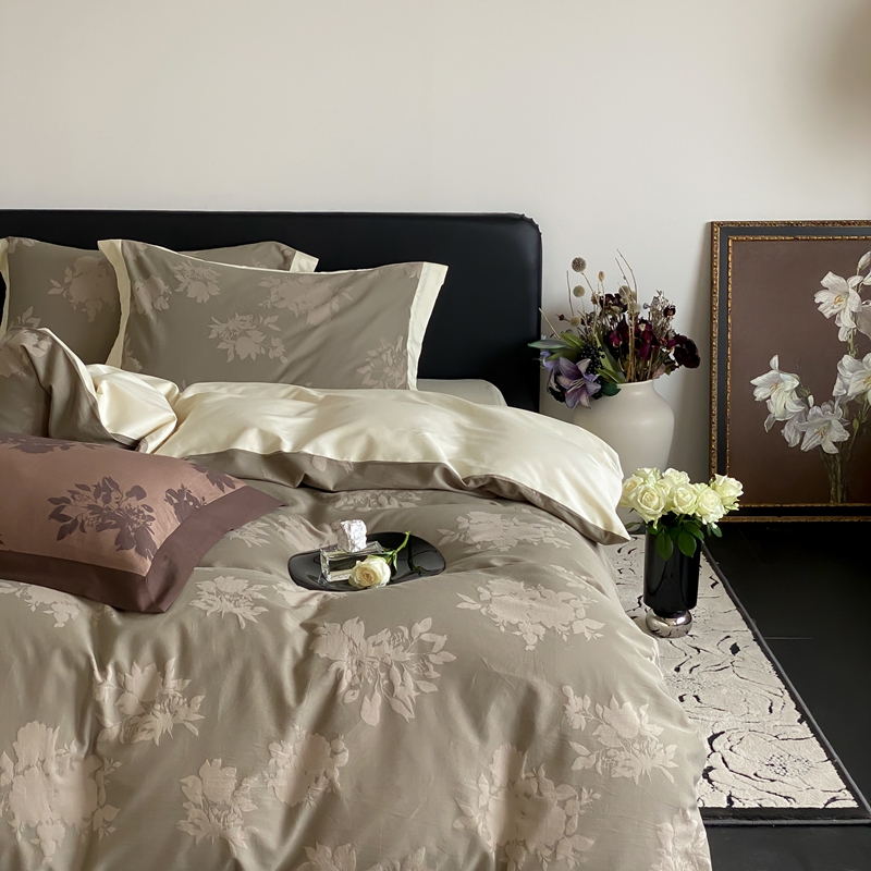 (总)赫帛 2025新款60支全棉色织提花磨毛四件套-腰果花,腰果花-灰咖色,腰果花-绿米色,腰果花-奶咖色