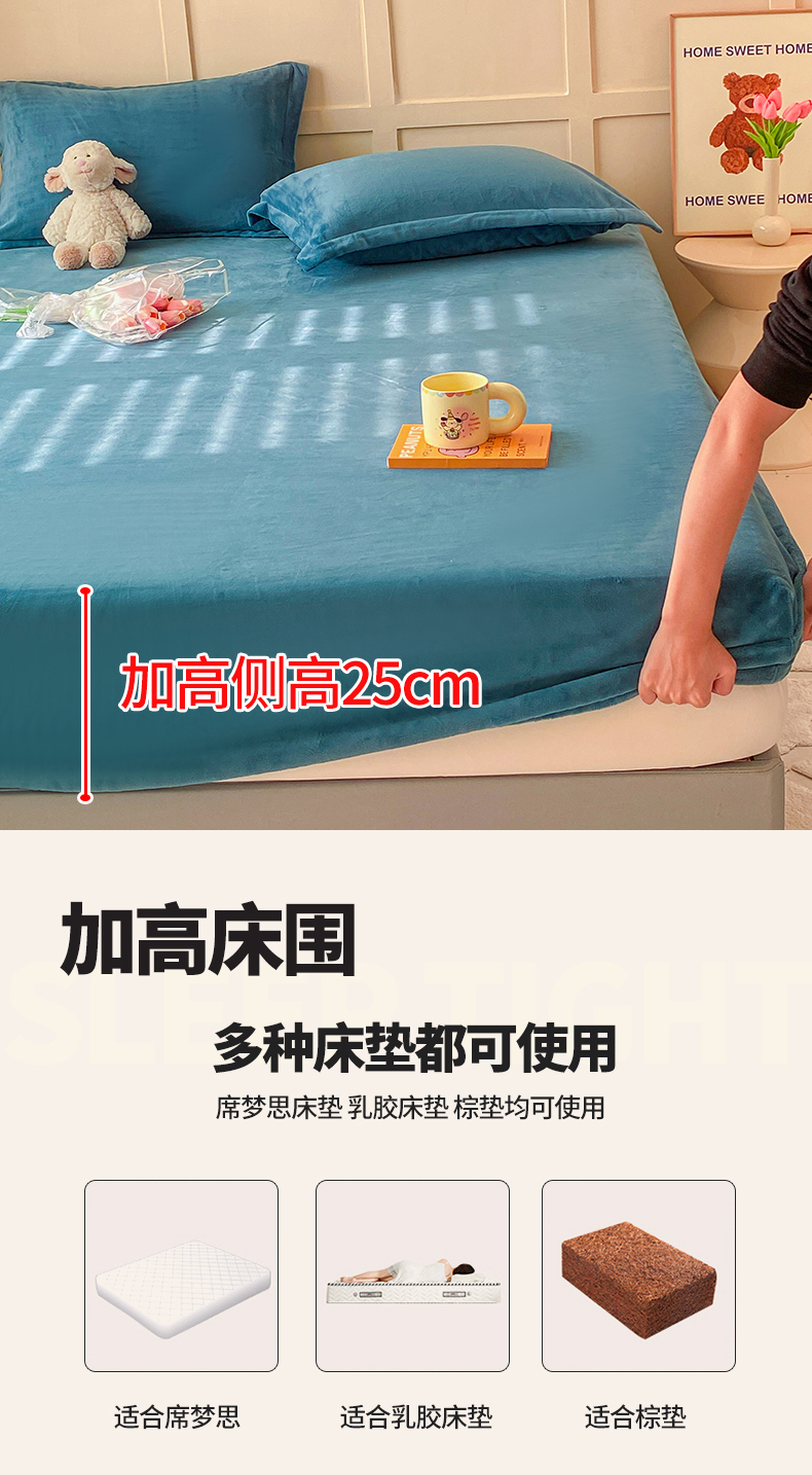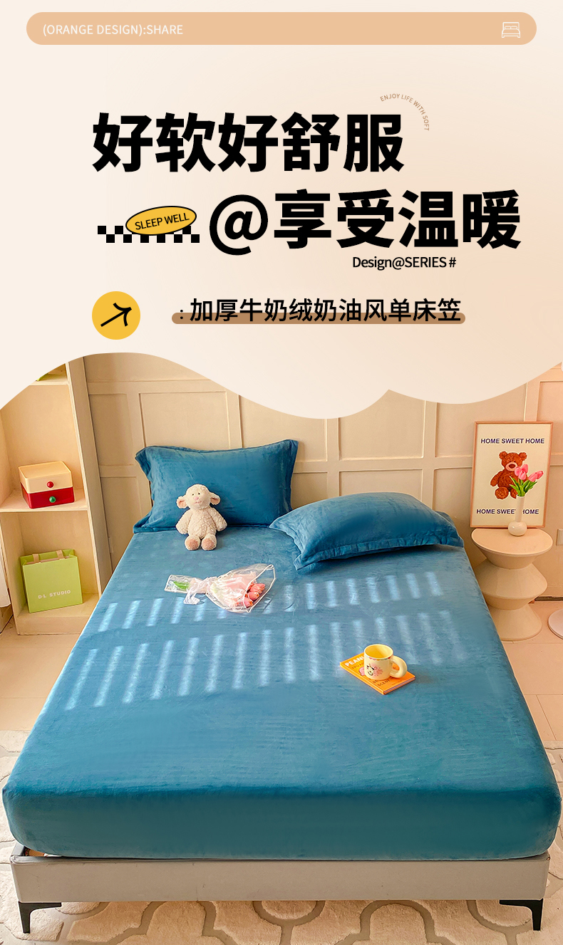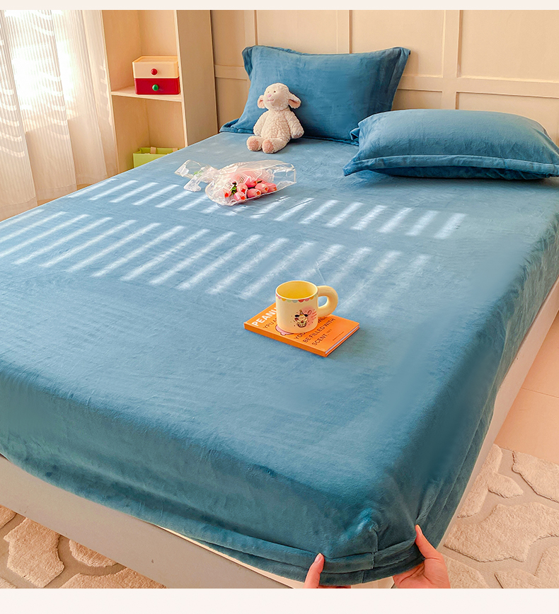 恬澳家纺 2025 200g牛奶绒床笠外贸跨境电商亚马逊速卖通床笠三件套欧美尺寸多多跨境平台TEMU SHEIN 暖阳-宝石蓝