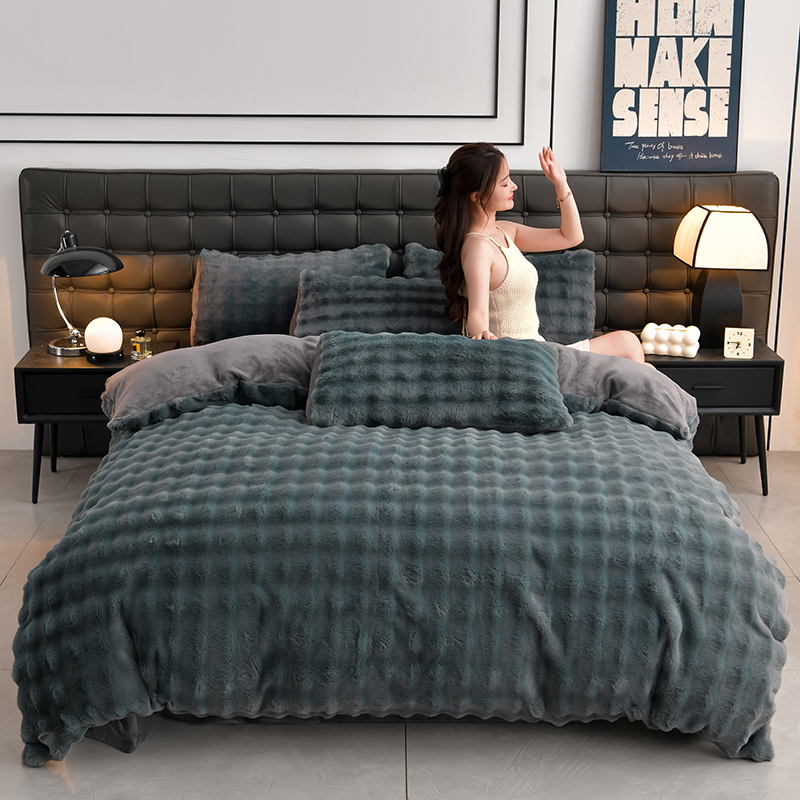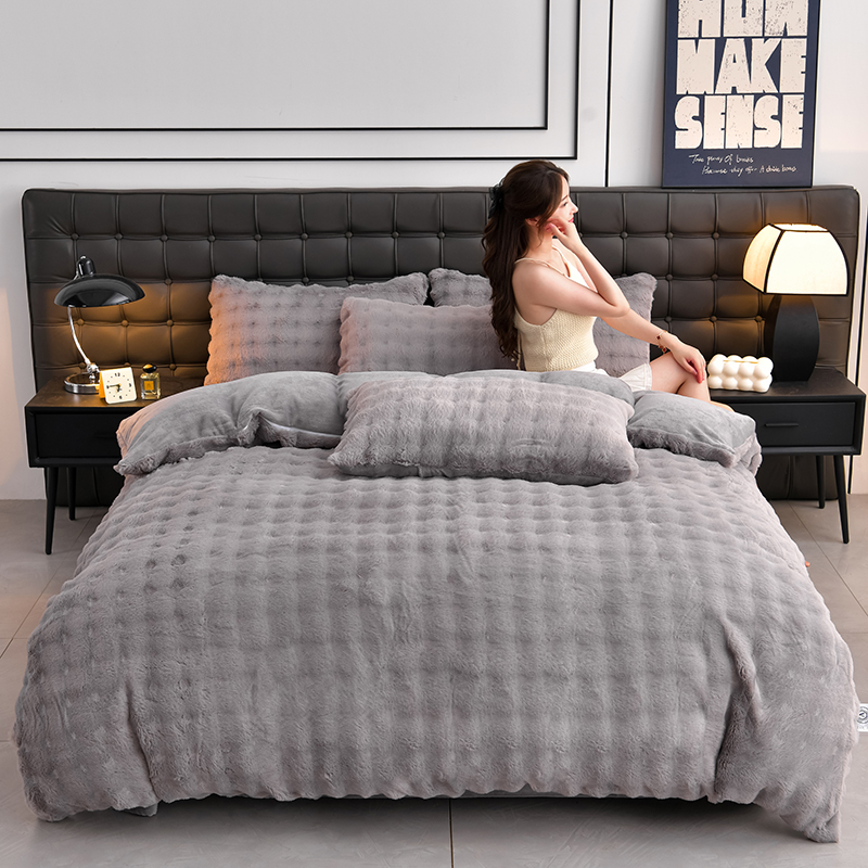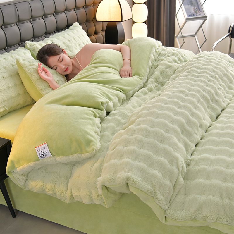 (总)爱上家居 2024新款AB版兔兔绒牛奶绒四件套,粉色,灰色,绿色,驼色,紫色