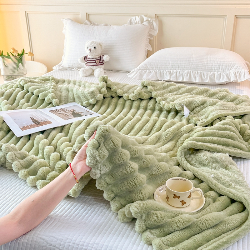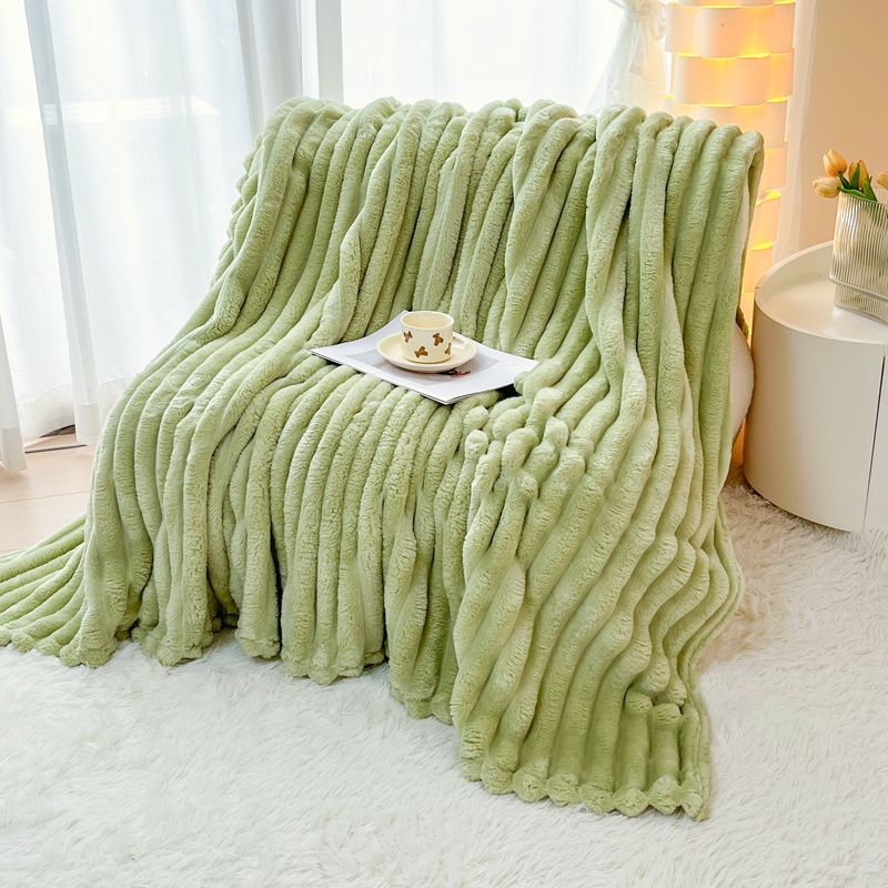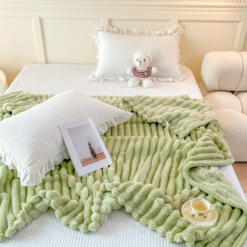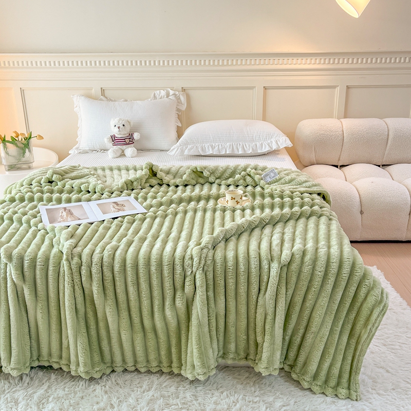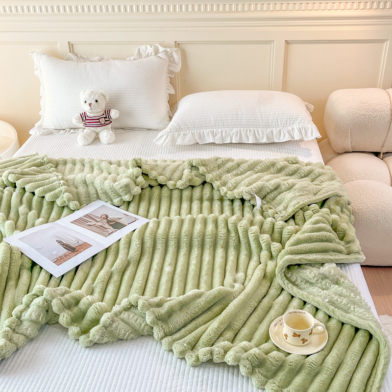 商品名称:璐维斯家纺 2025款直播热款400g大抽条仿兔毛绒毛毯加厚保暖毯子可供跨境外 草绿