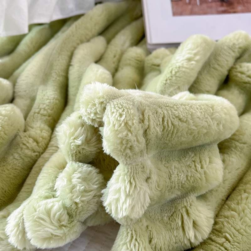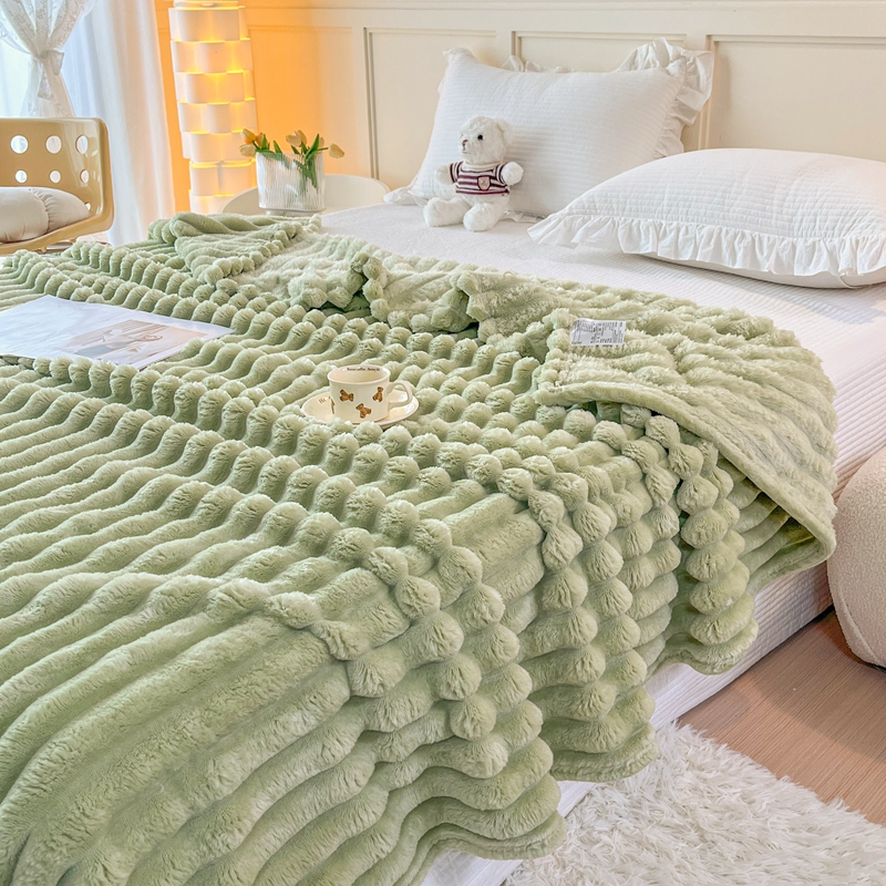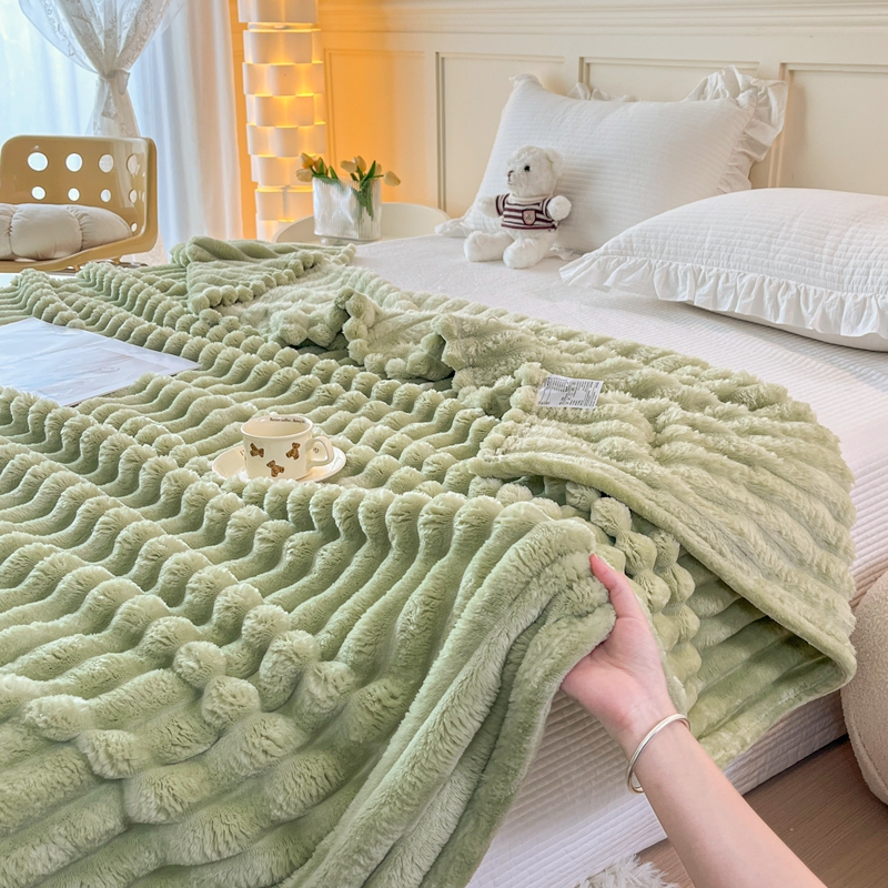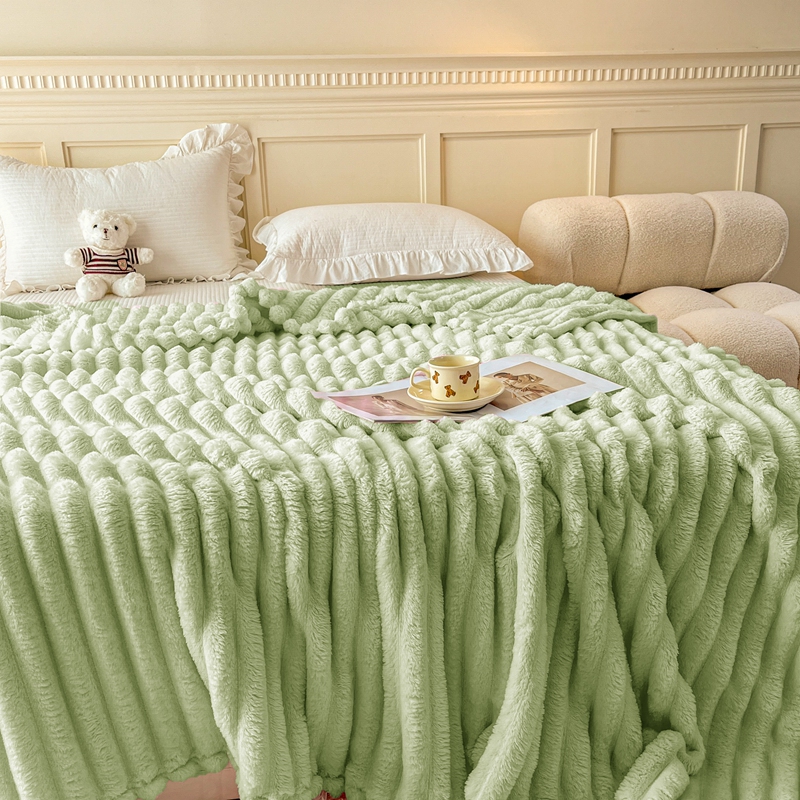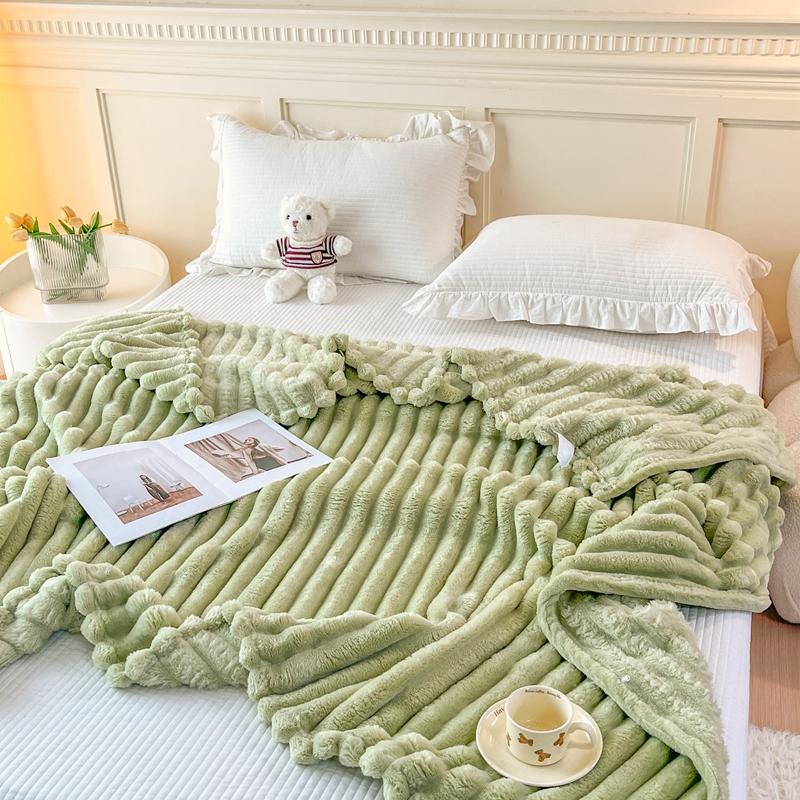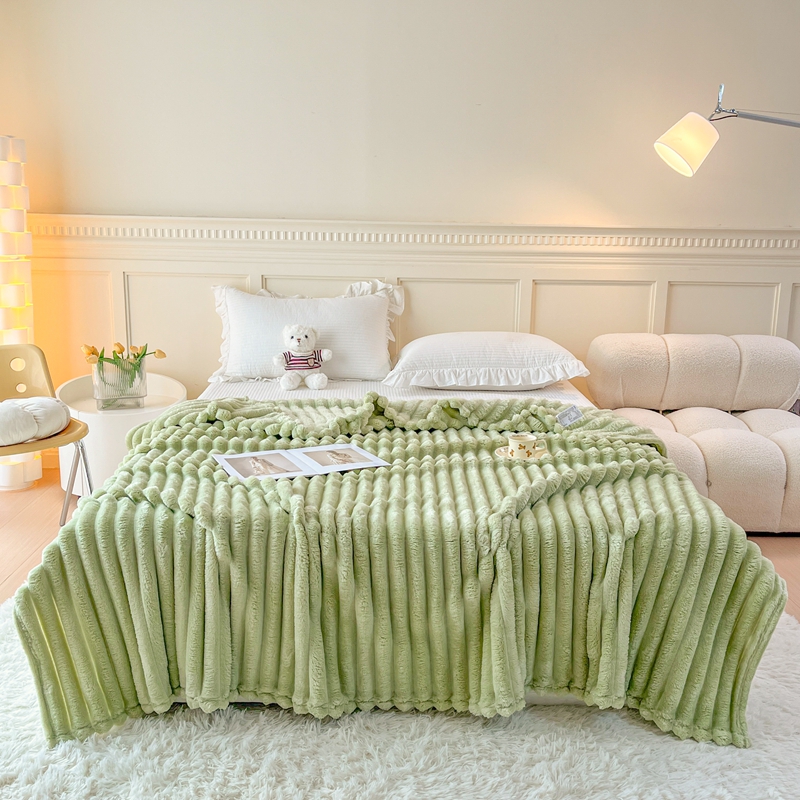 商品名称:璐维斯家纺 2025款直播热款400g大抽条仿兔毛绒毛毯加厚保暖毯子可供跨境外 草绿