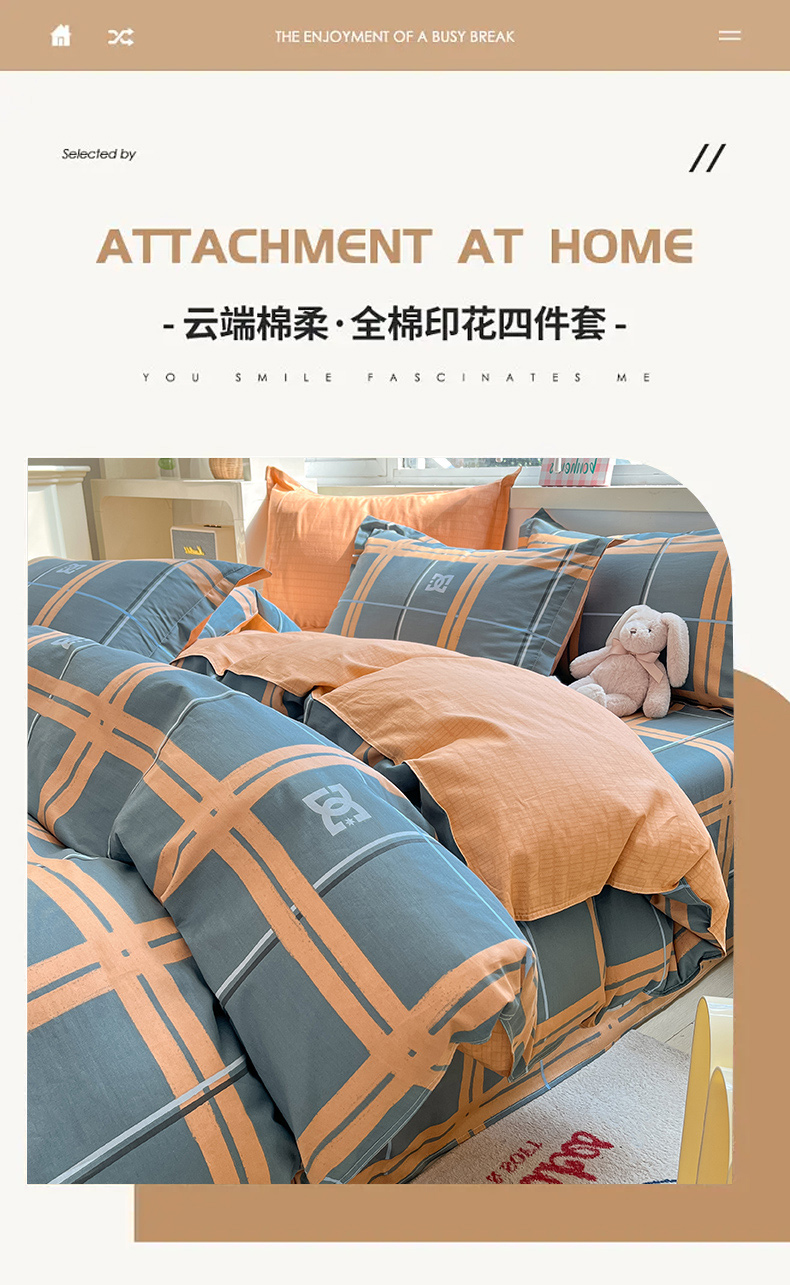 (总)棉立方家纺 2023新款全棉喷气印花四件套 风格2-床笠款四件套