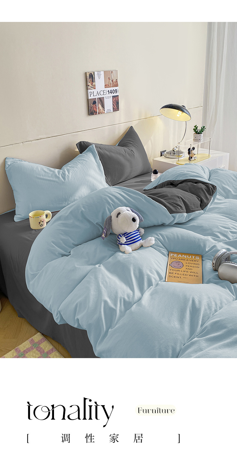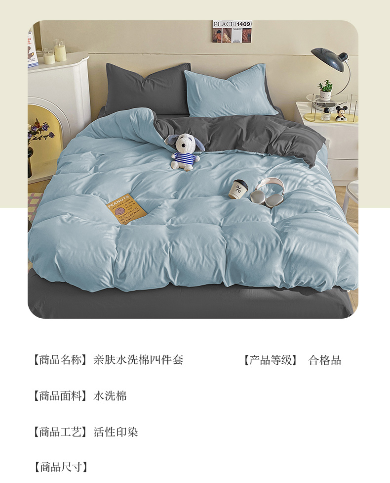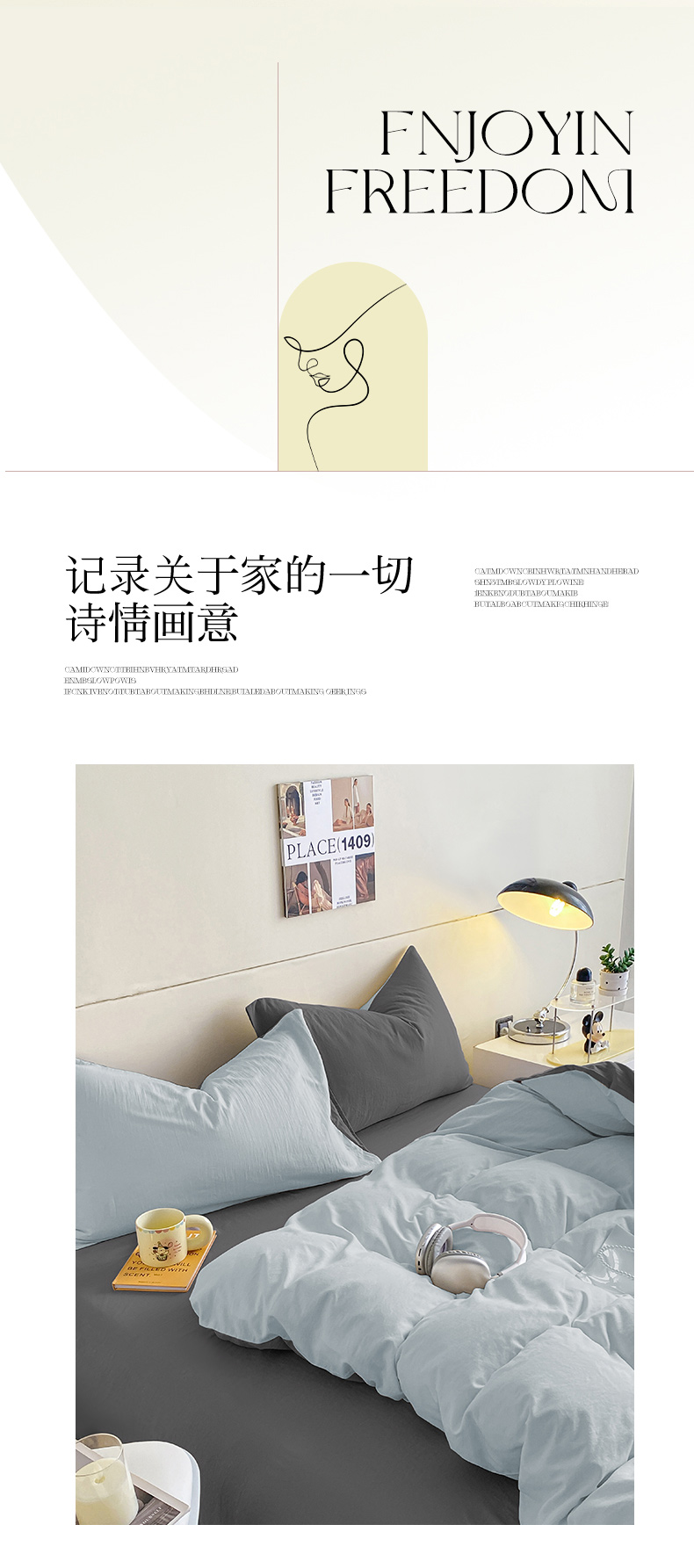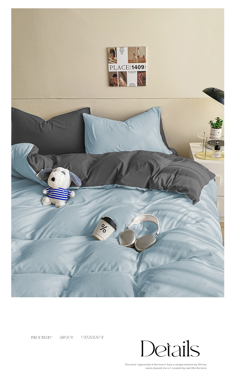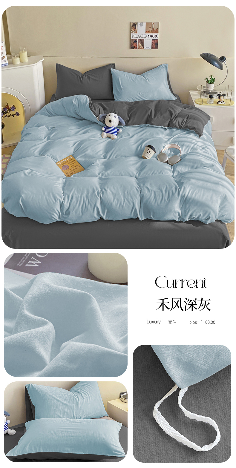 当前位置: 91家纺网 > 商品网购 > 床品套件 > 四件套 > 水洗棉四件套 > 沃朴家居 2024新款亲肤双拼水洗棉四件套学生三件套 禾风深灰