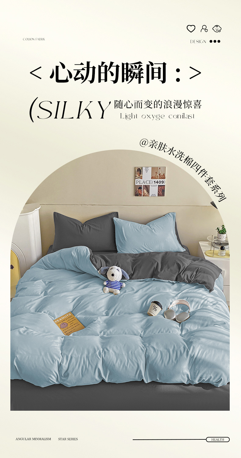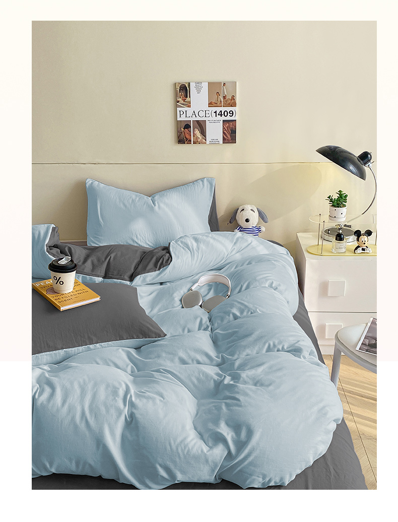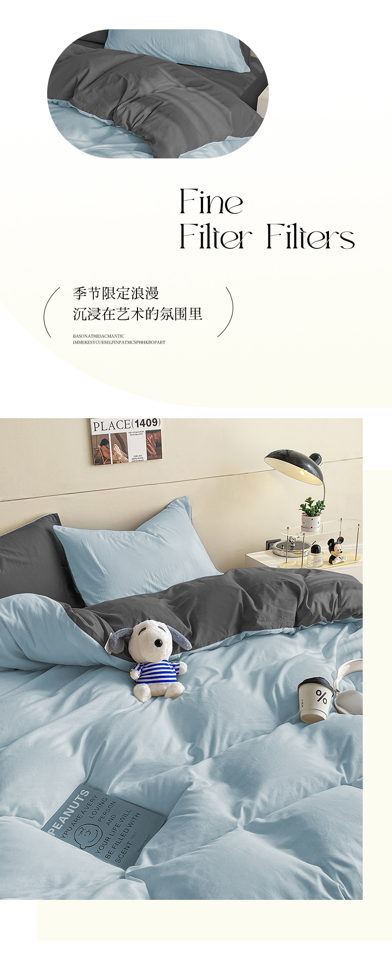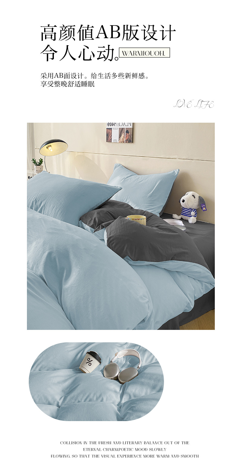 当前位置: 91家纺网 > 商品网购 > 床品套件 > 四件套 > 水洗棉四件套 > 沃朴家居 2024新款亲肤双拼水洗棉四件套学生三件套 禾风深灰