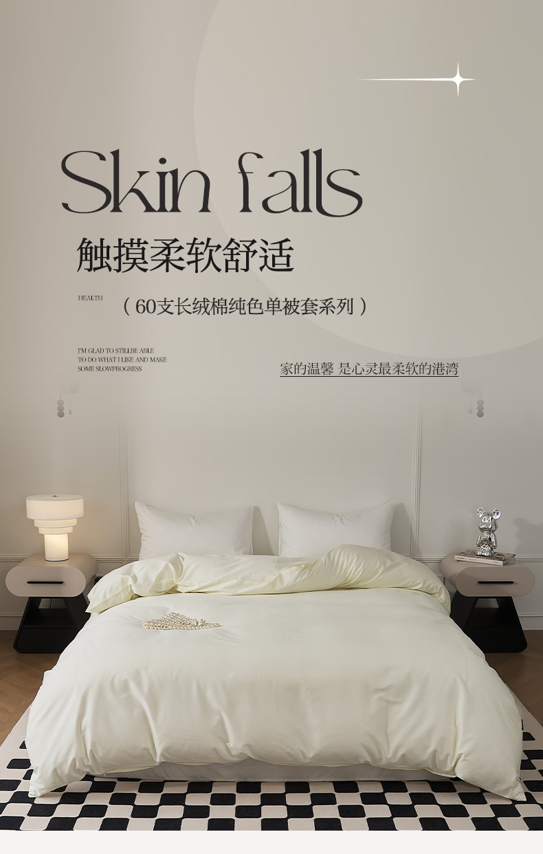商品名称:EH家居 2024新款60支长绒棉纯色单被套 乳白色