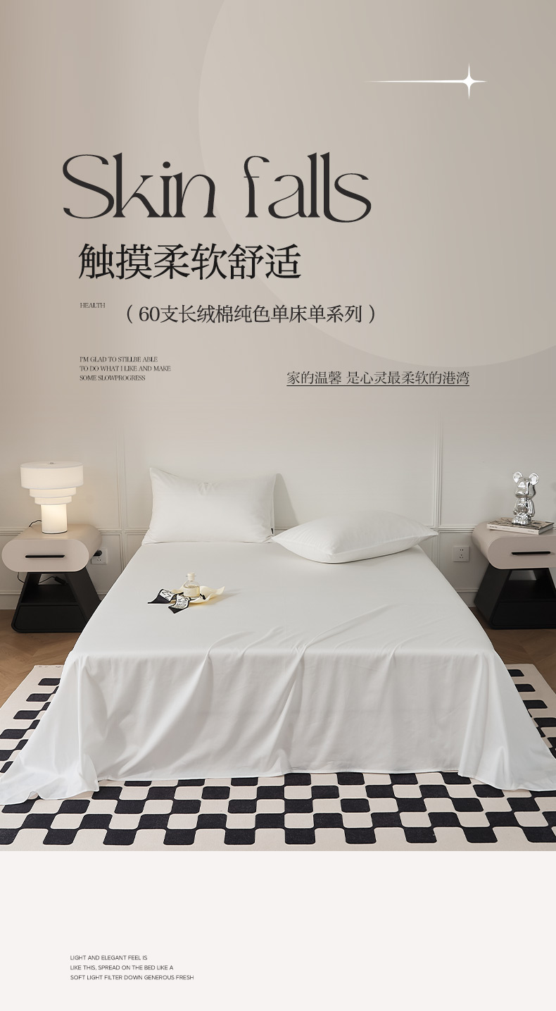EH家居 2024新款60支长绒棉纯色单床单 纯白色