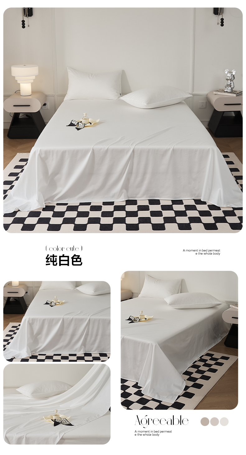 • 91家纺网 家纺一手货源 找家纺 EH家居 2024新款60支长绒棉纯色单床单 纯白色