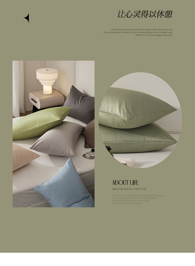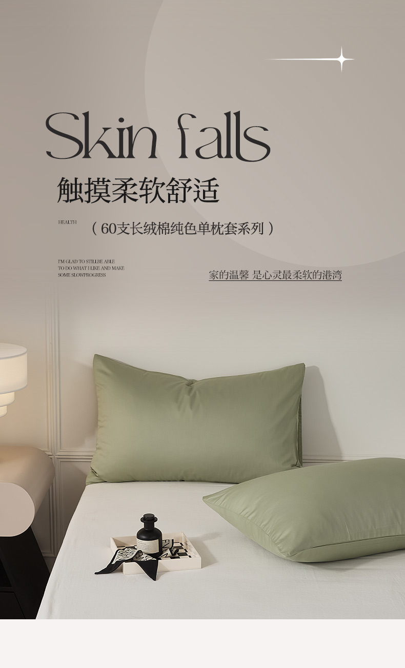 商品名称:EH家居 2024新款60支长绒棉纯色单枕套 暮光绿