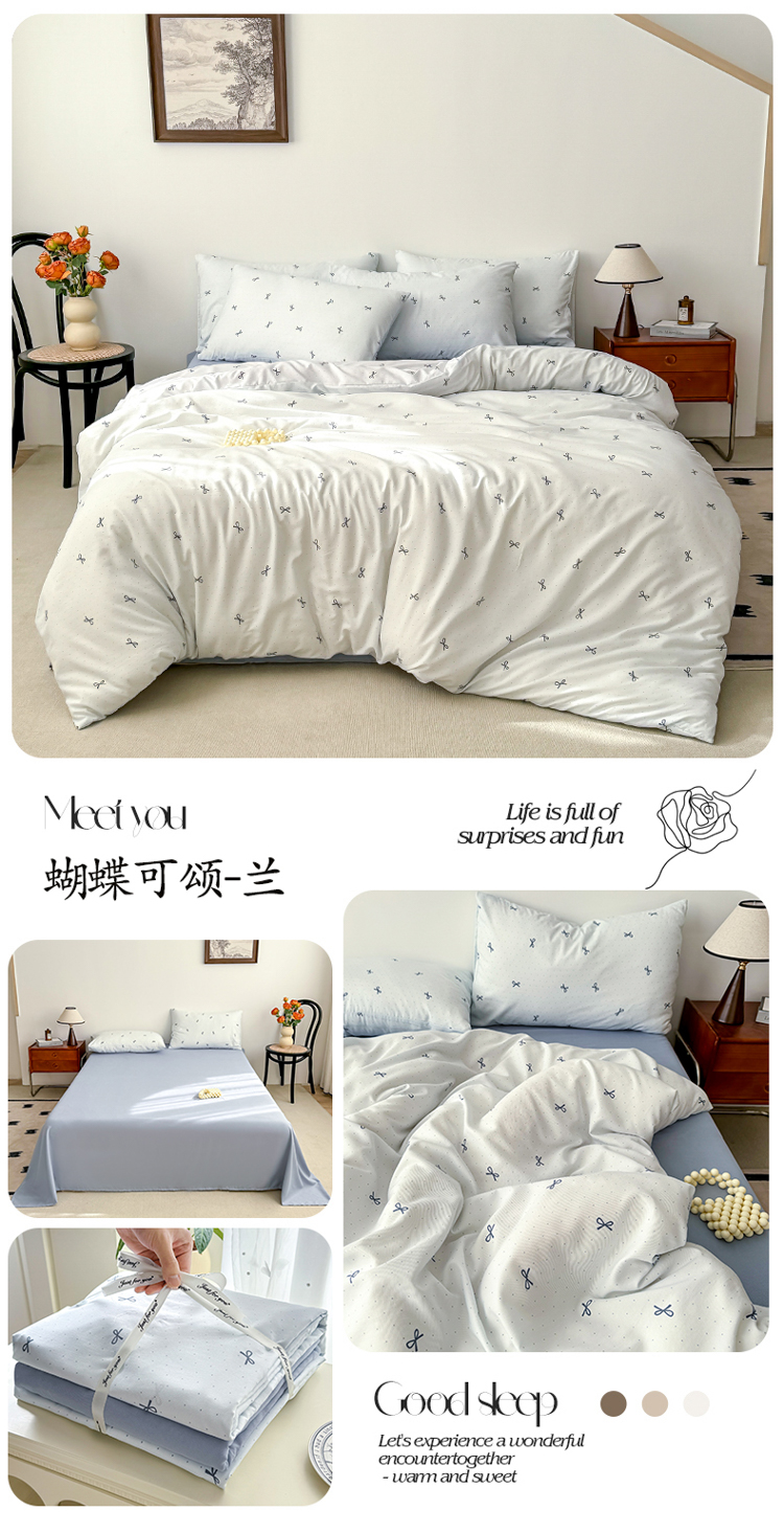 漫仙阁家纺 2025年爆款新品有氧双层纱四件套-碎花 蝴蝶可颂-兰