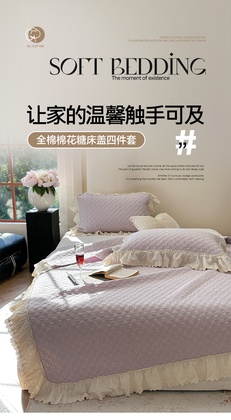 当前位置: 91家纺网 > 商品网购 > 床品套件 > 四件套 > 全棉普通四件套 > 诗黛尔 2025春夏新款全棉棉花糖床盖四件套 棉花糖 紫