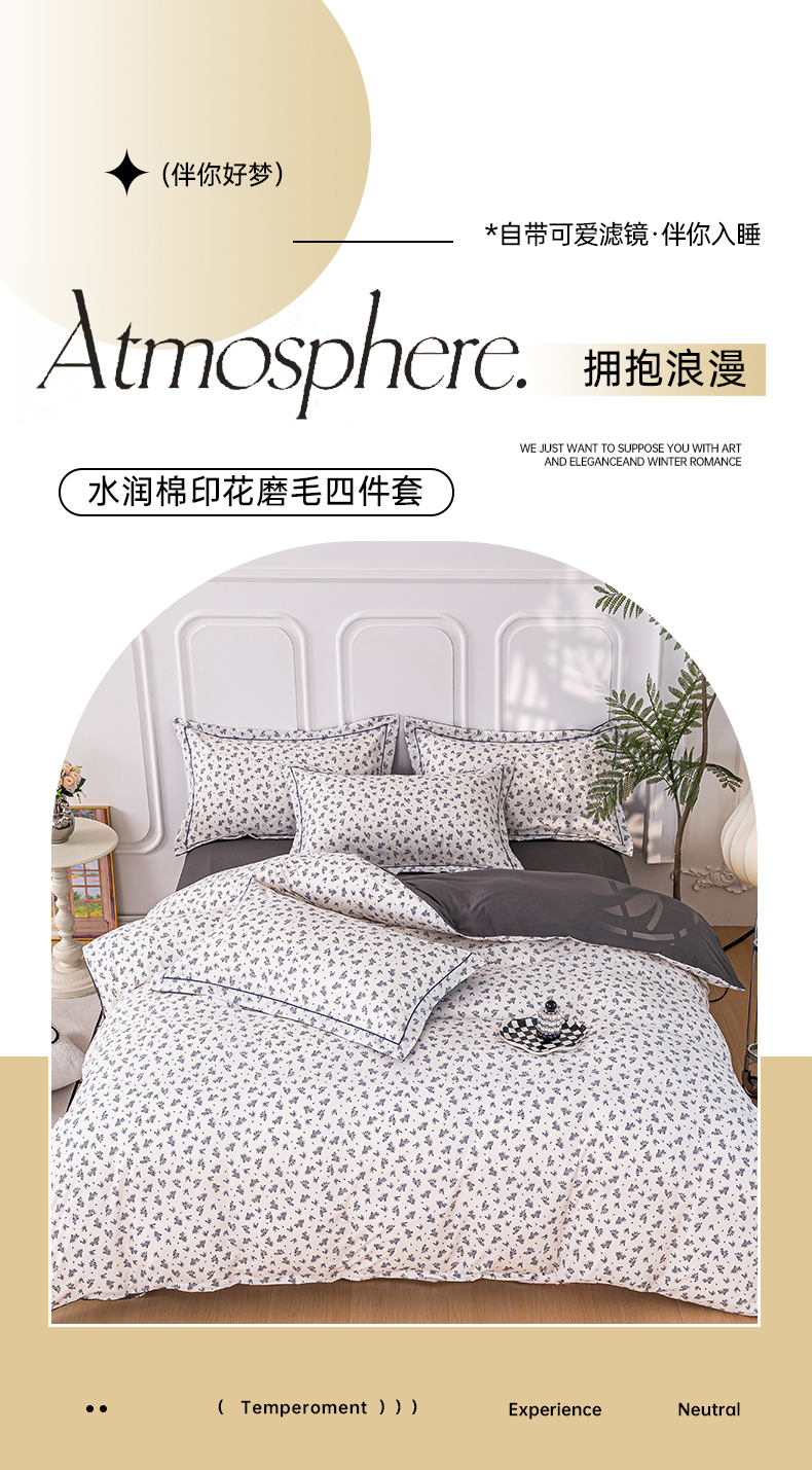 雅慕家居 2025新款A类碎花水润棉磨毛四件套 波点生活