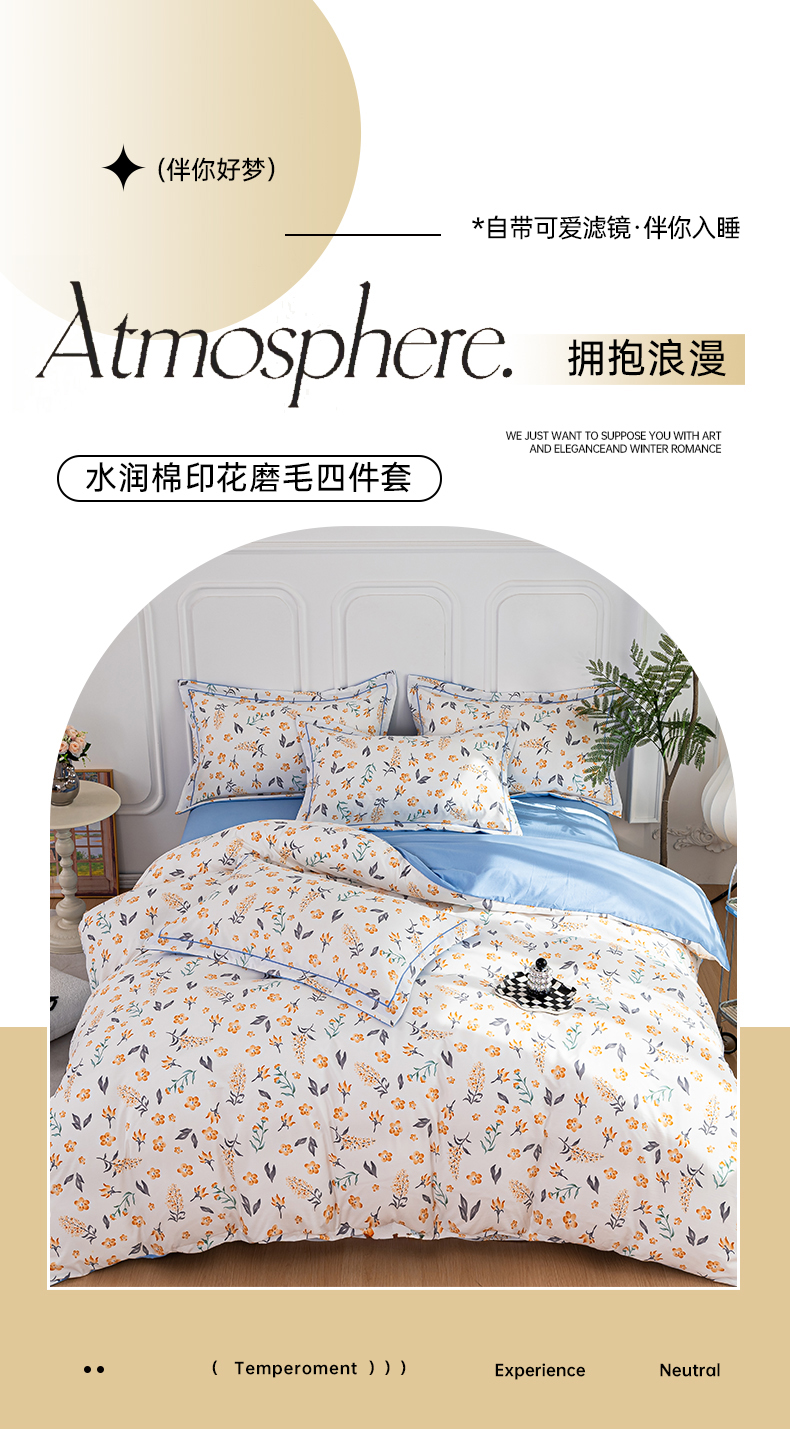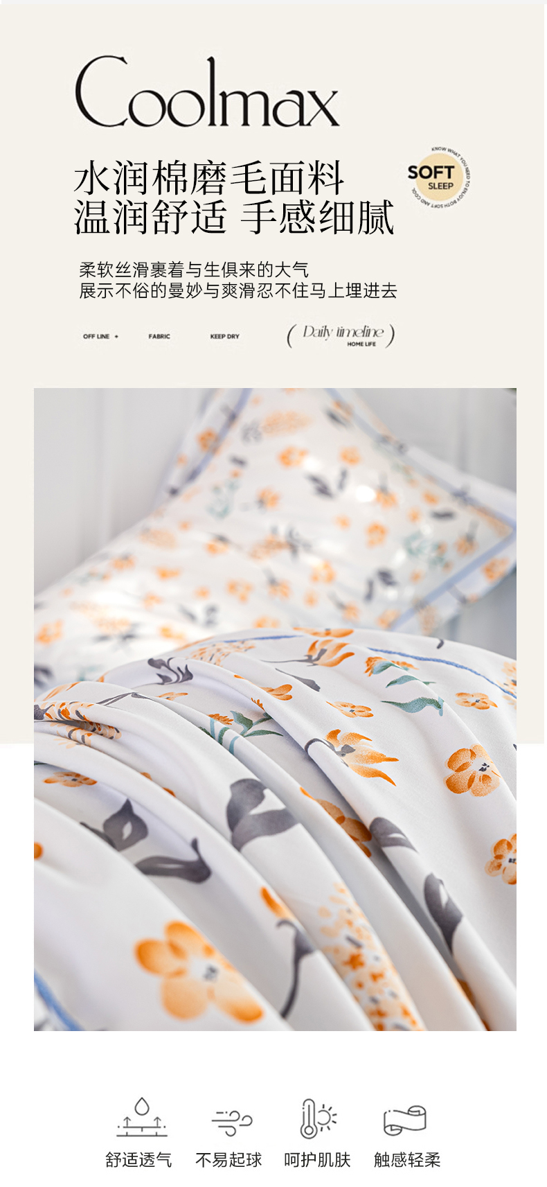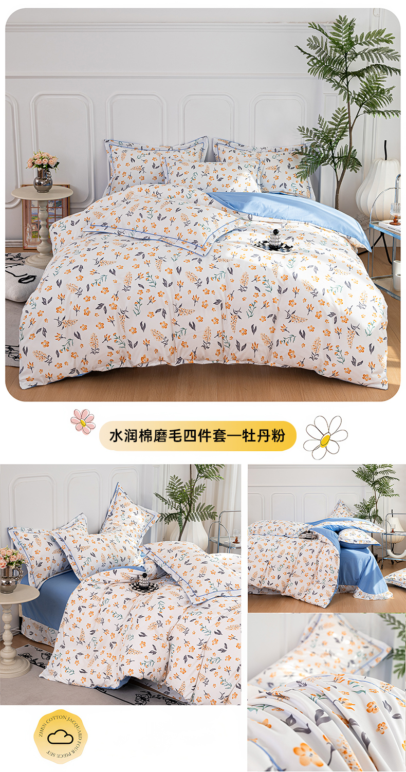 雅慕家居 2025新款A类碎花水润棉磨毛四件套 金桂花开