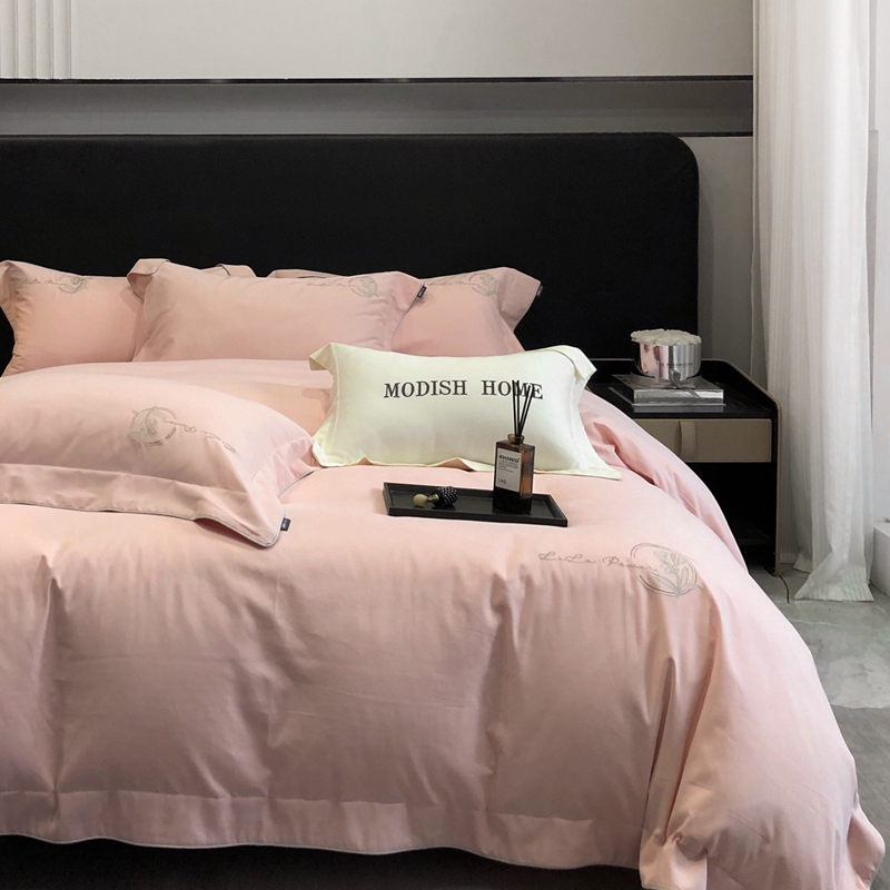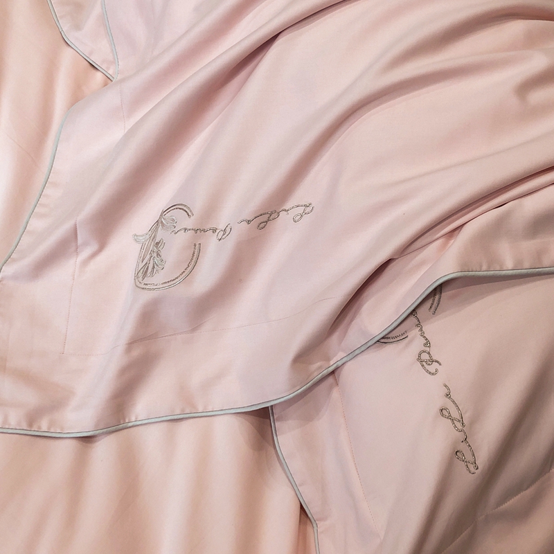 高支高密长绒棉贡缎磨毛花颜系列四件套 花颜粉玉