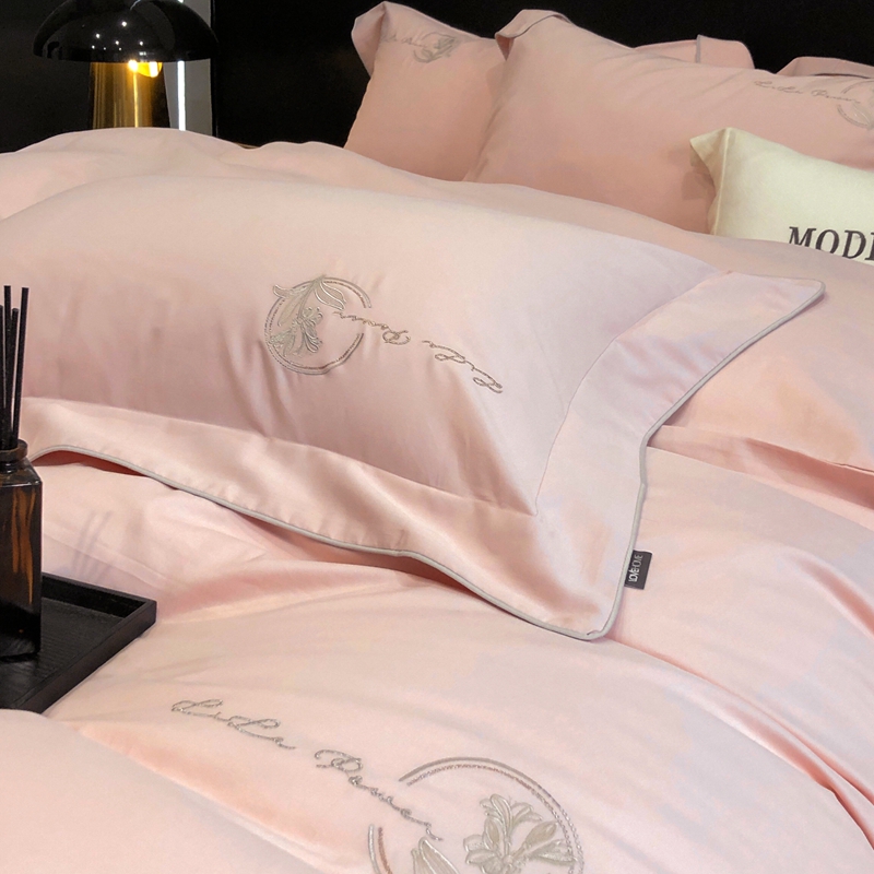 (总)玖玖爱家纺 2023新款120支贡缎长绒棉刺绣梦柔系列四件套,梦柔-香槟金,梦柔-香橙桔,梦柔-高级灰,梦柔-水蓝,梦柔-芙蓉玉