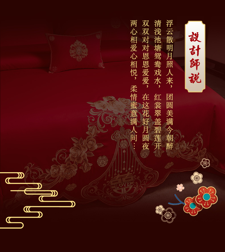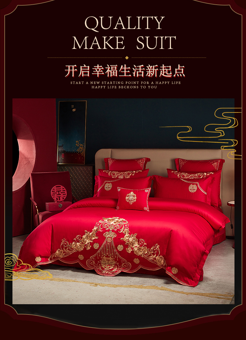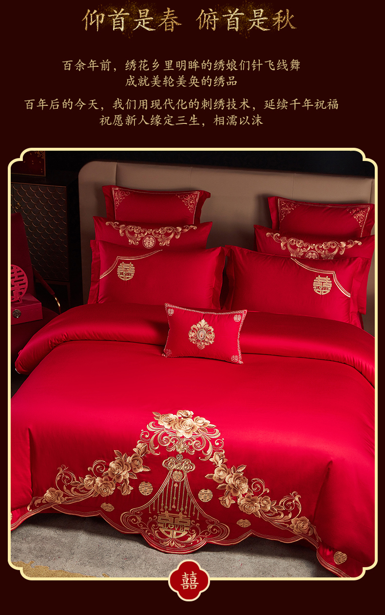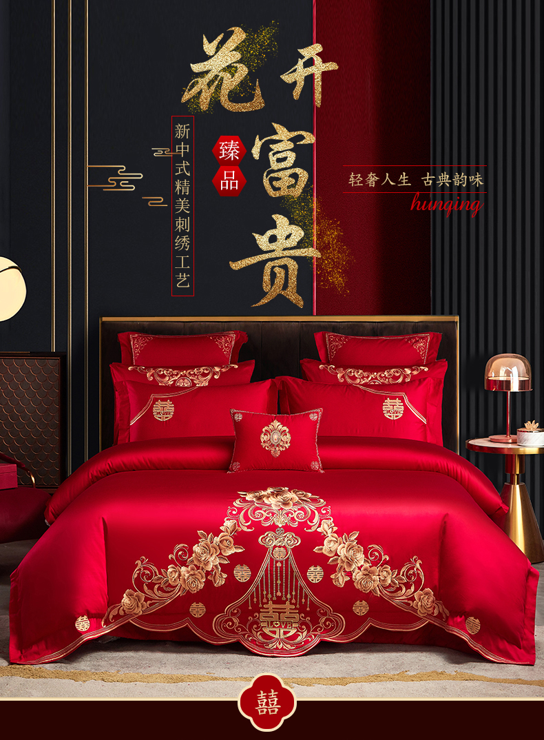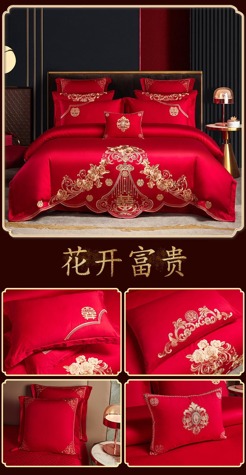 当前位置: 91家纺网 > 商品网购 > 床品套件 > 四件套 > 婚庆四件套 > 东方合美(原:皇家传奇) 2023新款40s全工艺喷气刺绣纯棉婚庆多件套-系列三 花开富贵