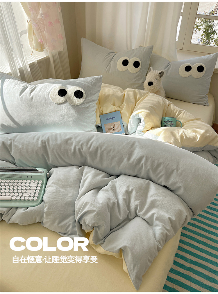 当前位置: 91家纺网 > 商品网购 > 床品套件 > 四件套 > 水洗棉四件套 > 2025新款A类亲肤舒适软糯云柔水洗棉大眼睛毛巾绣混搭格子撞色系列四件套 大眼海盐奶黄