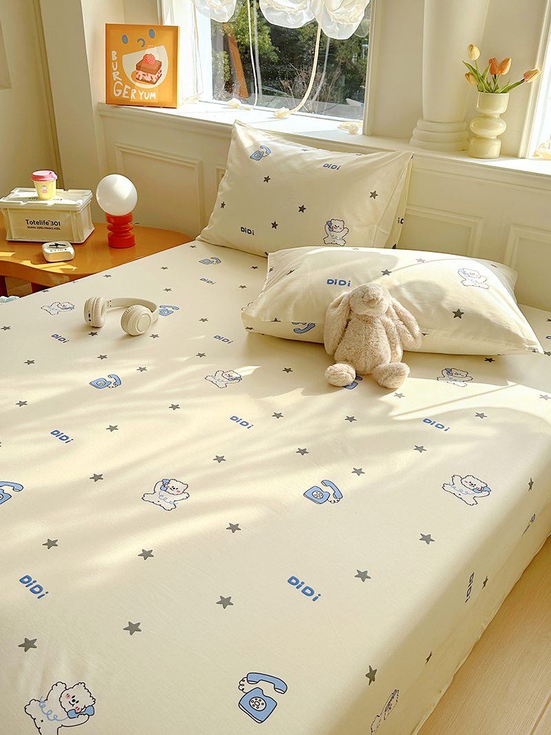 希诺家居 2025新款全棉纯棉卡通小清新床笠 电话小熊