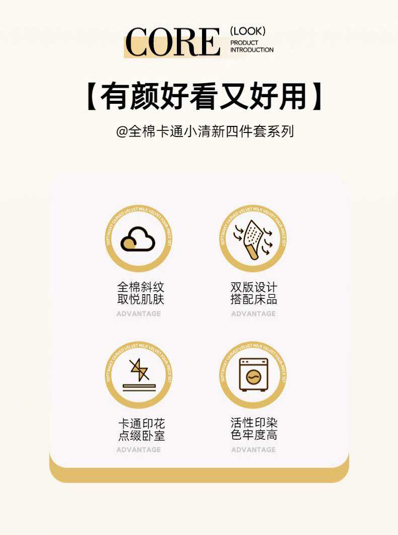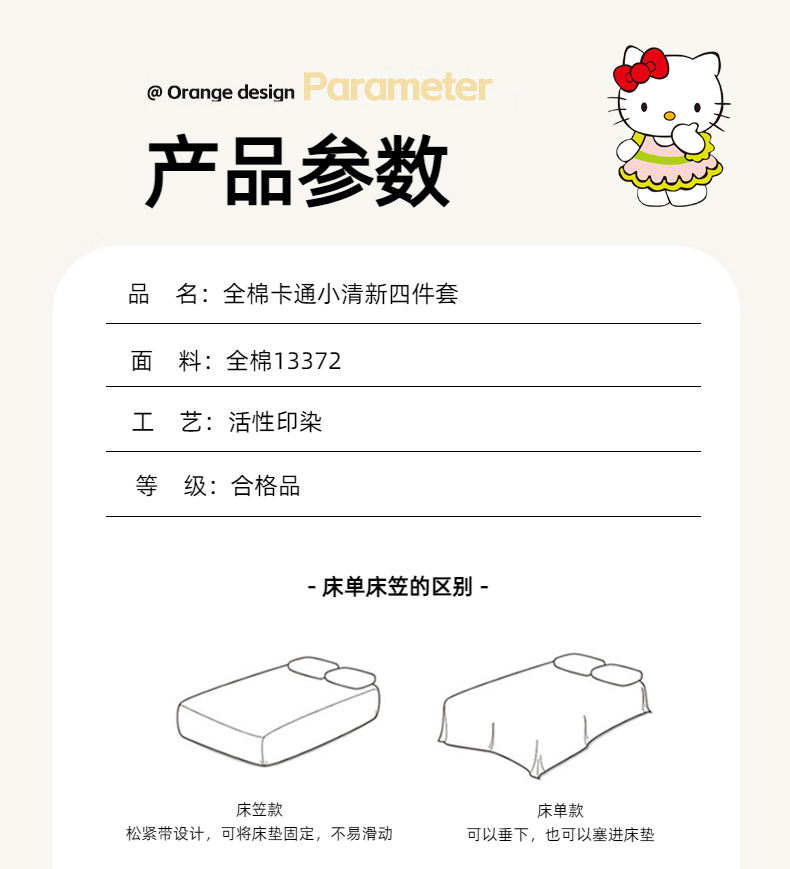 商品名称:2025新款全棉卡通小清新系列四件套 糖果猫