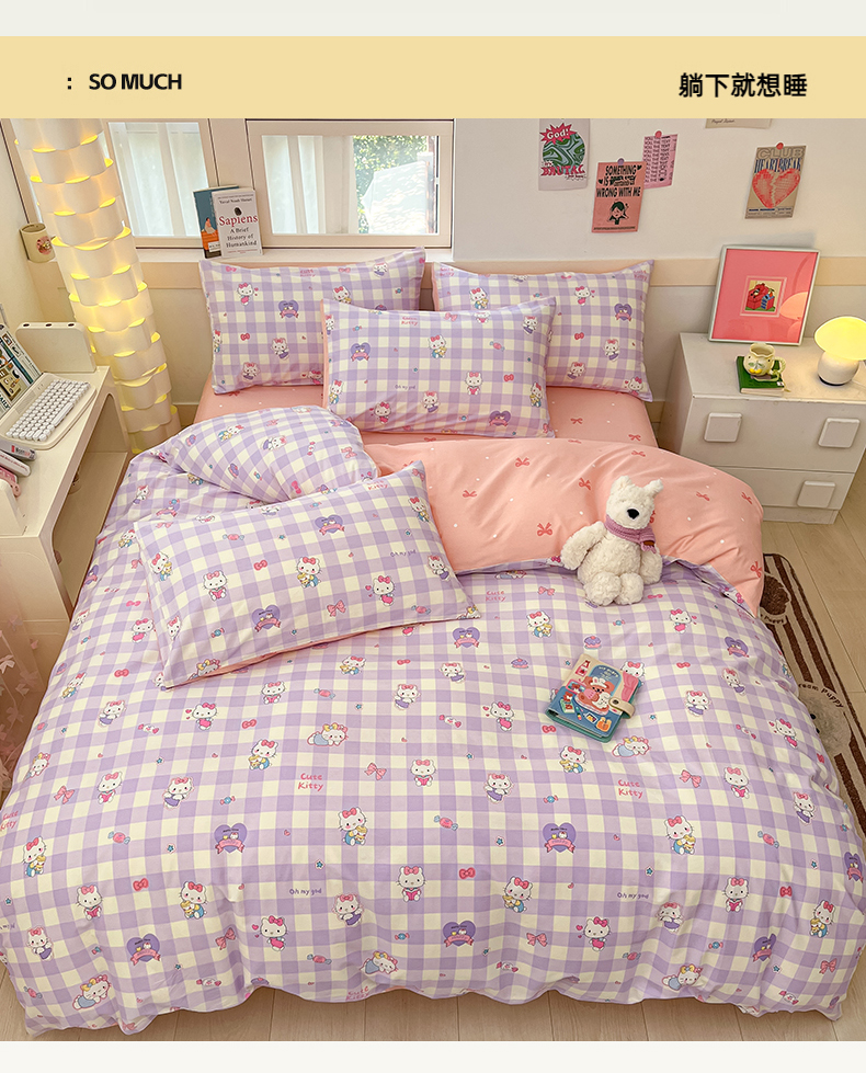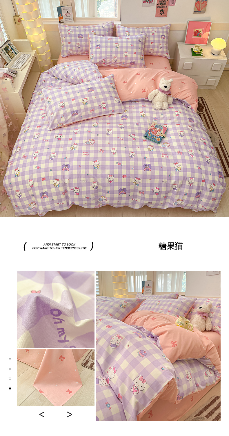 2025新款全棉卡通小清新系列四件套 糖果猫