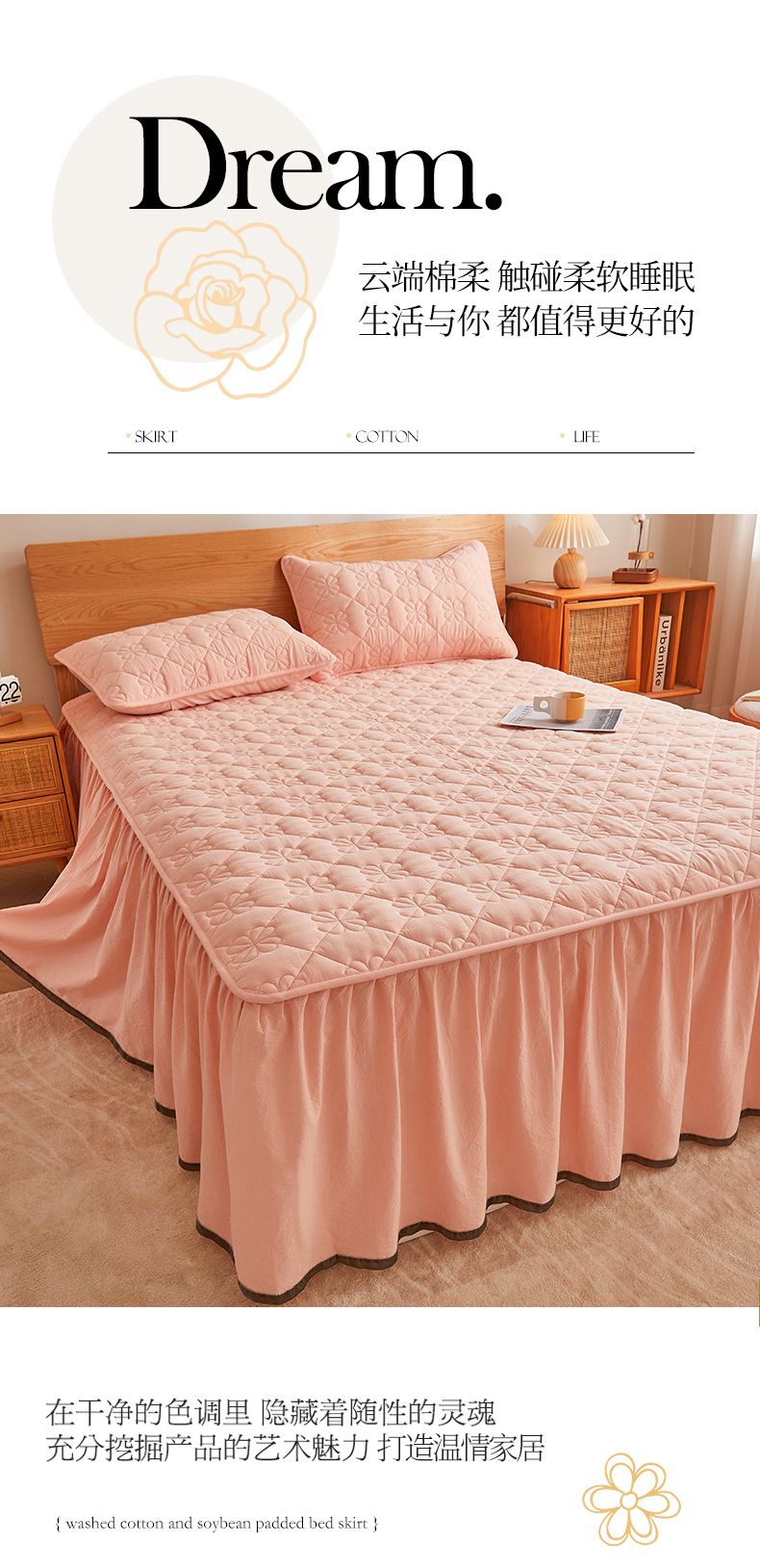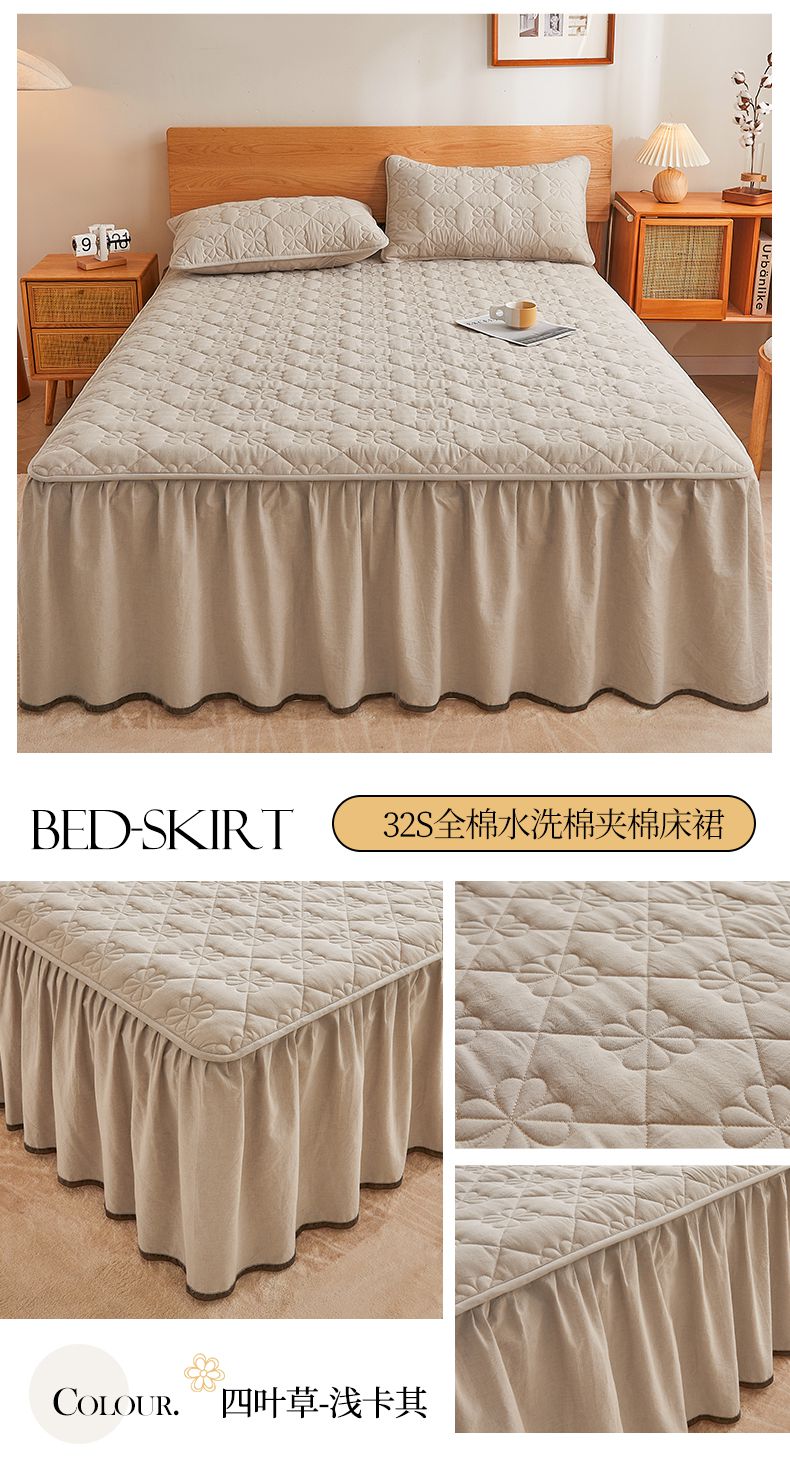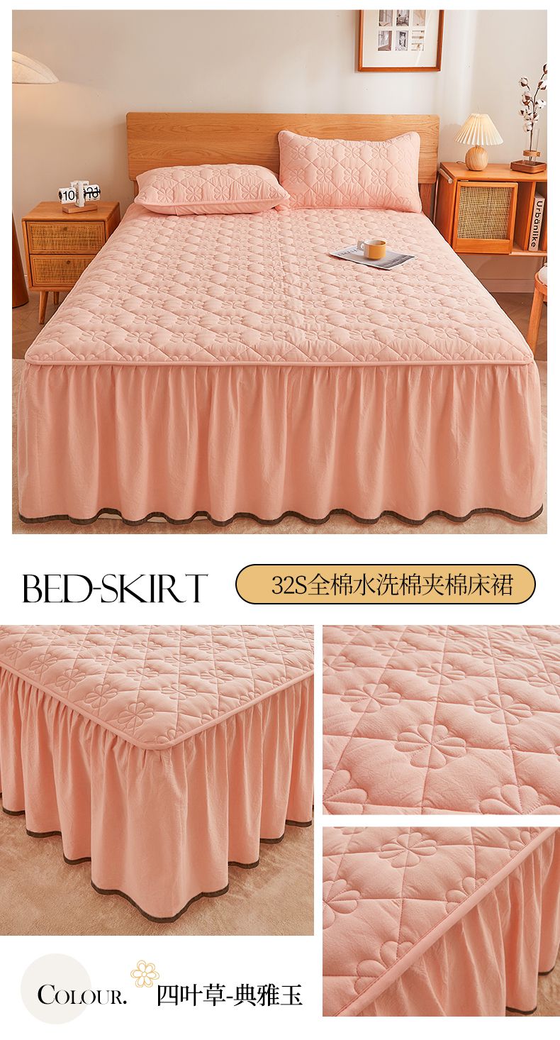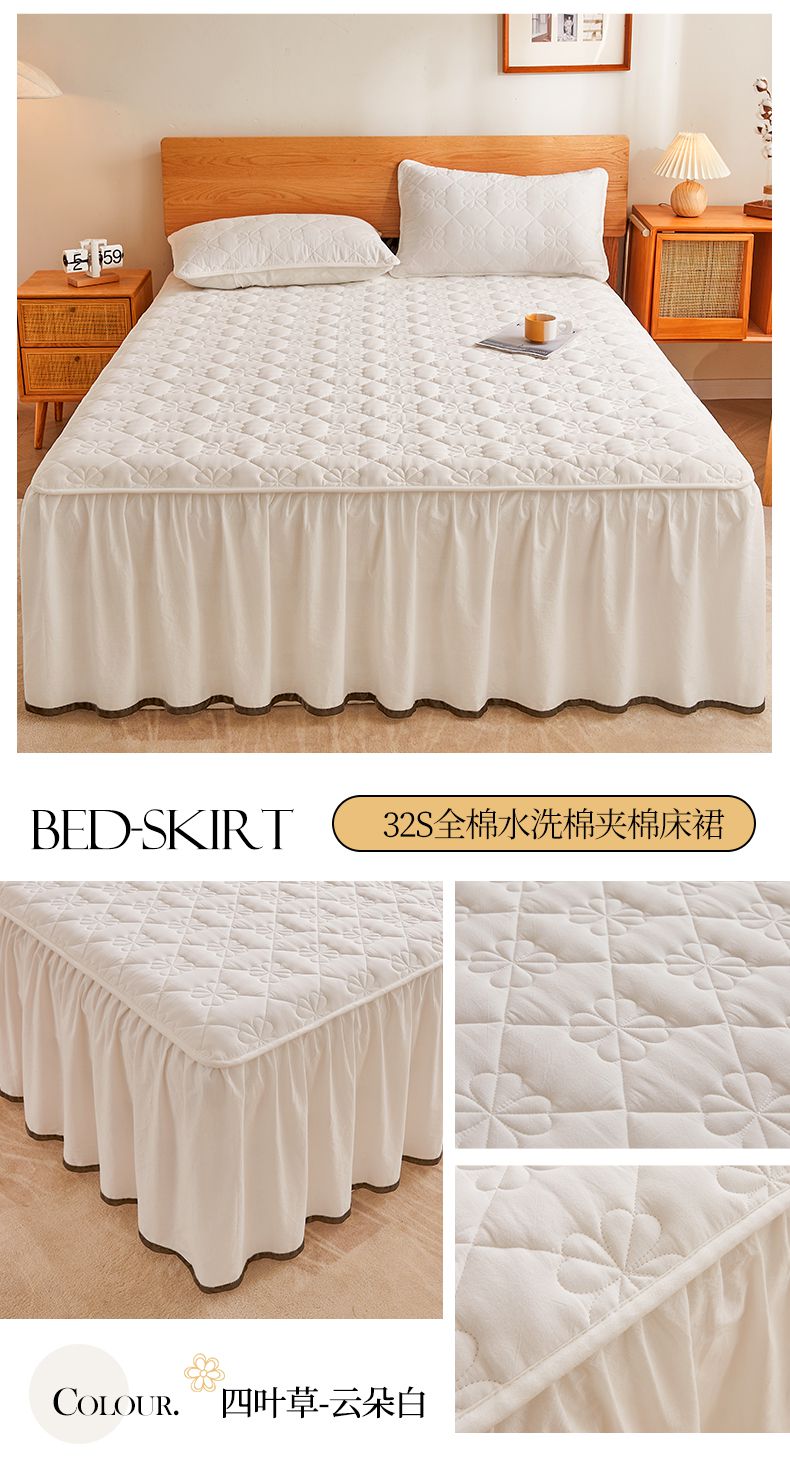 商品名称:3C 2024新款全棉水洗棉夹棉床裙-四叶草系列 四叶草-典雅玉