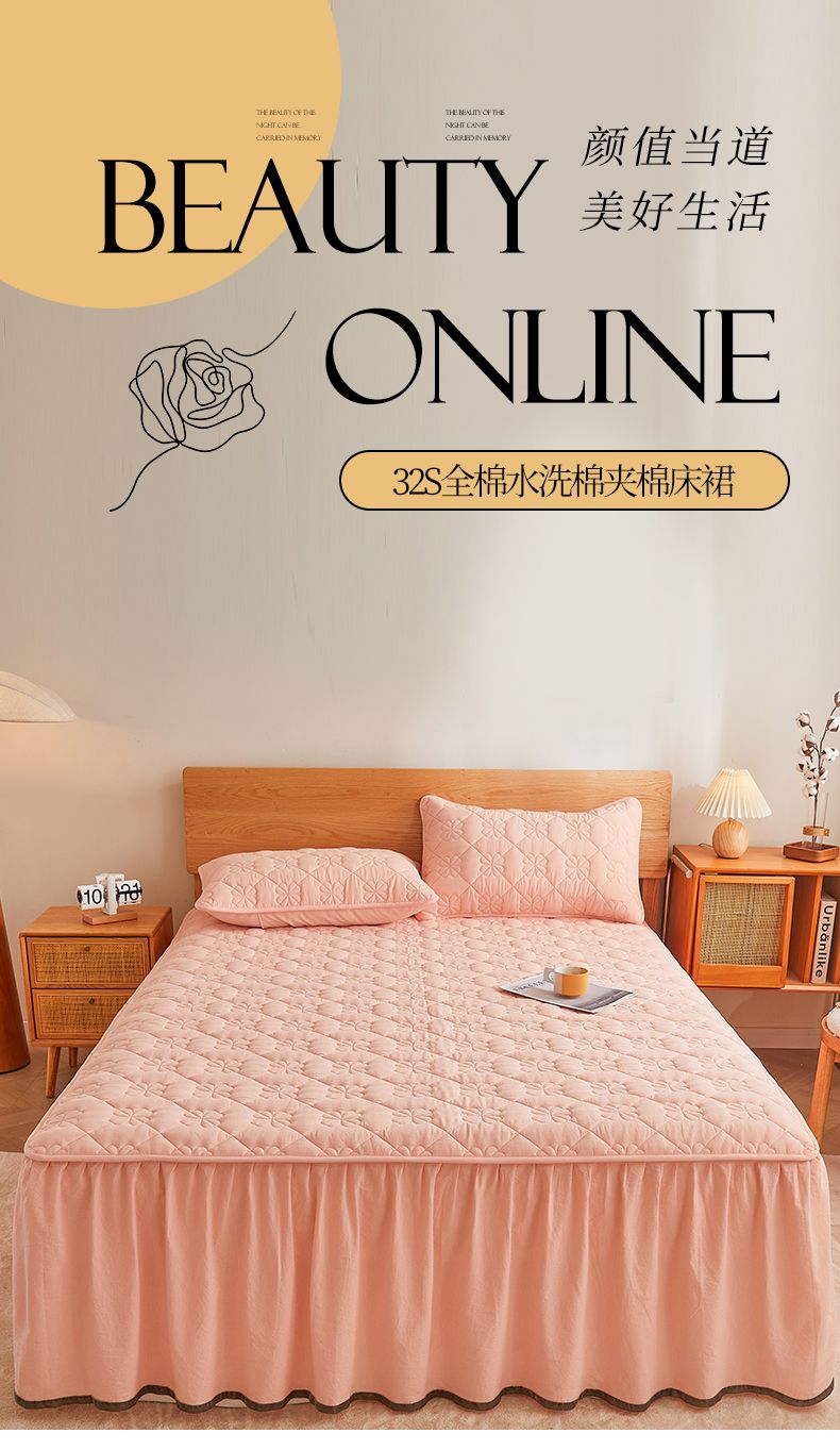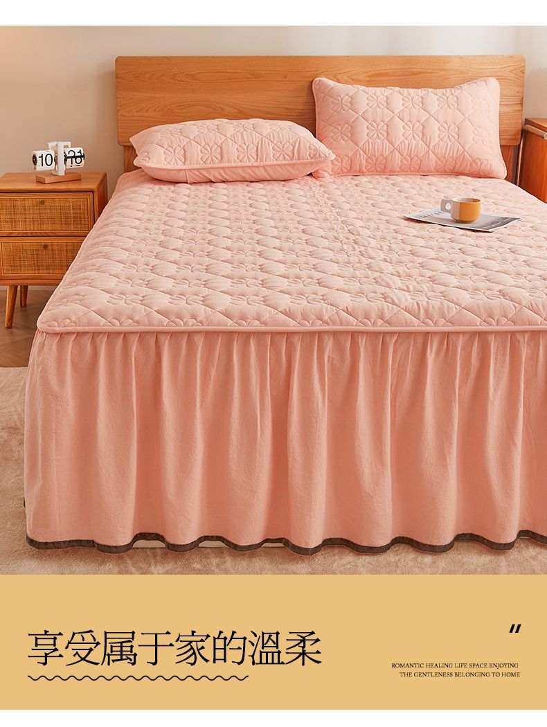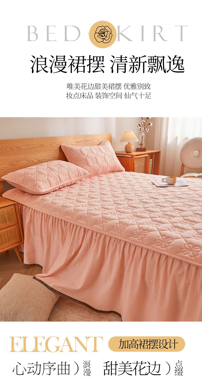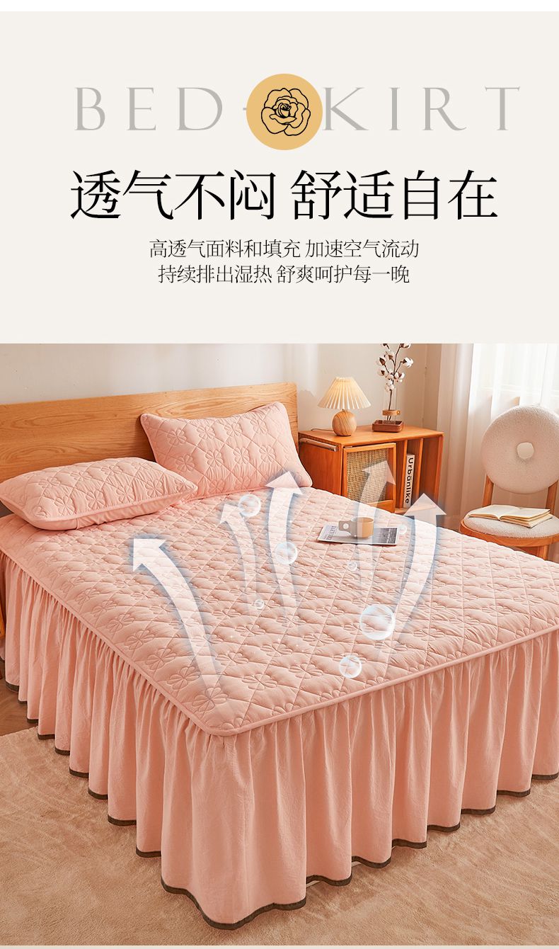 商品名称:3C 2024新款全棉水洗棉夹棉床裙-四叶草系列 四叶草-典雅玉