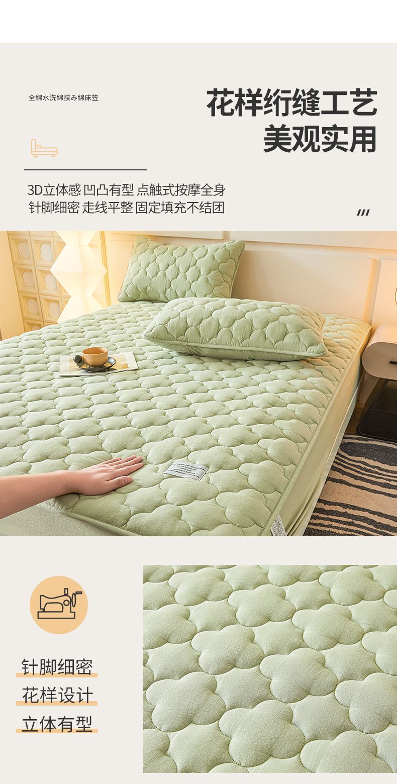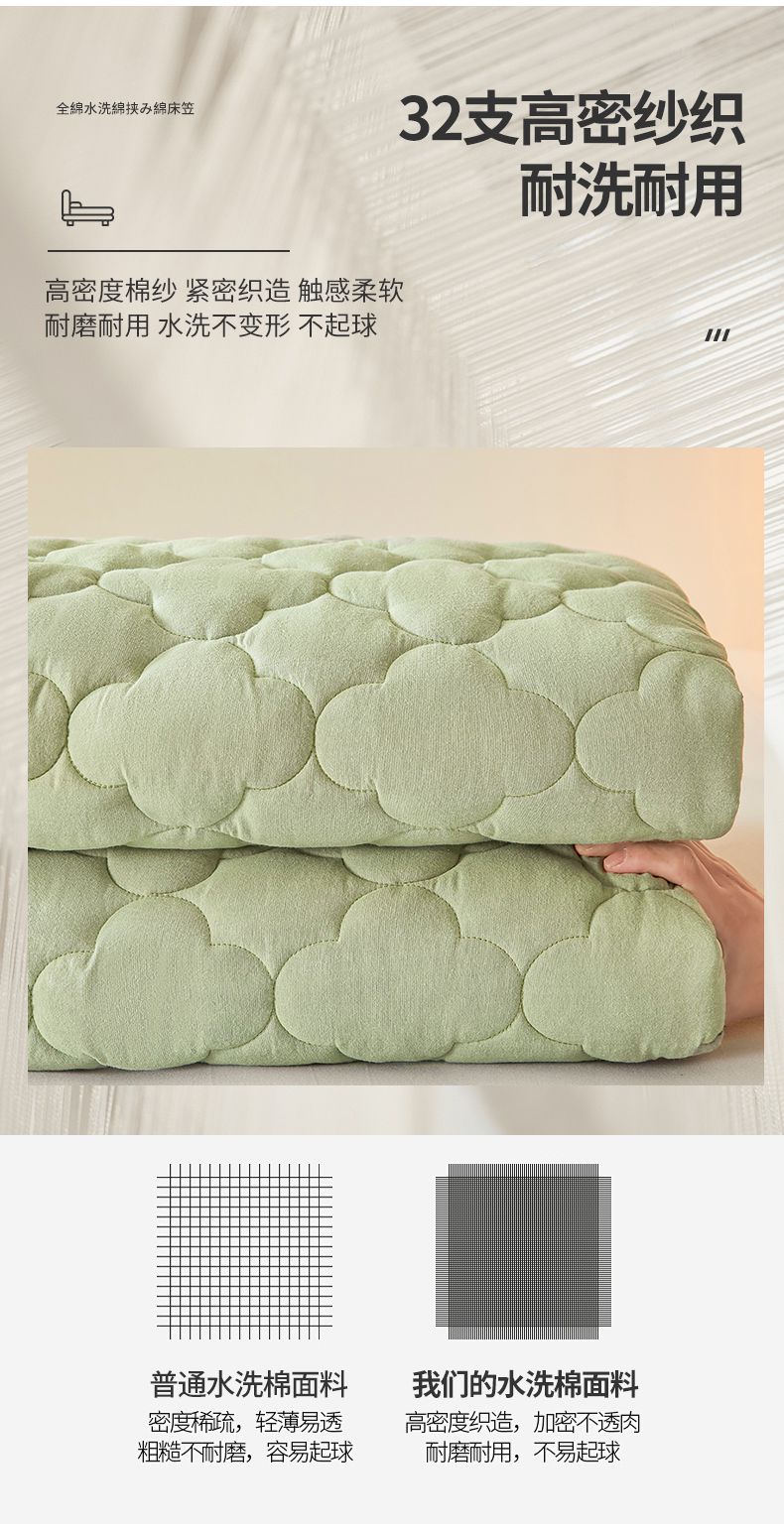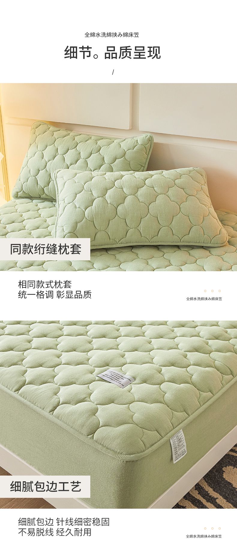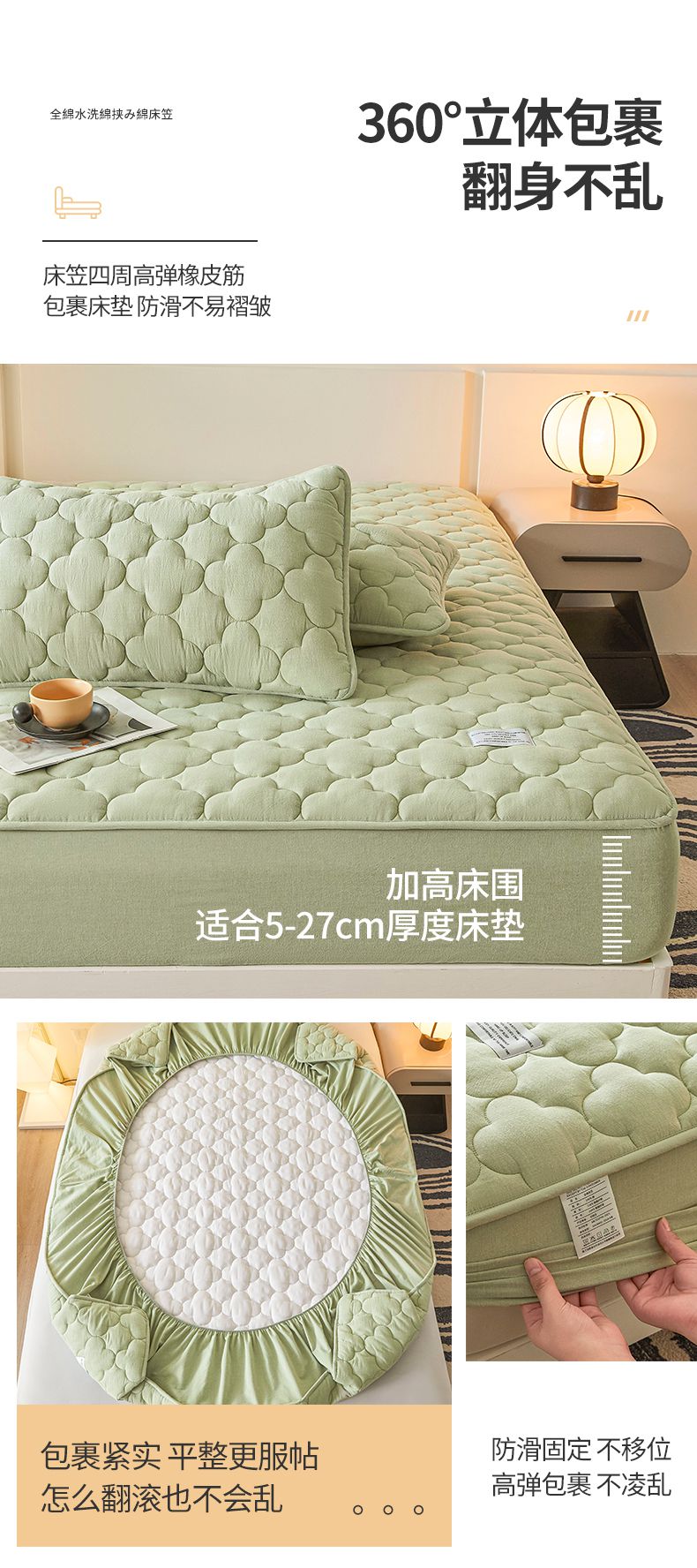 商品名称:3C 2025新款全棉水洗棉夹棉床笠-梦屿系列 梦屿 抹茶绿