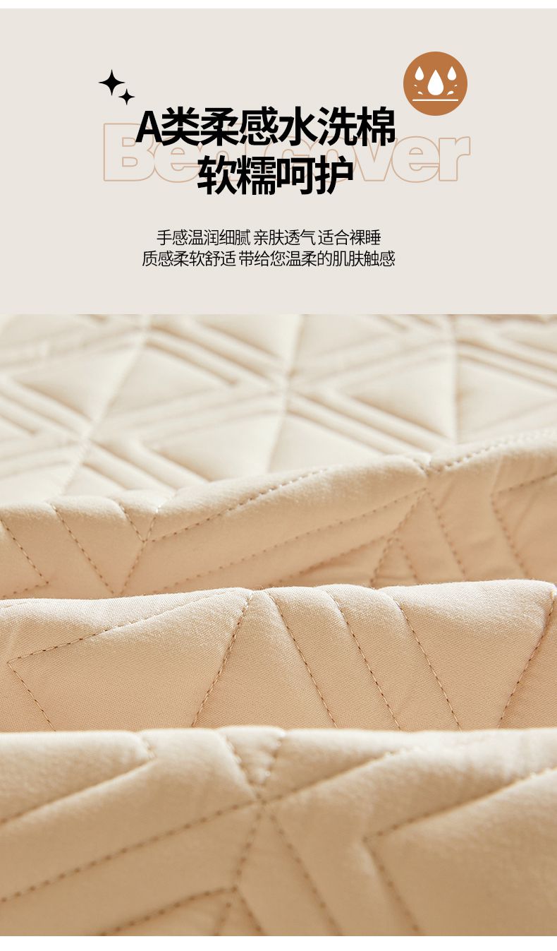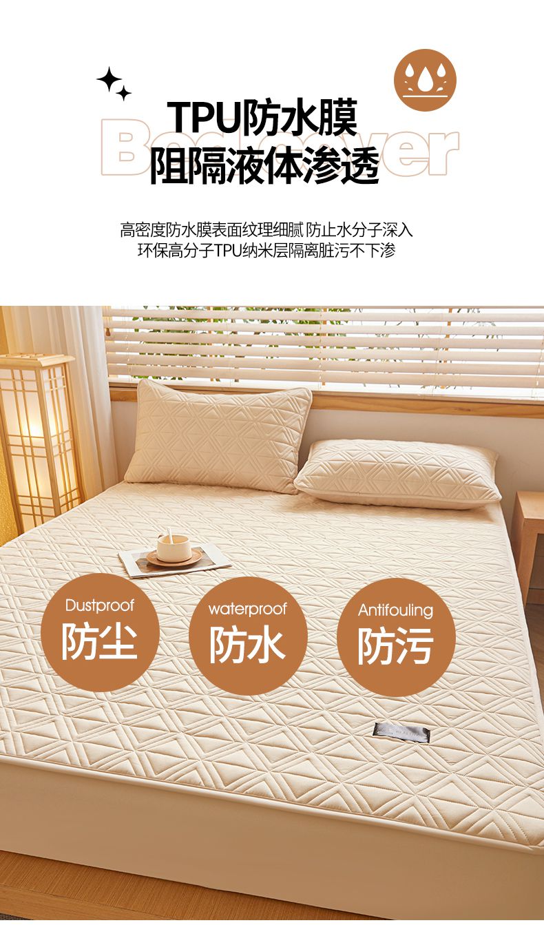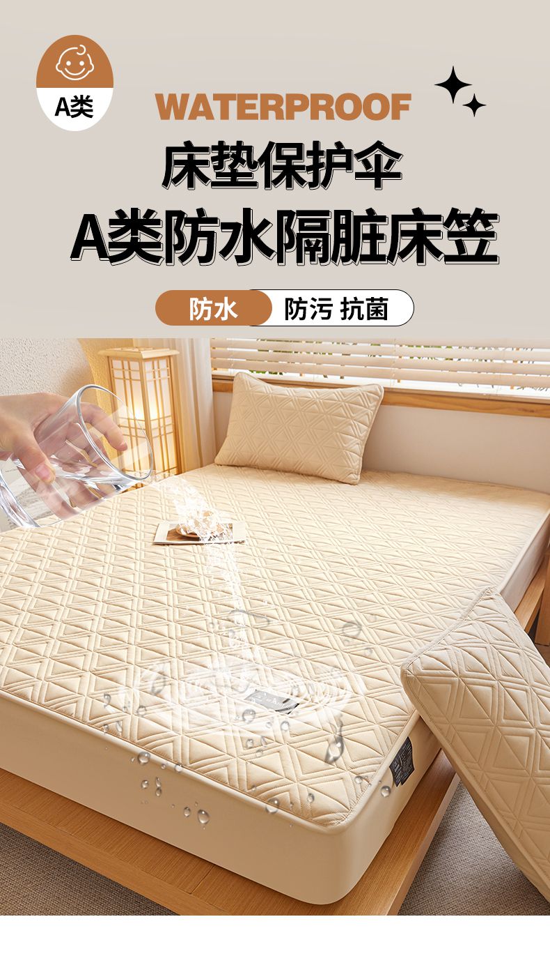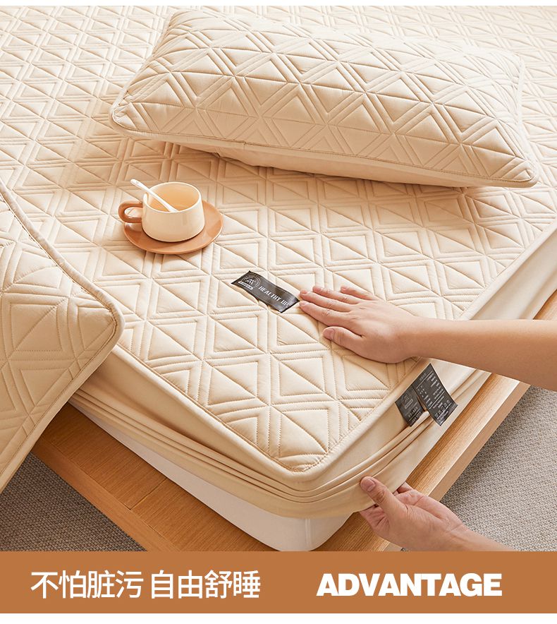 • 91家纺网 家纺一手货源 找家纺 3C 2025新款A类三角格防水隔脏床笠 三角格-浅卡其