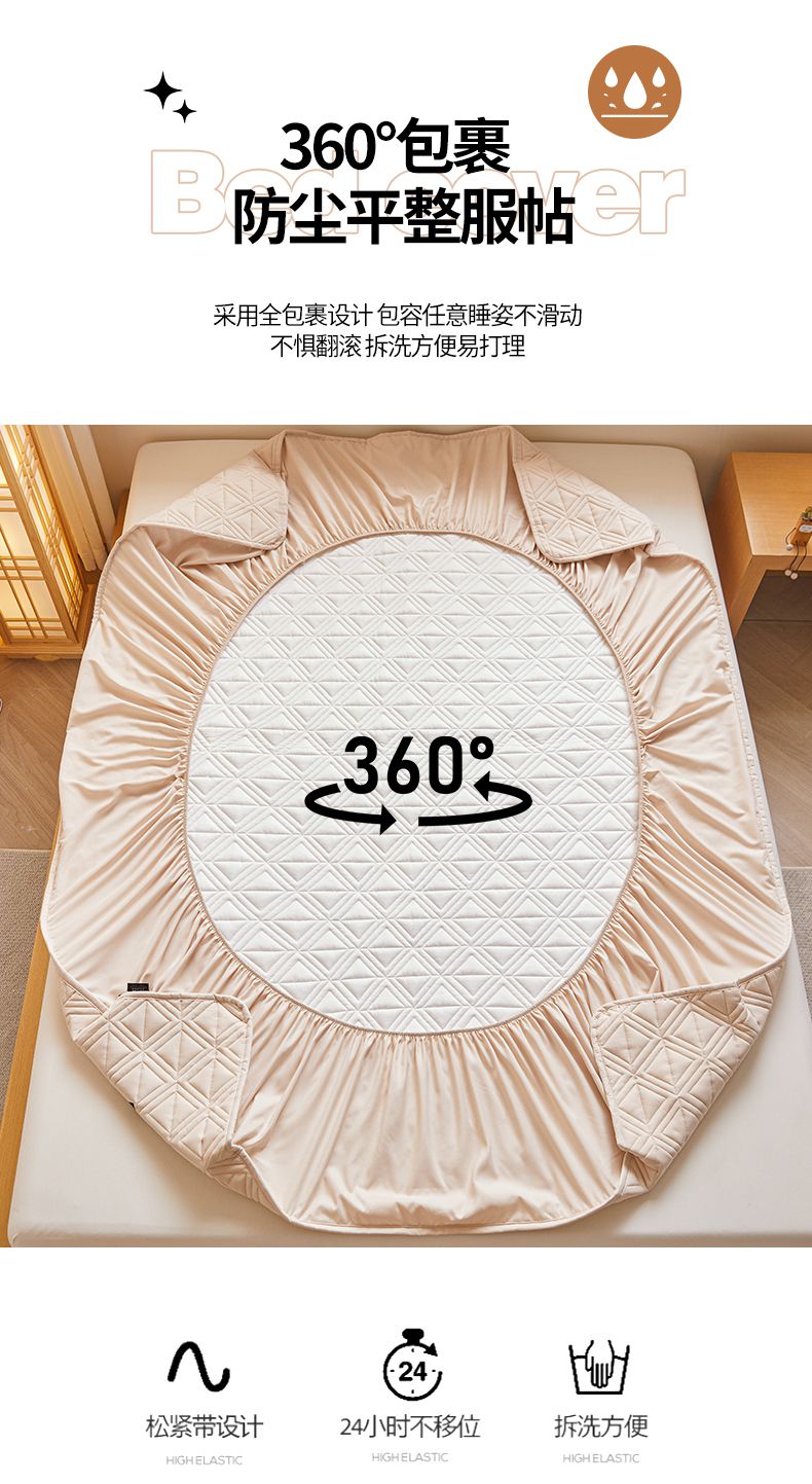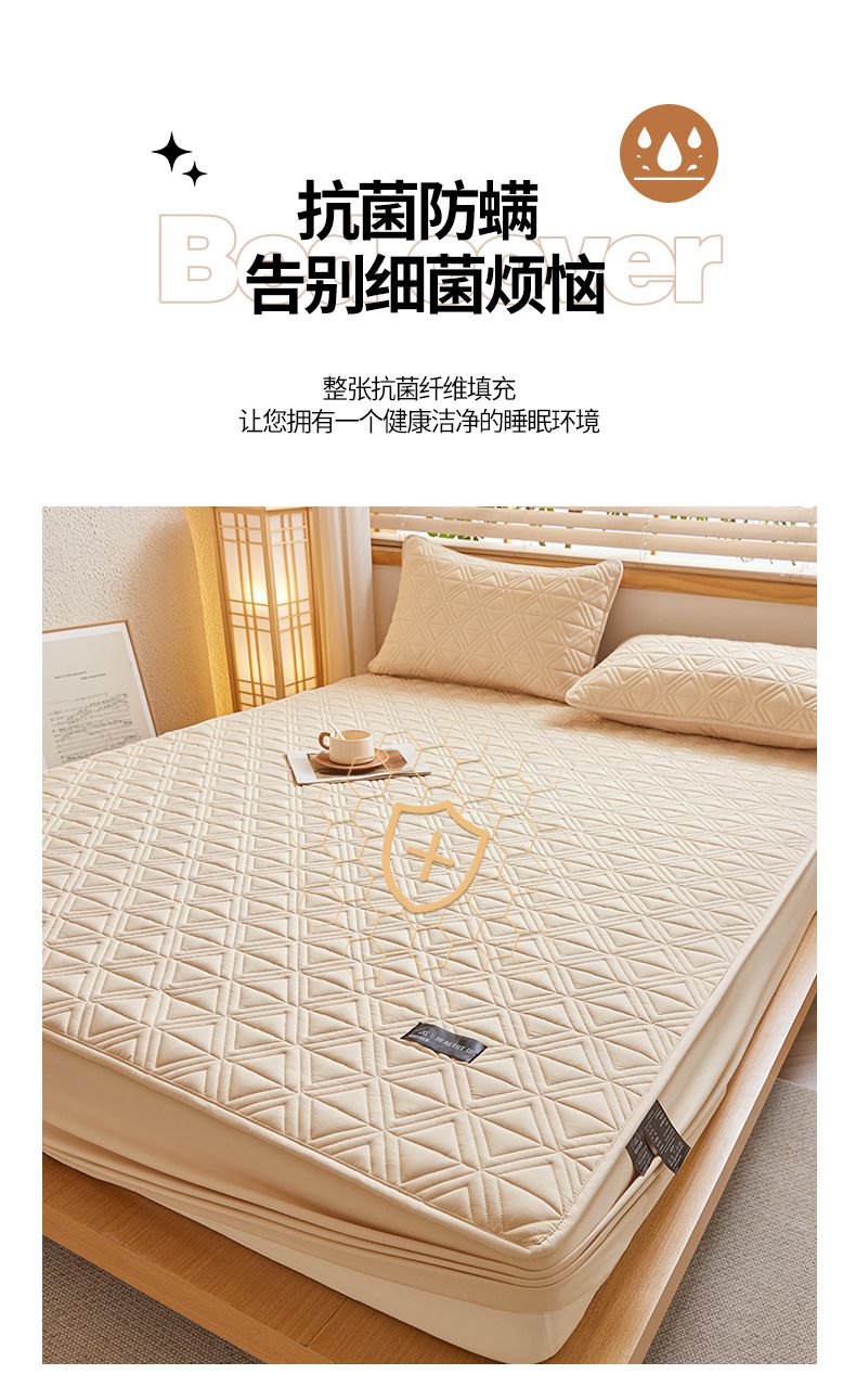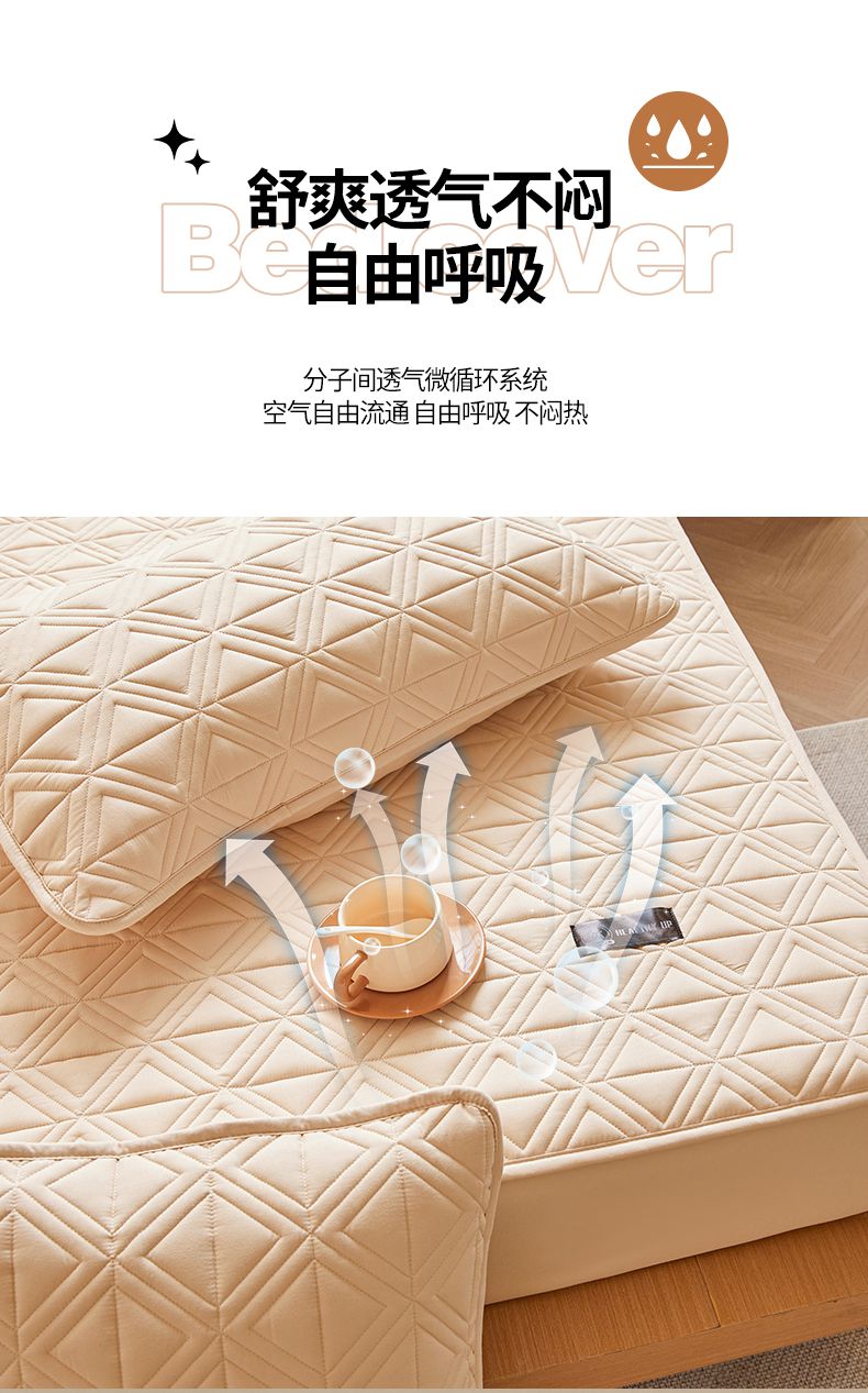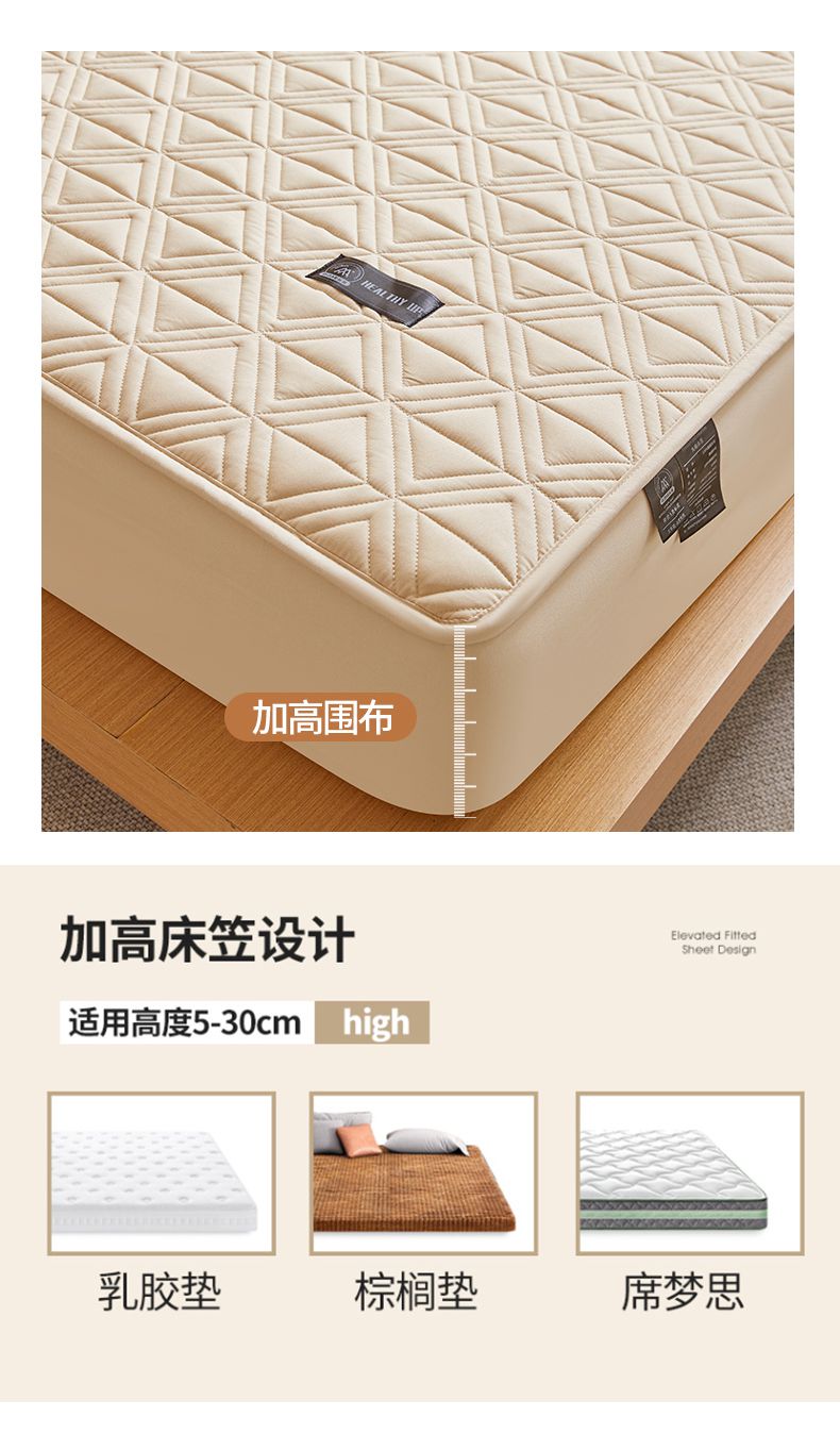 • 91家纺网 家纺一手货源 找家纺 3C 2025新款A类三角格防水隔脏床笠 三角格-浅卡其
