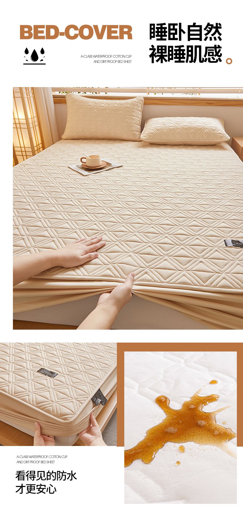 3C 2025新款A类三角格防水隔脏床笠 三角格-浅卡其