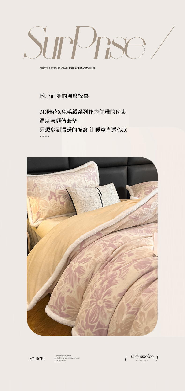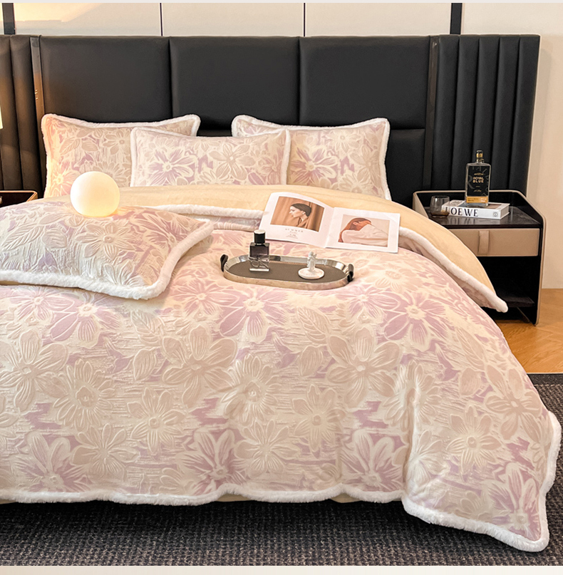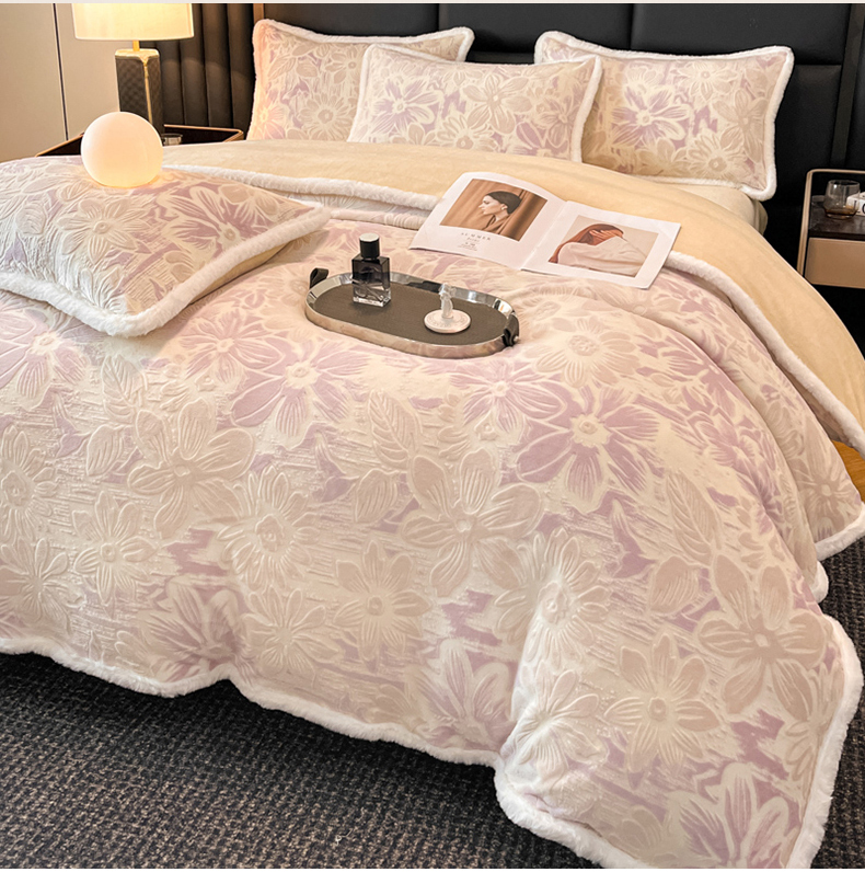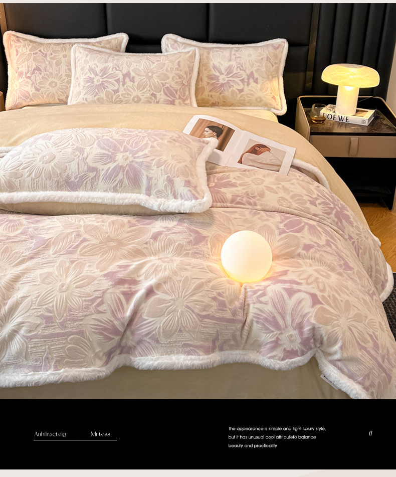 畅畅家纺 2025新款兔毛绒大包边雕花牛奶绒绒四件套 梵花-紫金