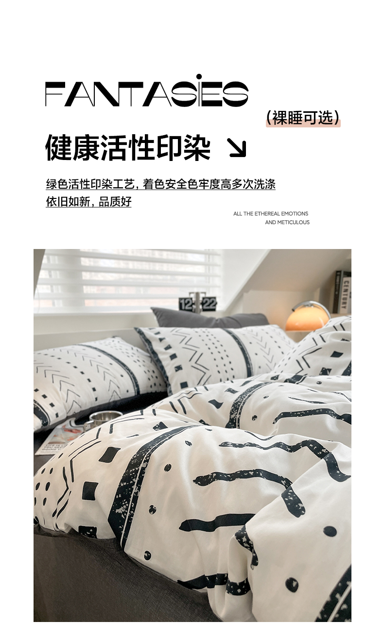 (总)雅居纺家纺 2022新款13070全棉印花四件套,波纹,多彩,简笔画,莓关系,奶油绿豹纹,倾心,数字