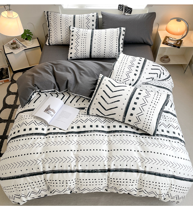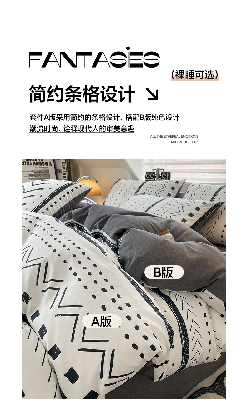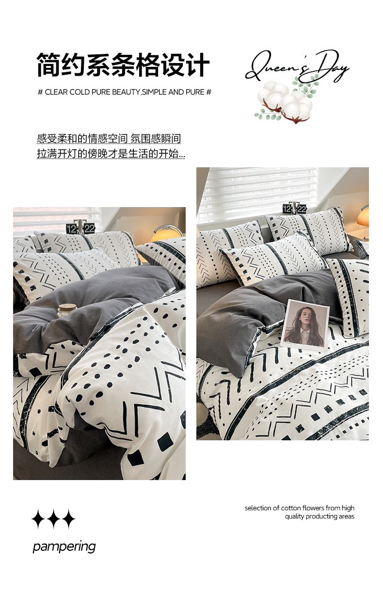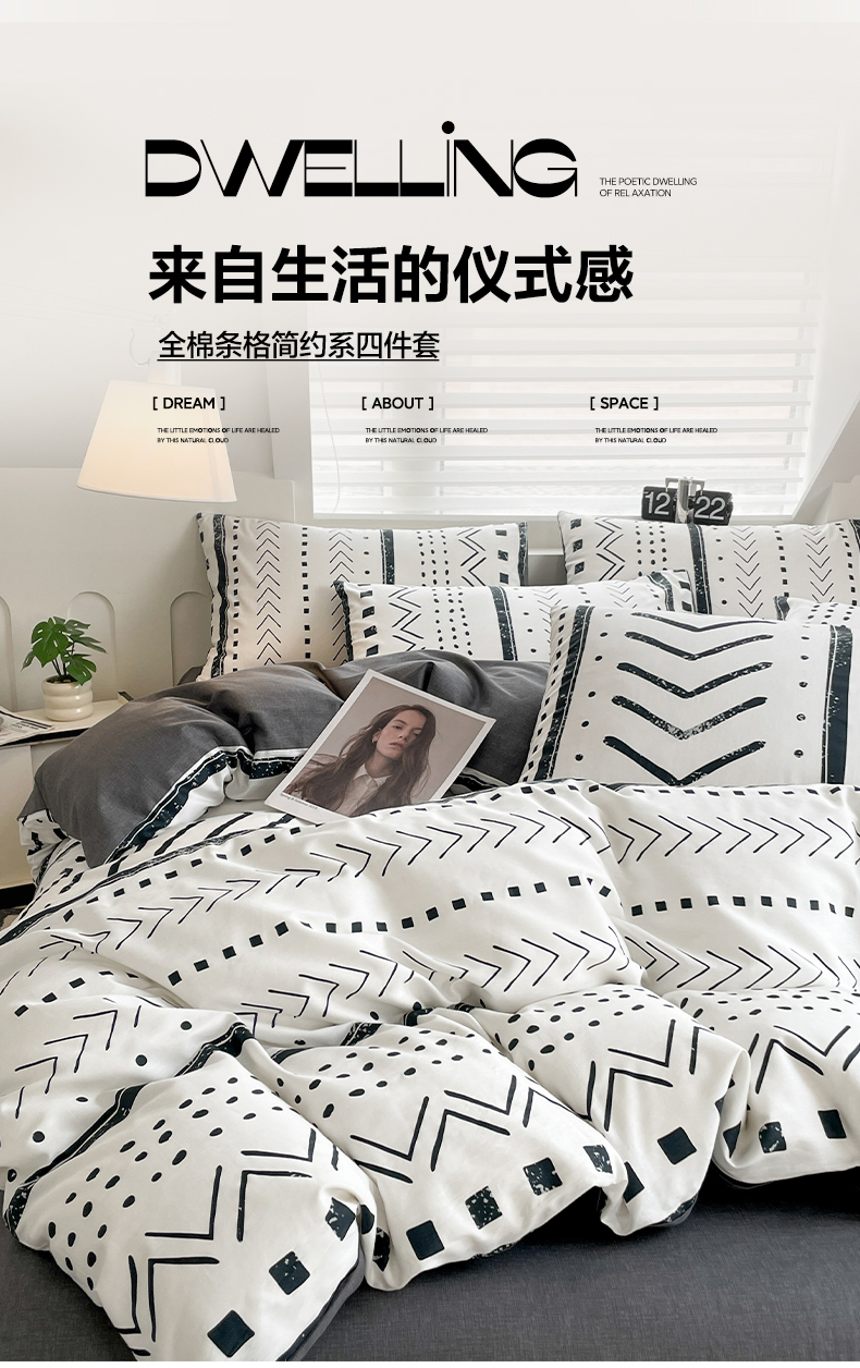 商品名称:雅居纺家纺 2025新款全棉条格简约系四件套 图灵