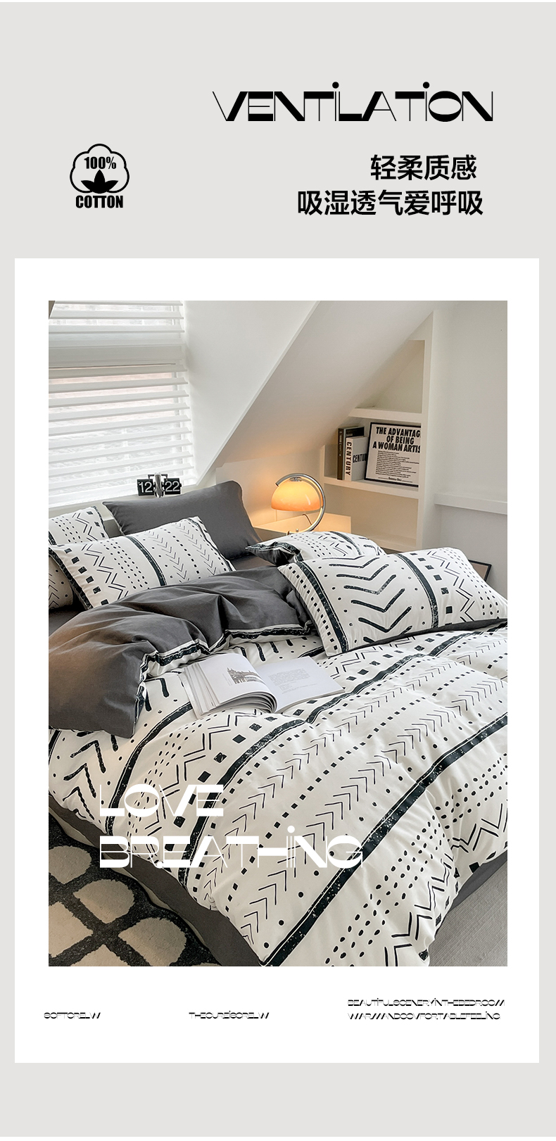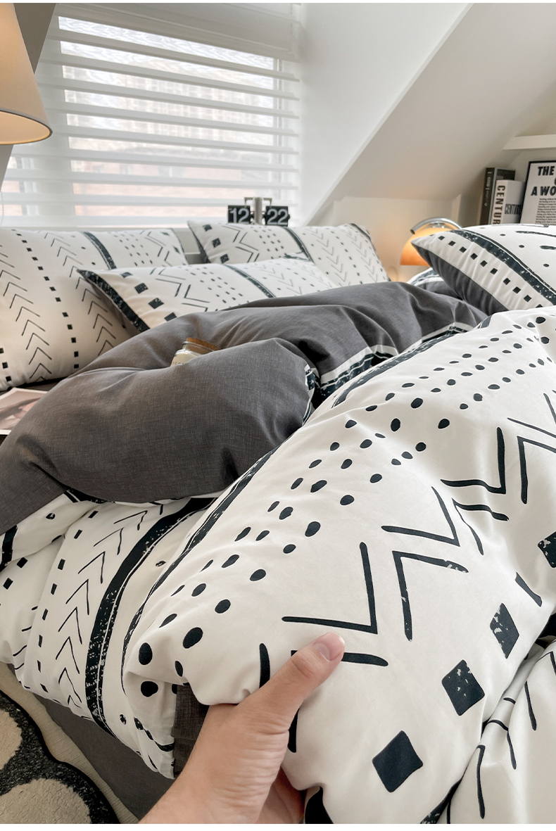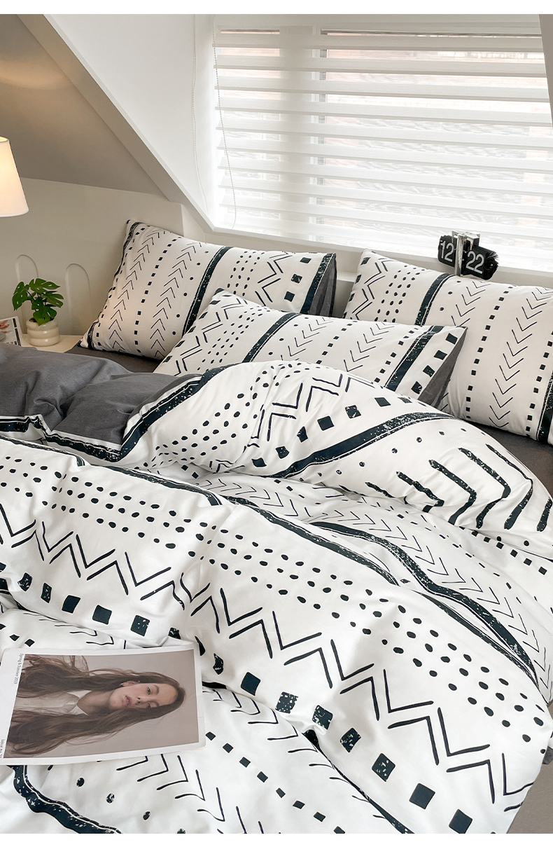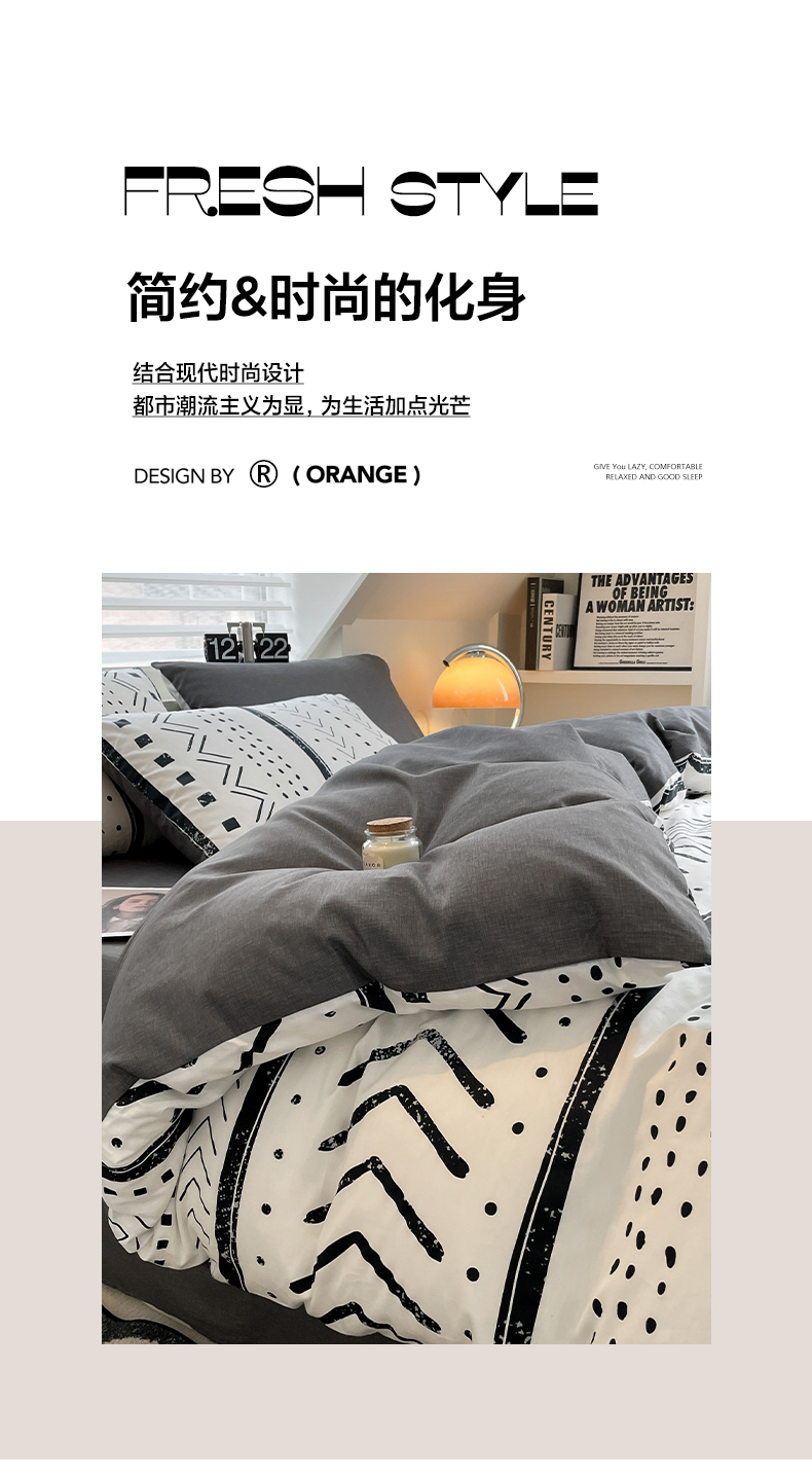 商品名称:雅居纺家纺 2025新款全棉条格简约系四件套 图灵