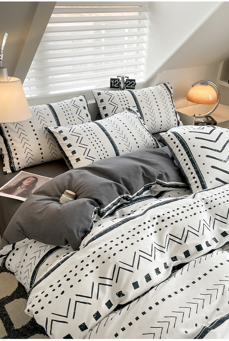 雅居纺家纺 2025新款全棉条格简约系四件套 图灵