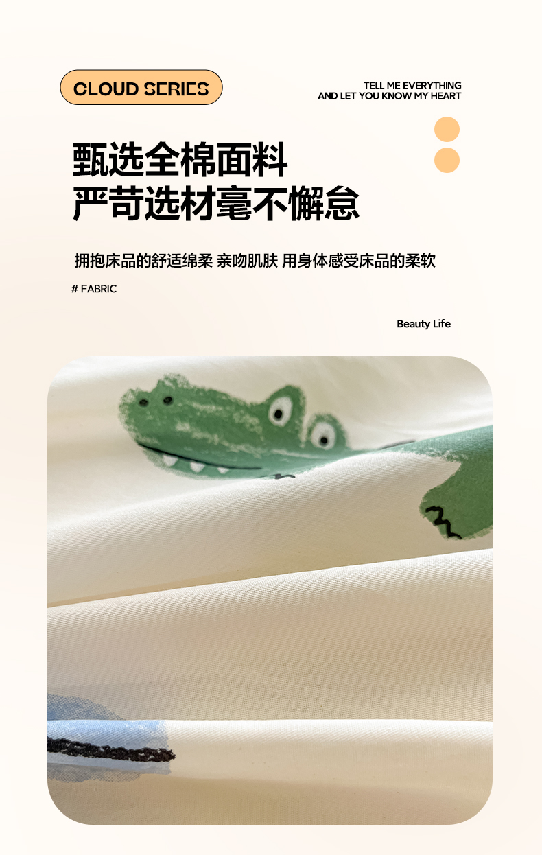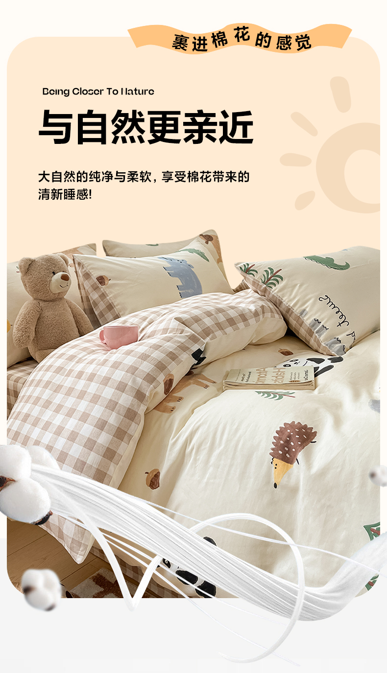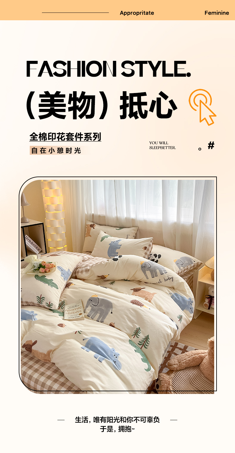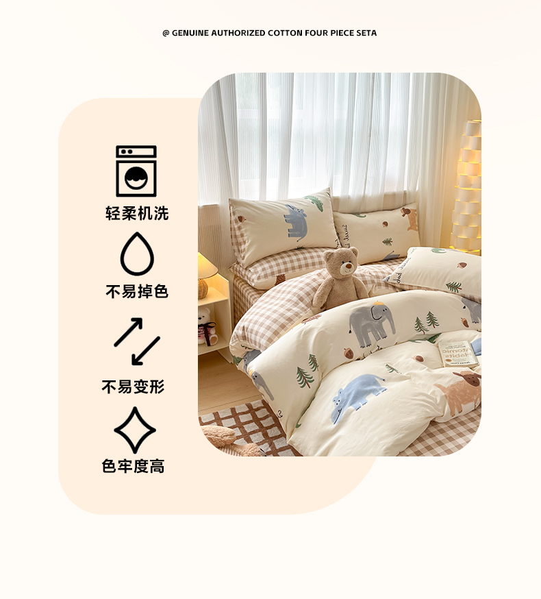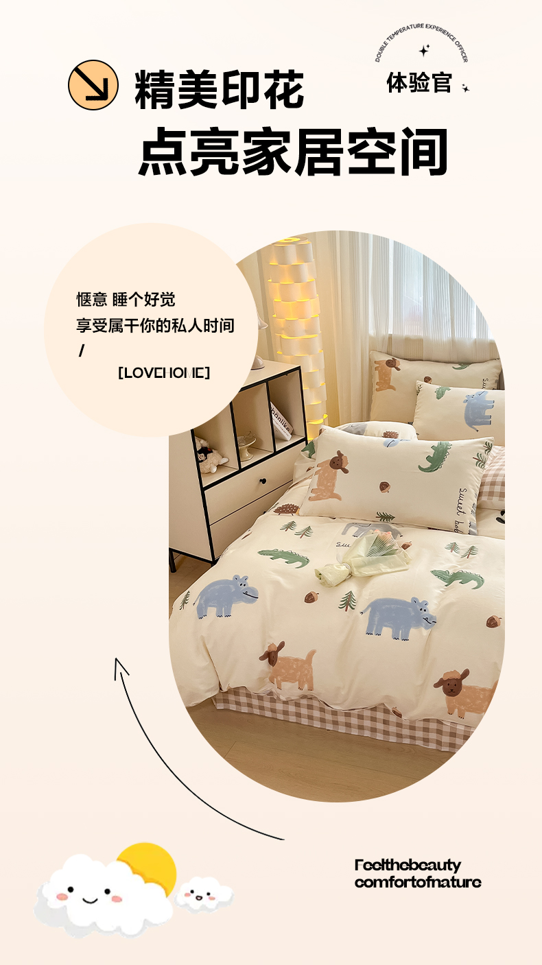 商品名称:雅居纺家纺 2025新款全棉小清新四件套 动物世界