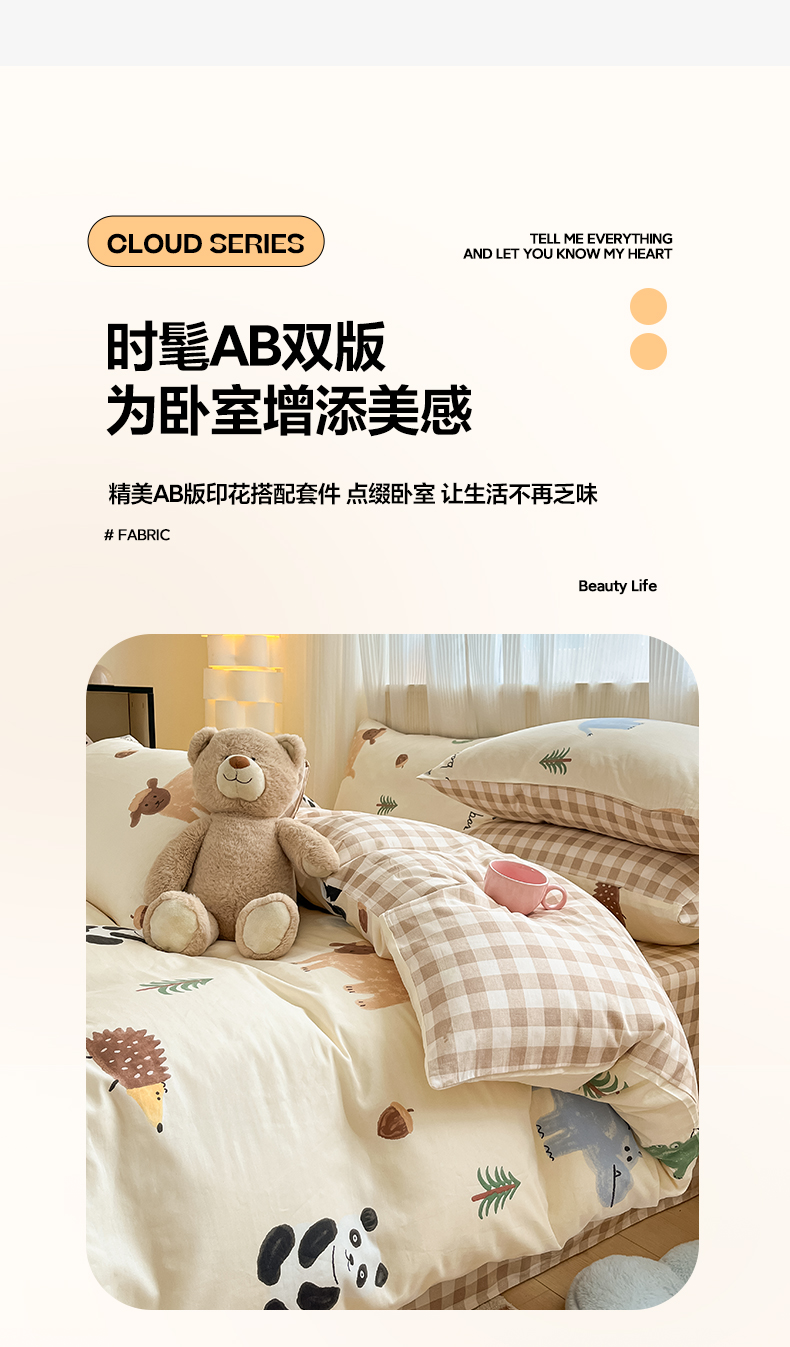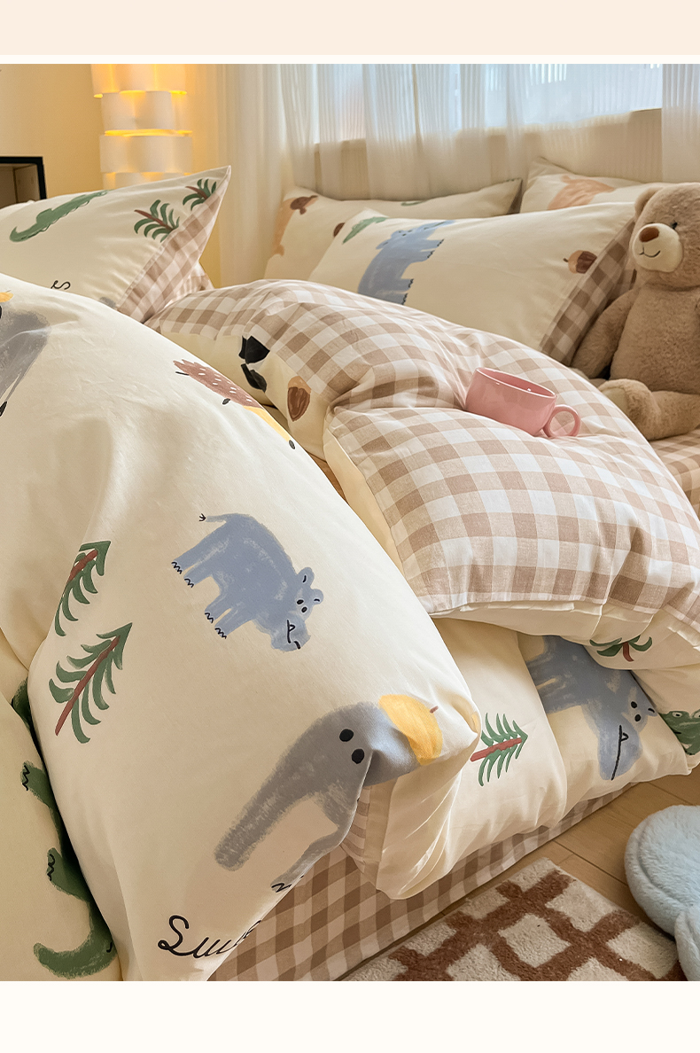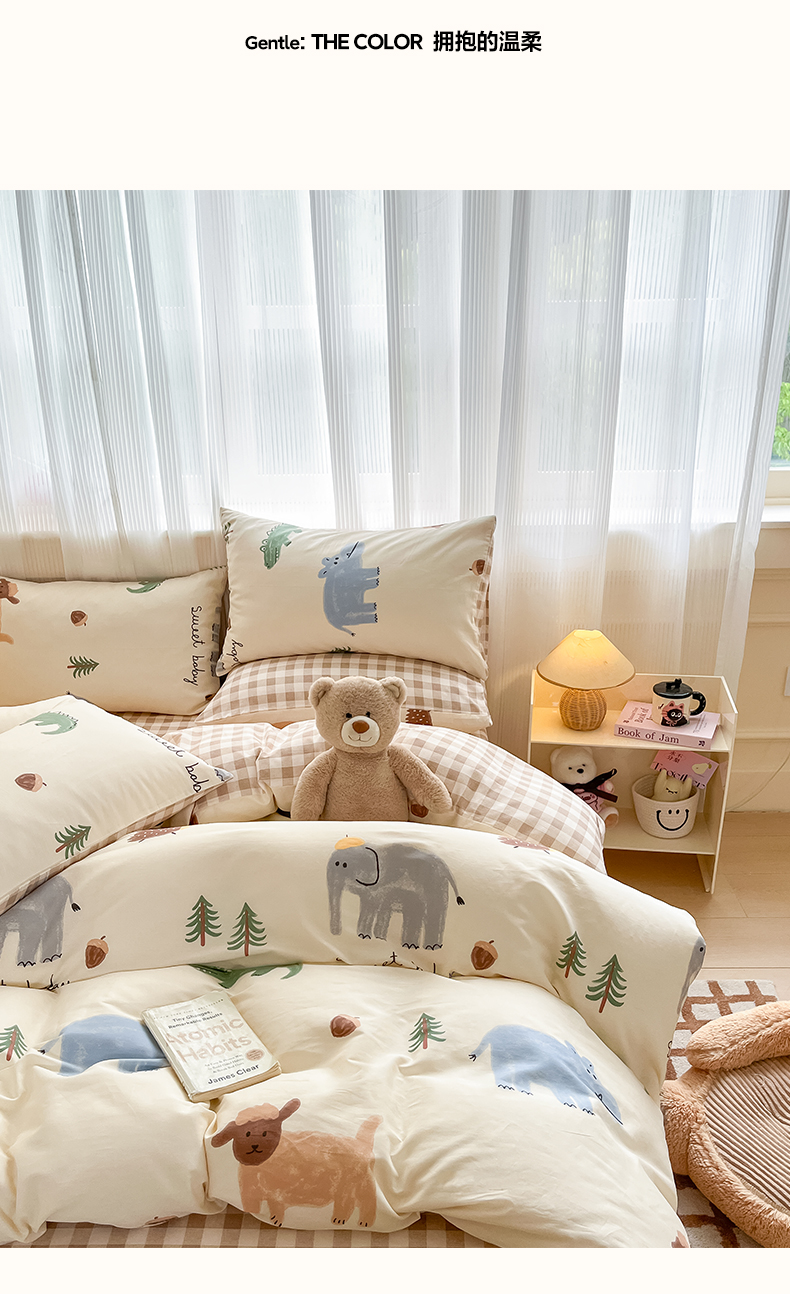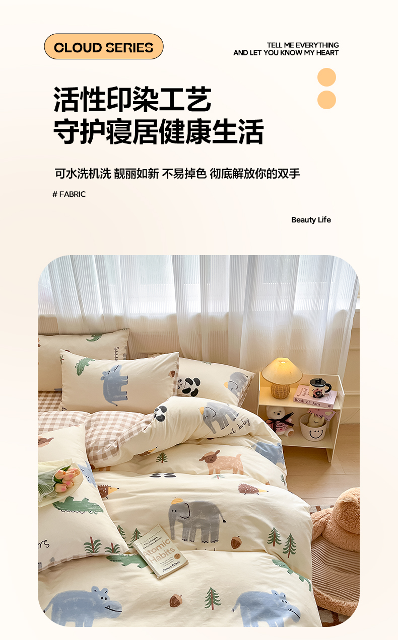 雅居纺家纺 2025新款全棉小清新四件套 动物世界