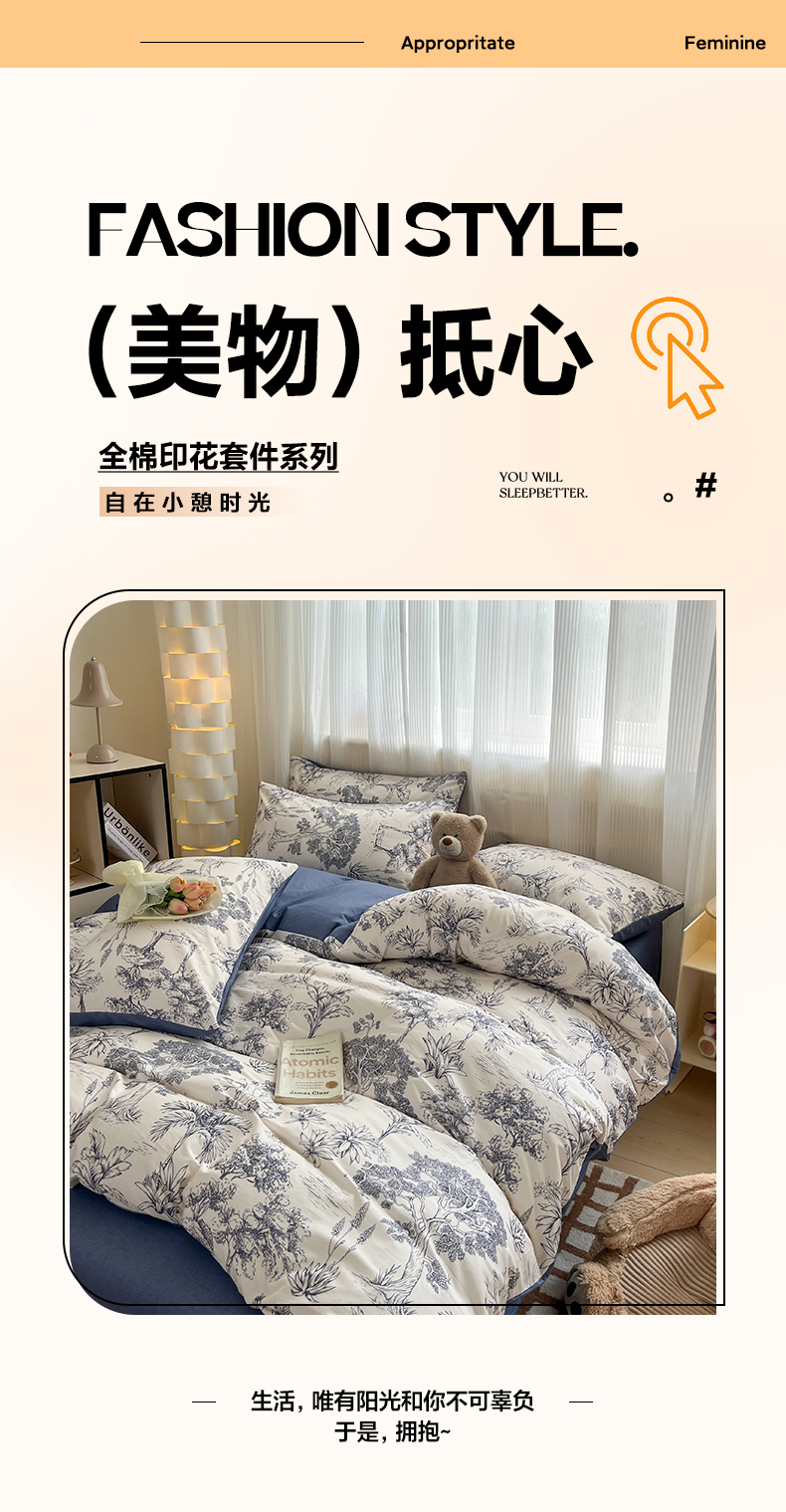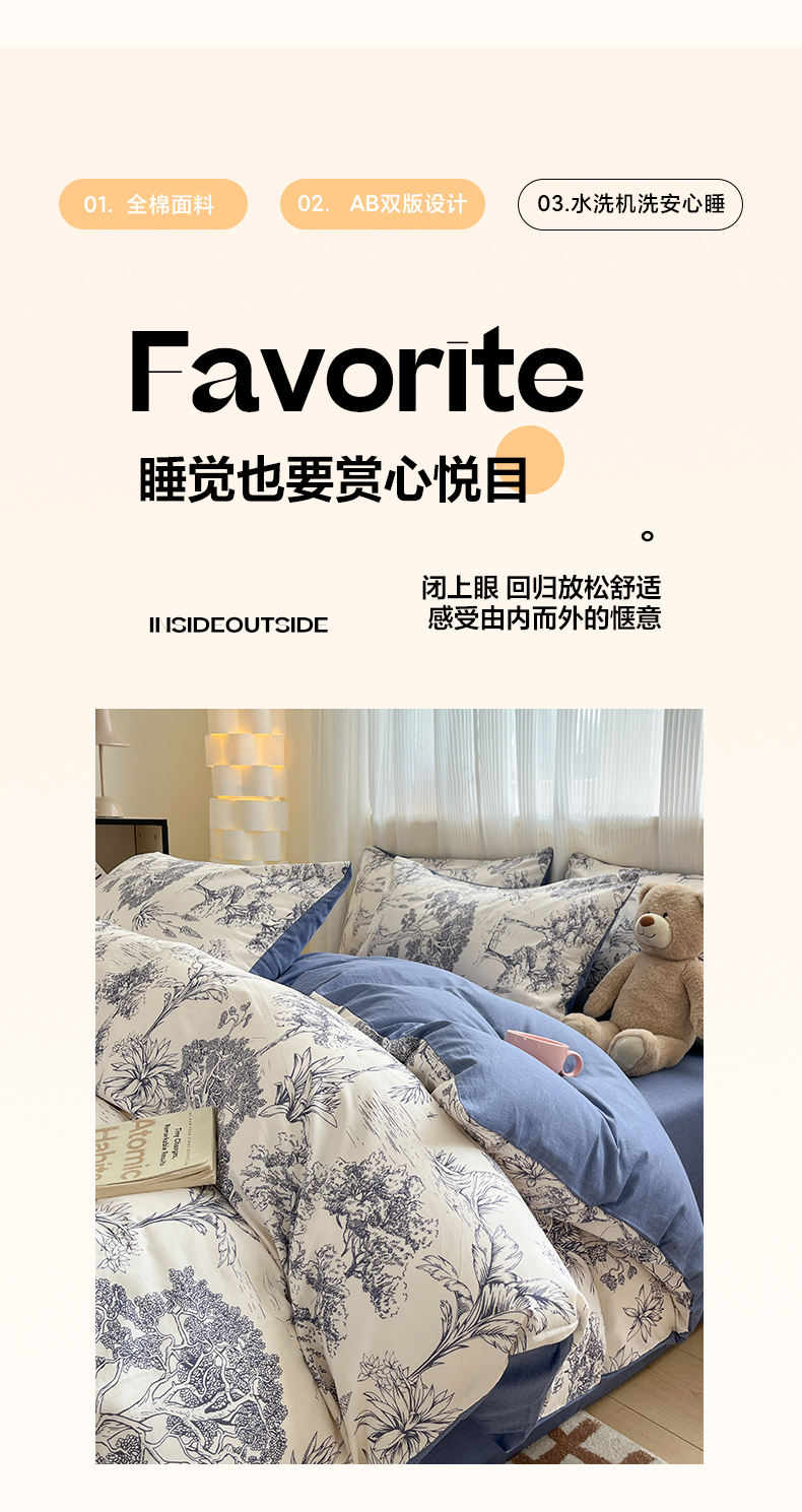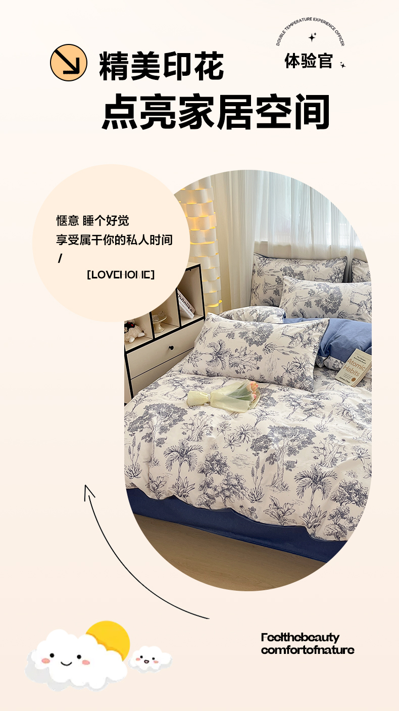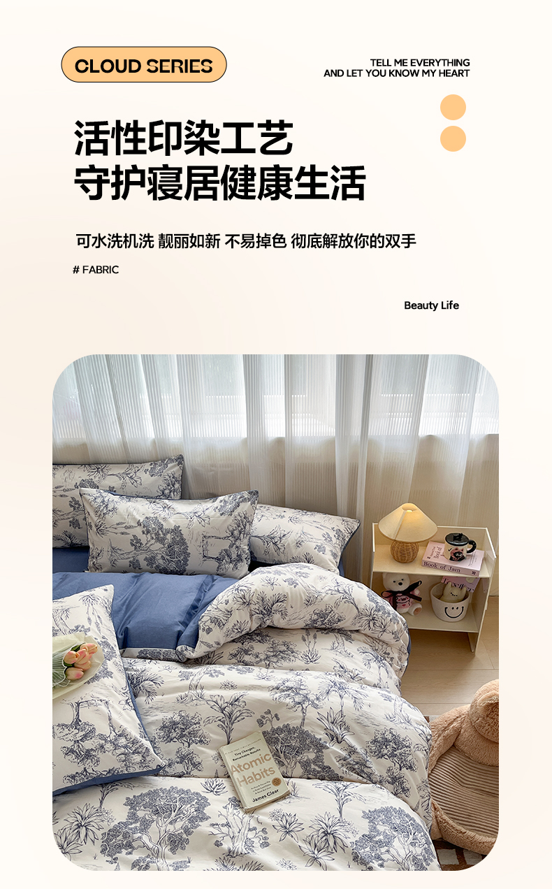 商品名称:雅居纺家纺 2025新款全棉小清新四件套 妙语花香
