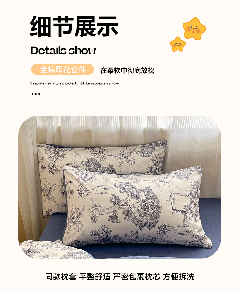 (总)雅居纺家纺 2022新款13070全棉印花四件套,波纹,多彩,简笔画,莓关系,奶油绿豹纹,倾心,数字