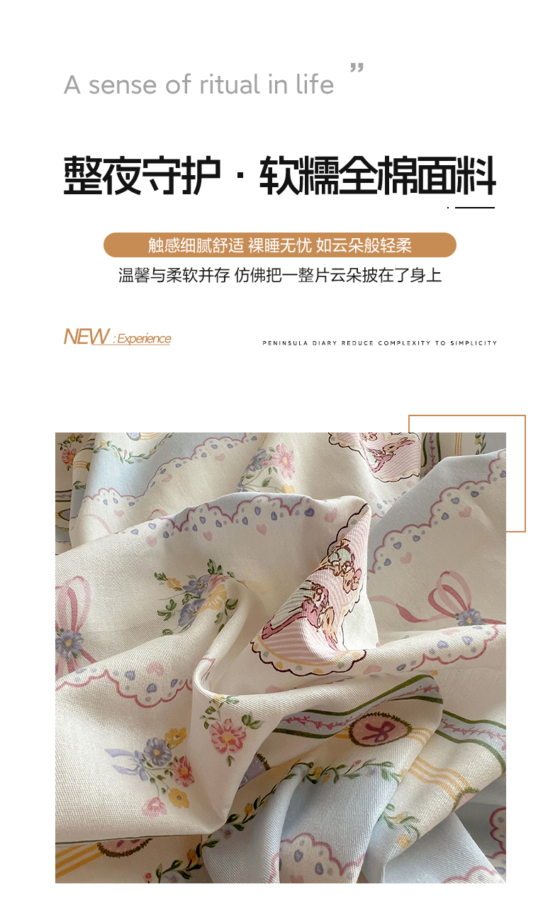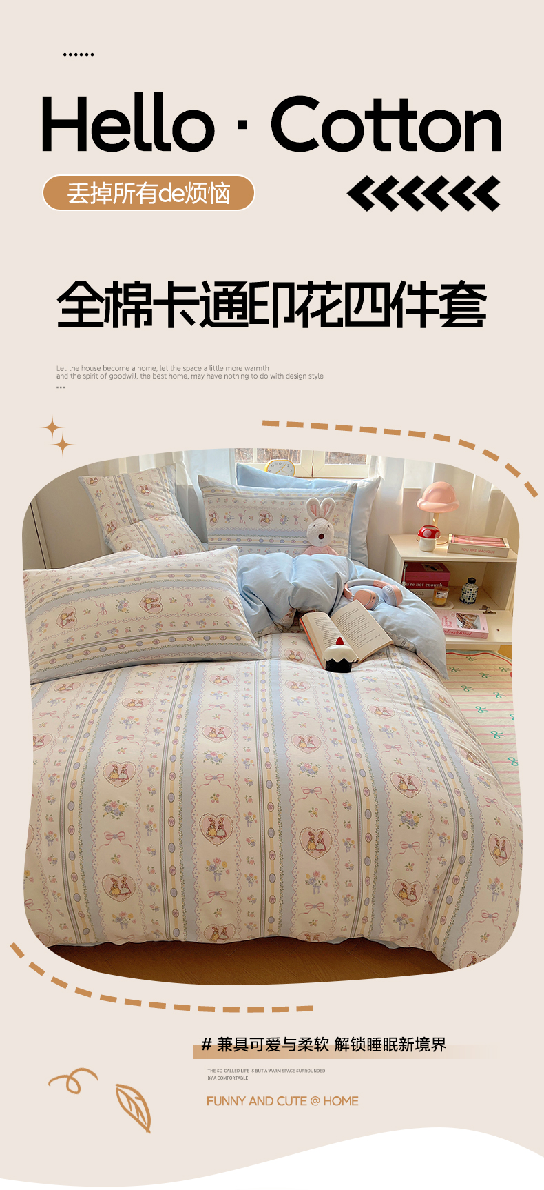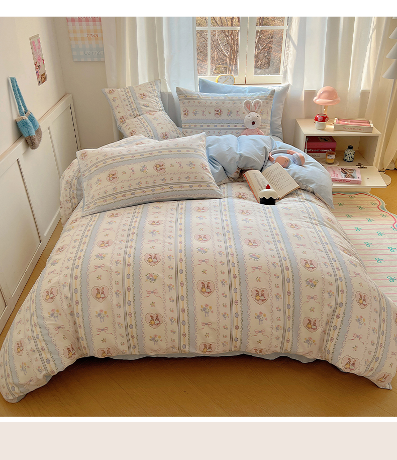 商品名称:雅居纺家纺 2025新款全棉小清新四件套 幸福小兔
